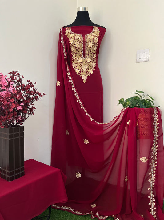 Rust Sanam’ Tilla Kashmiri Silk Suit