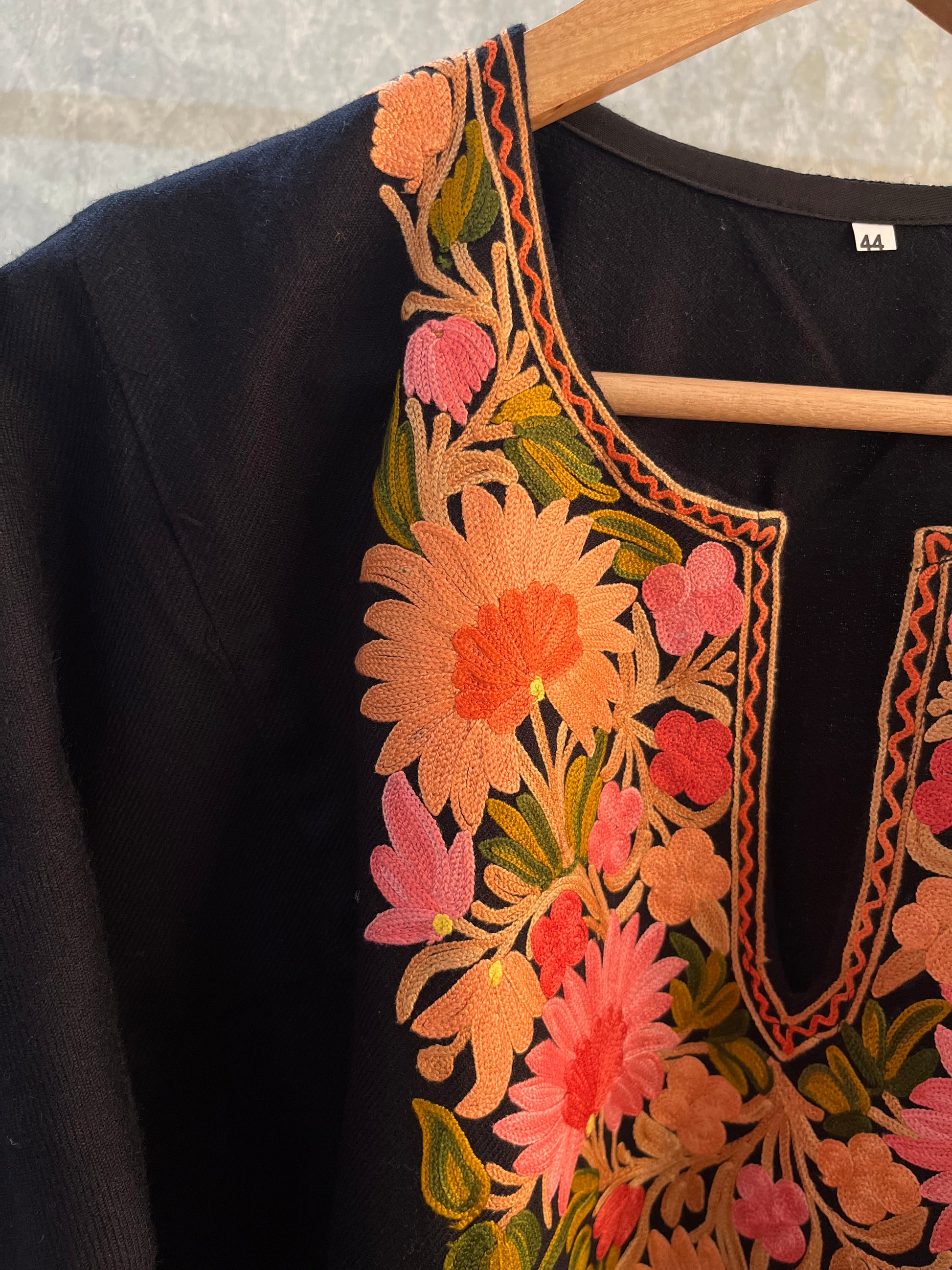 Wool Pheran with Aari embroidery on neck , sleeves and Ghera