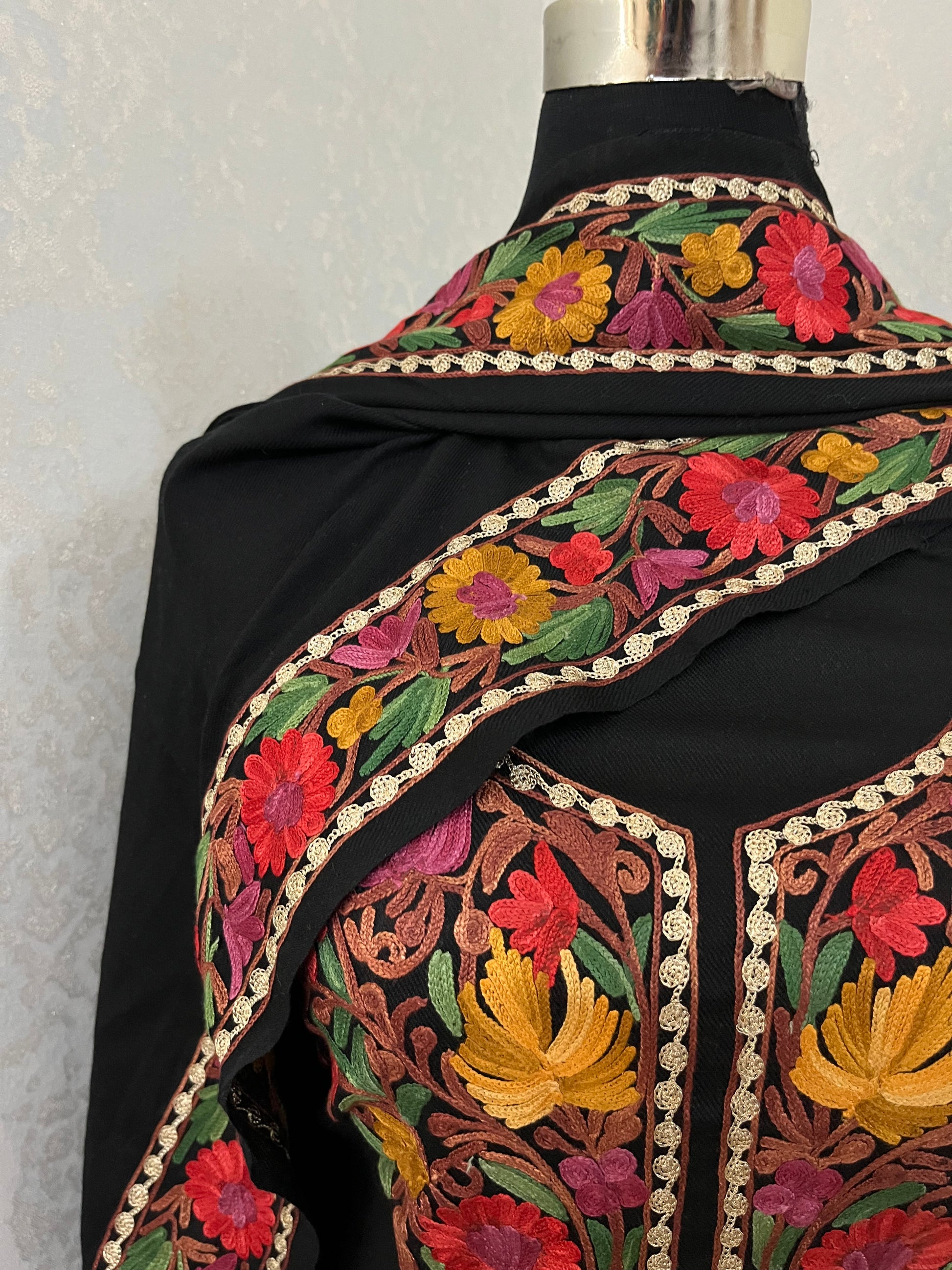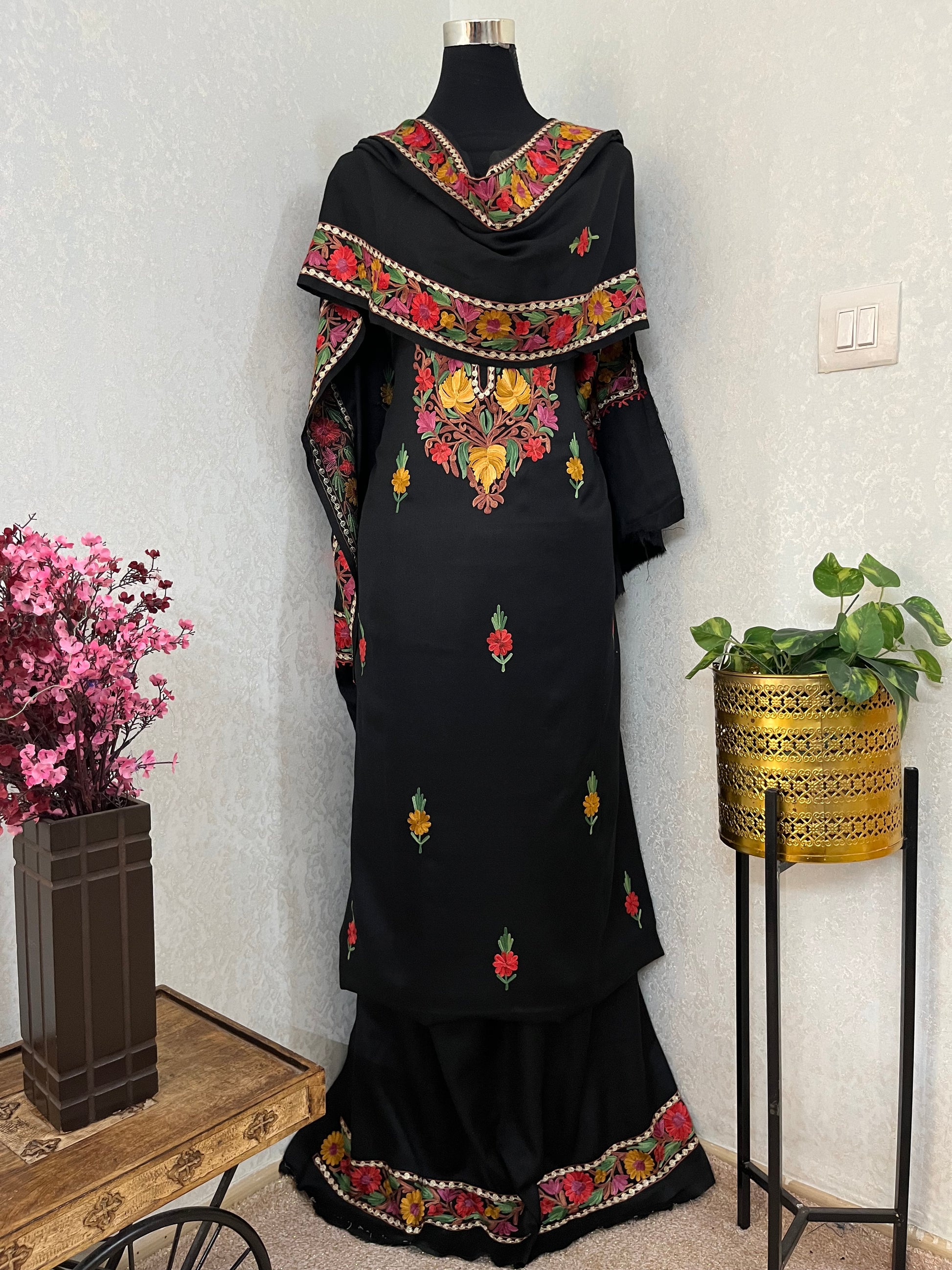 Black Pure Wool Aari Embroidered 3pc Suit Stole