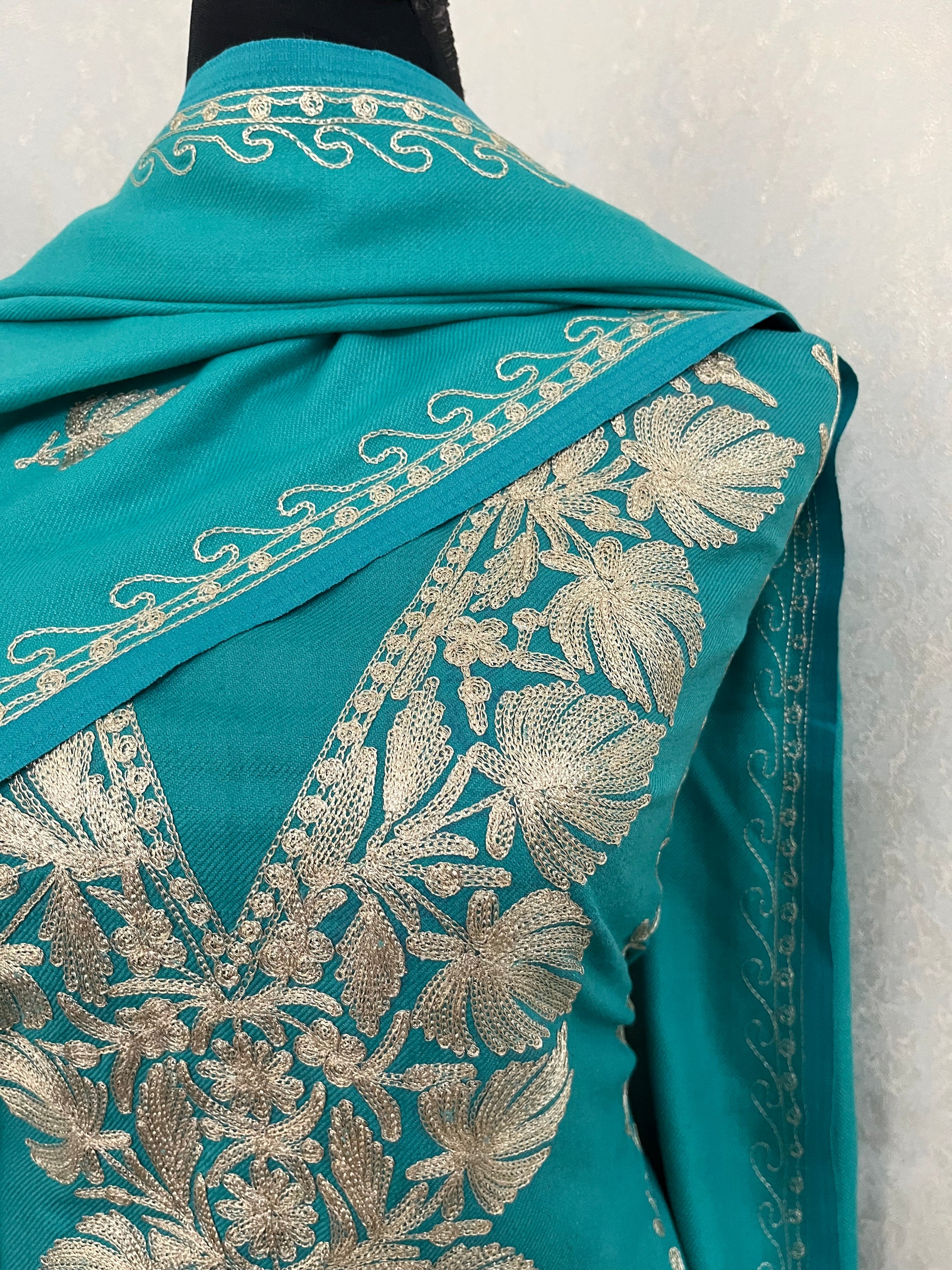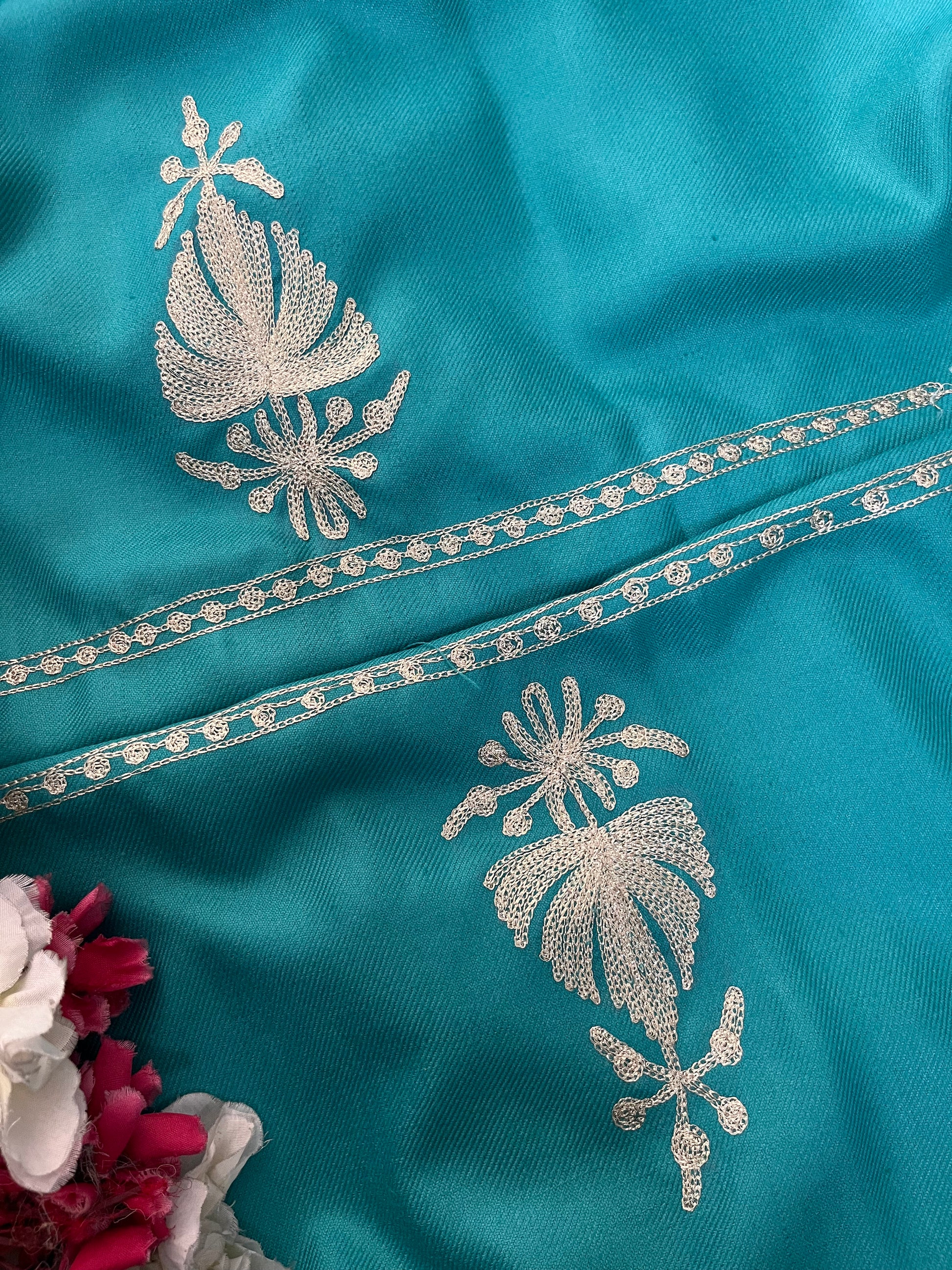 Sky Blue Tilla Embroidered 3pc Suit Stole
