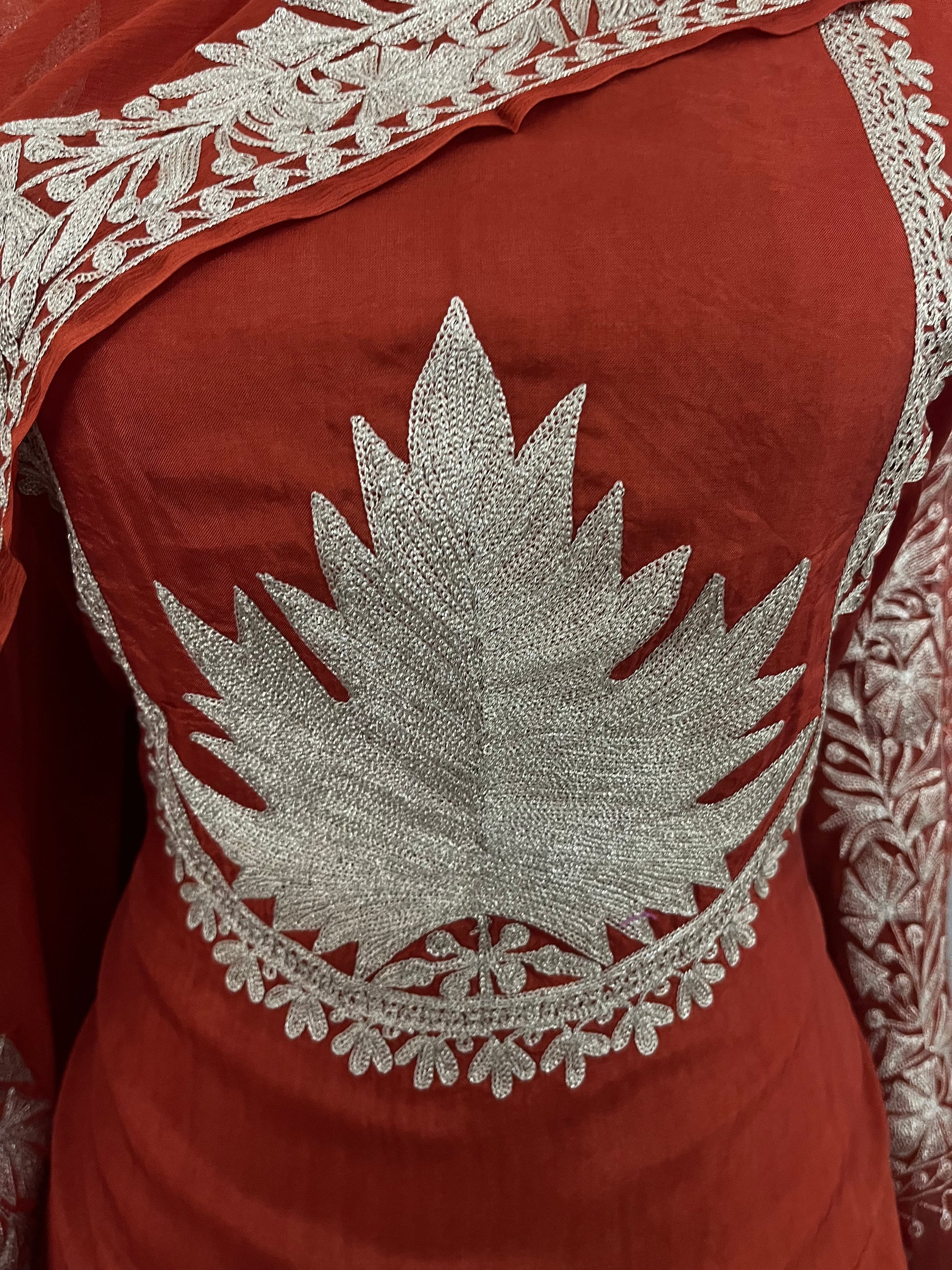 Experience the exquisite artistry of Kashmiri tilla embroidery .Each stitch tells a tale of craftsmanship, tradition, and intricate beauty. Elevate your wardrobe with this timeless treasure.
