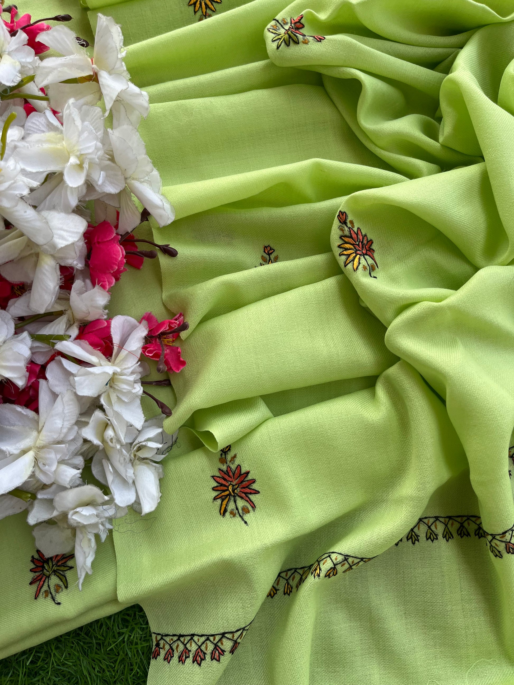Pista Green Fine Wool Sozni Embroidered 3pc Suit Stole