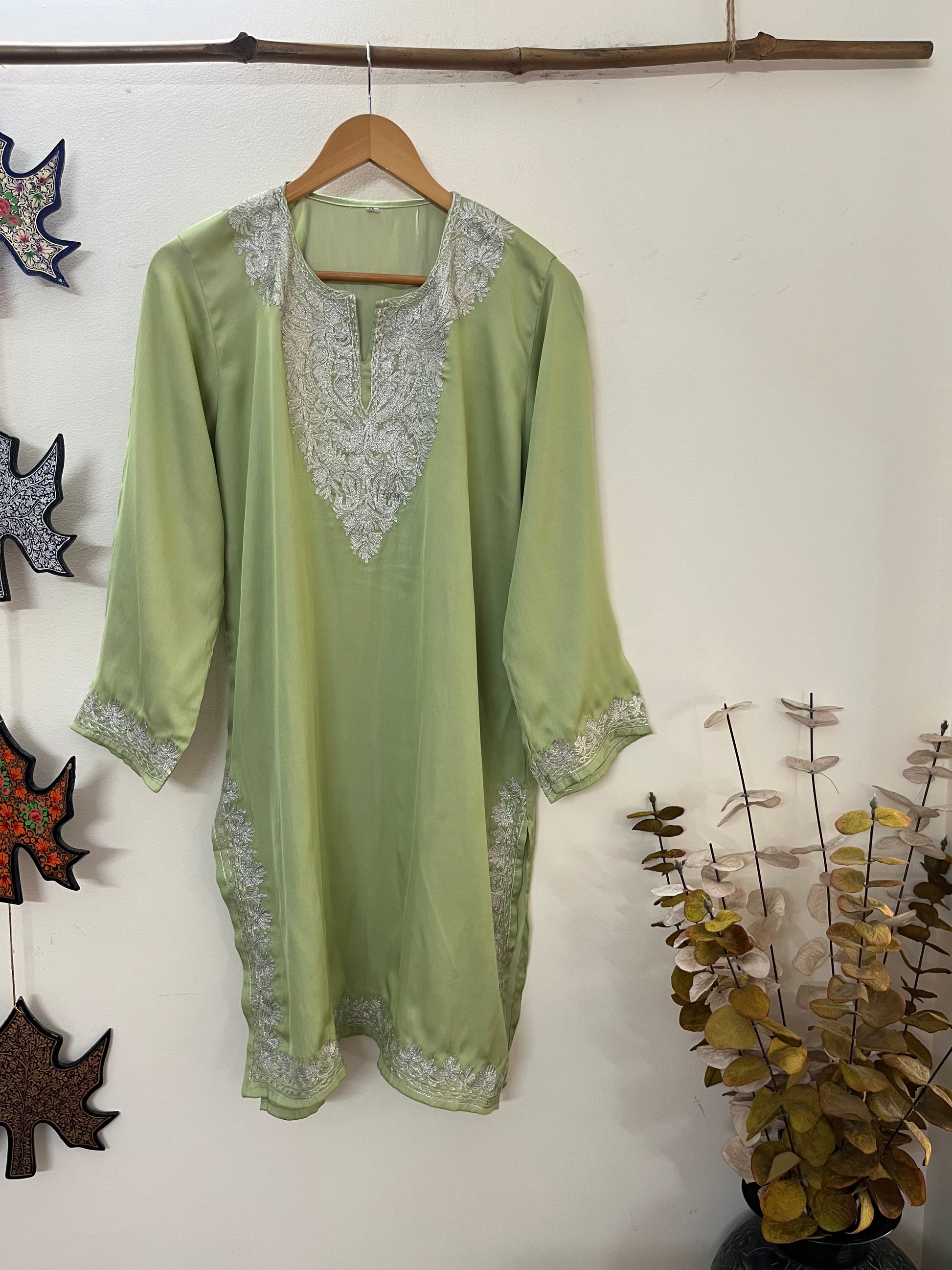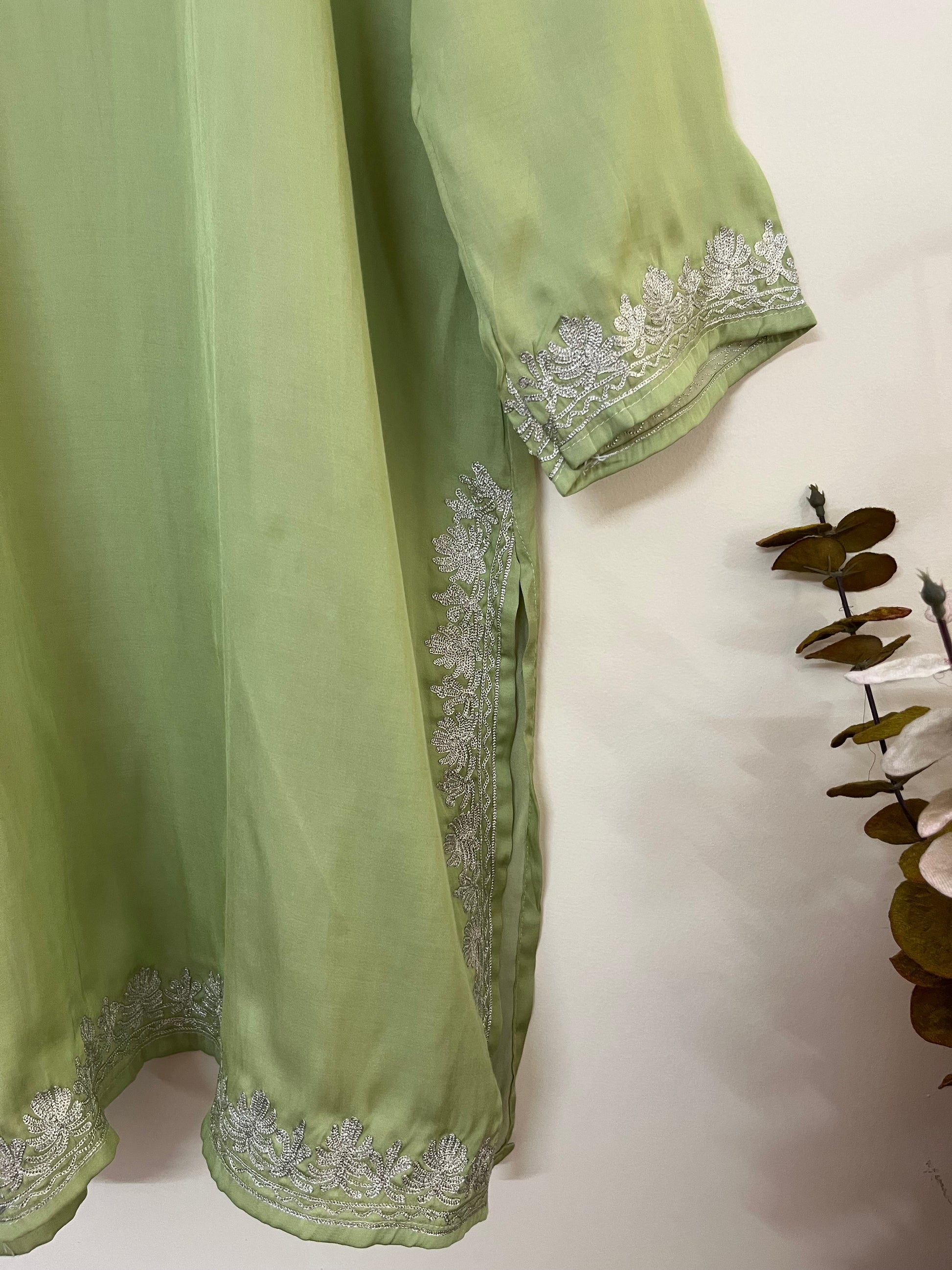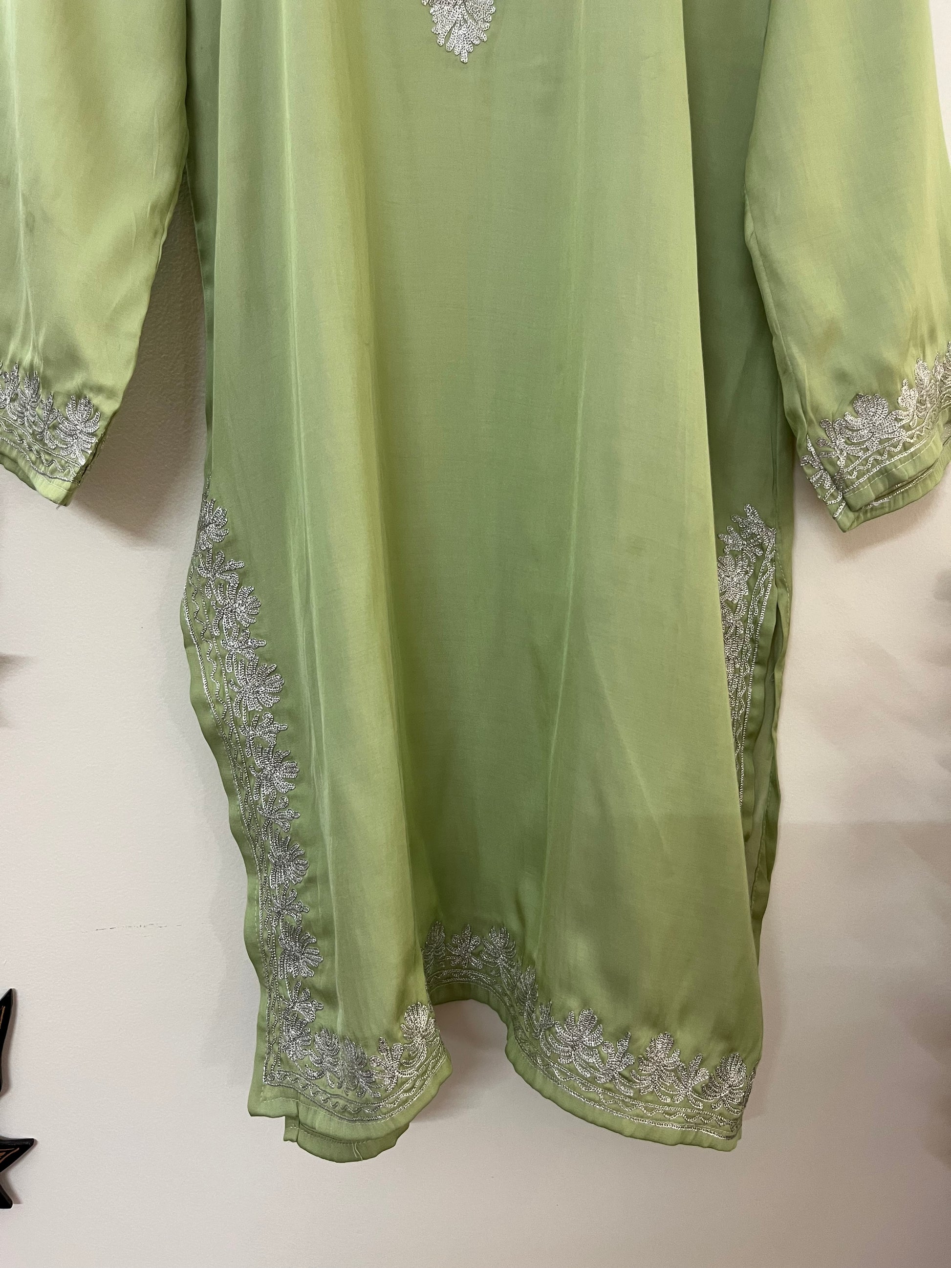 Soft Green Cotton Tilla Embroidered Stitched Kurta