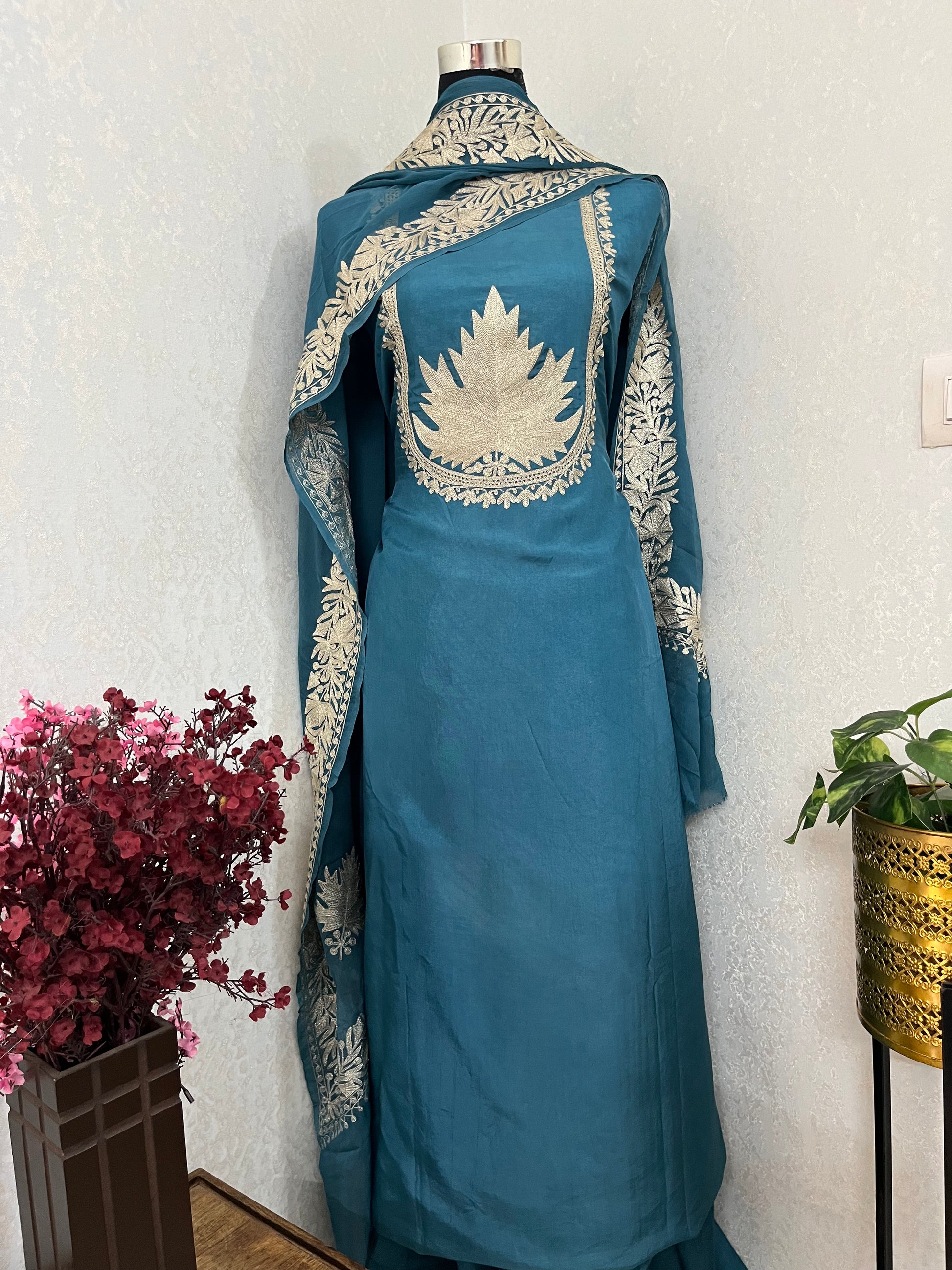 Teal Blue Sanam’ Tilla Kashmiri Silk Suit