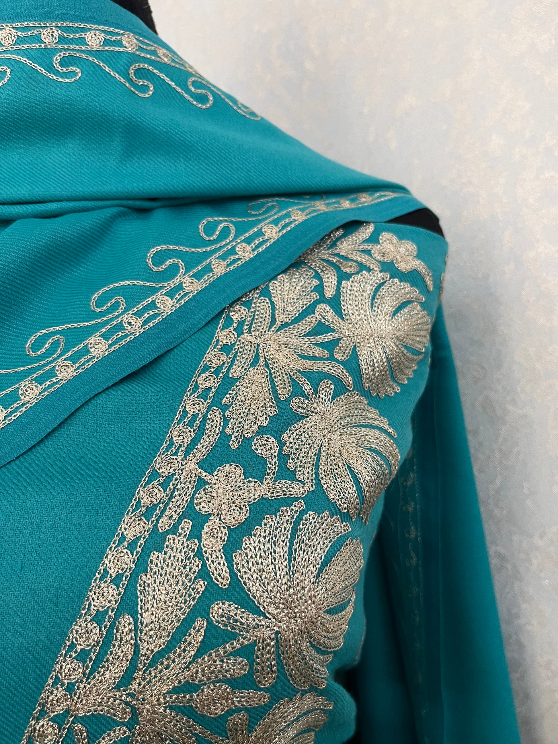 Sky Blue Tilla Embroidered 3pc Suit Stole