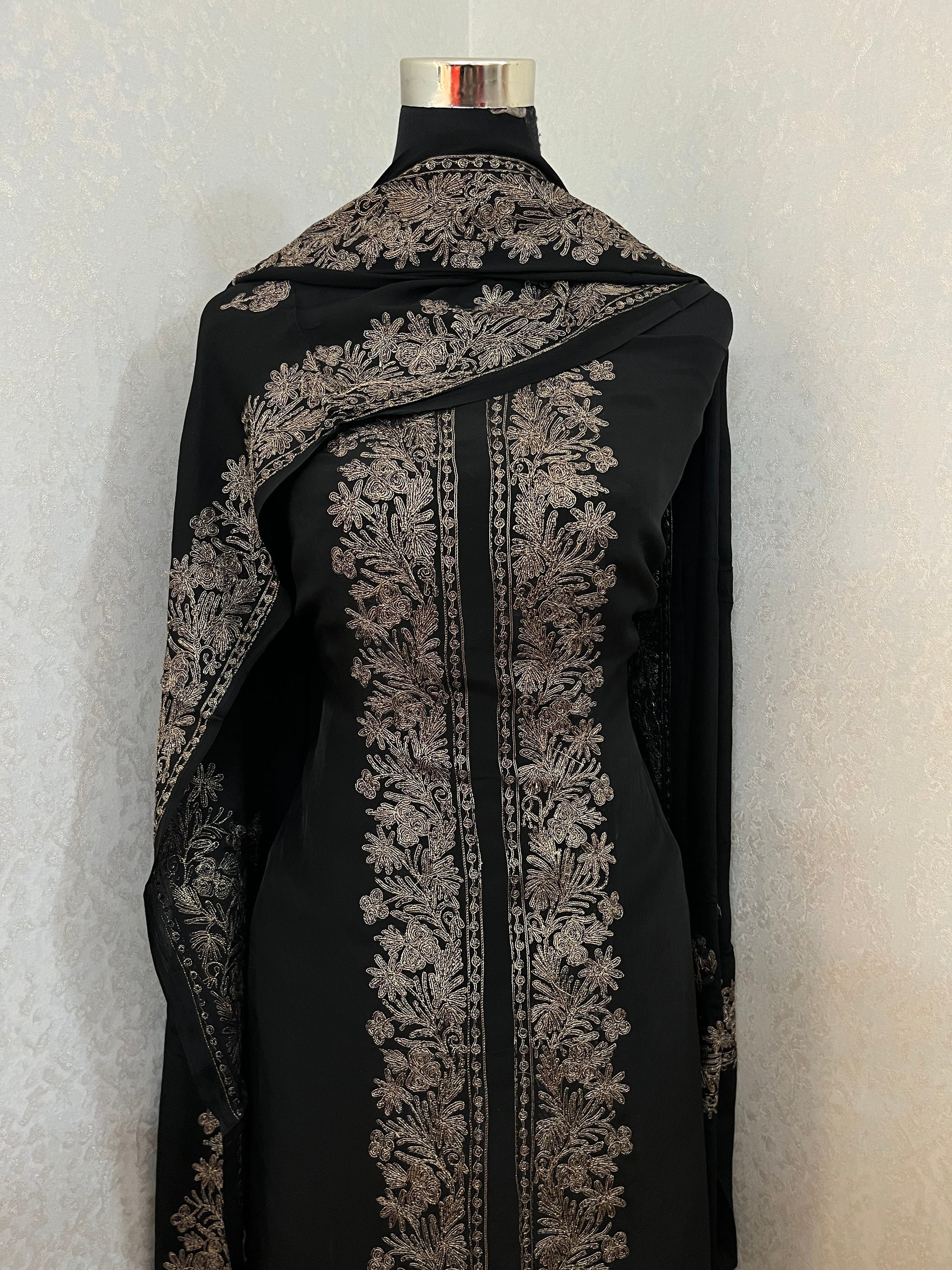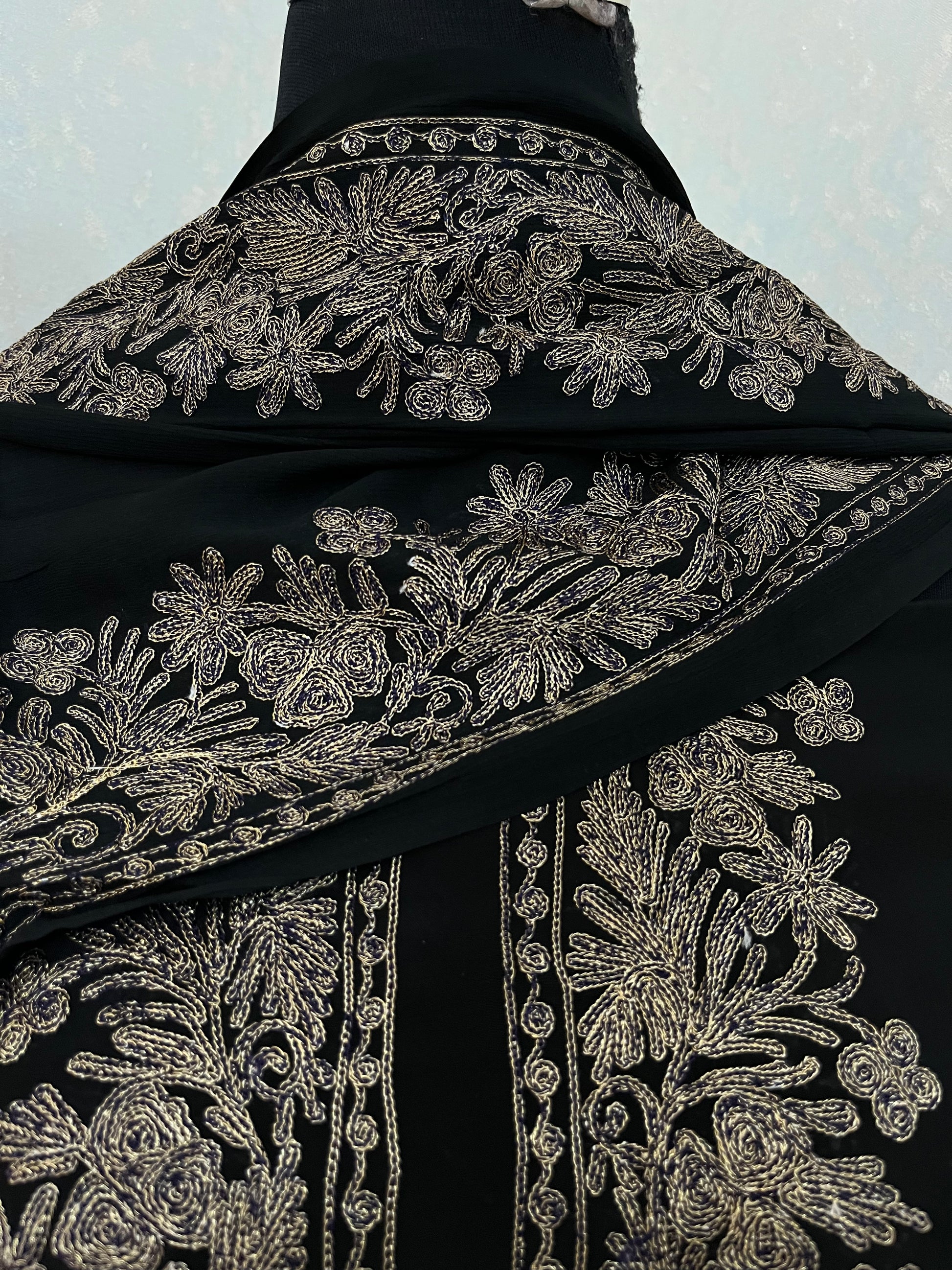 Black Kalaa’ Crape Jacket Style Kashmiri Suit