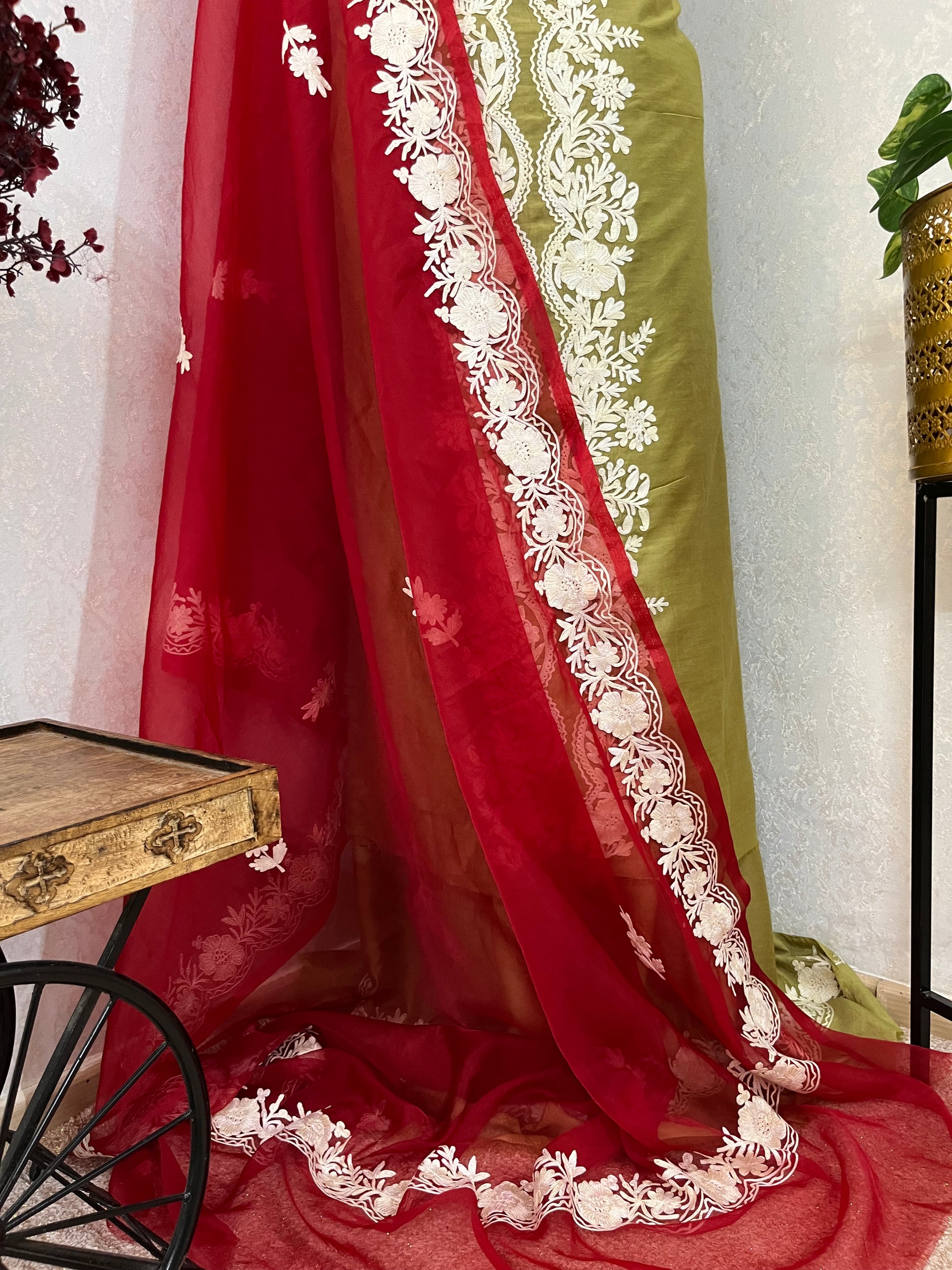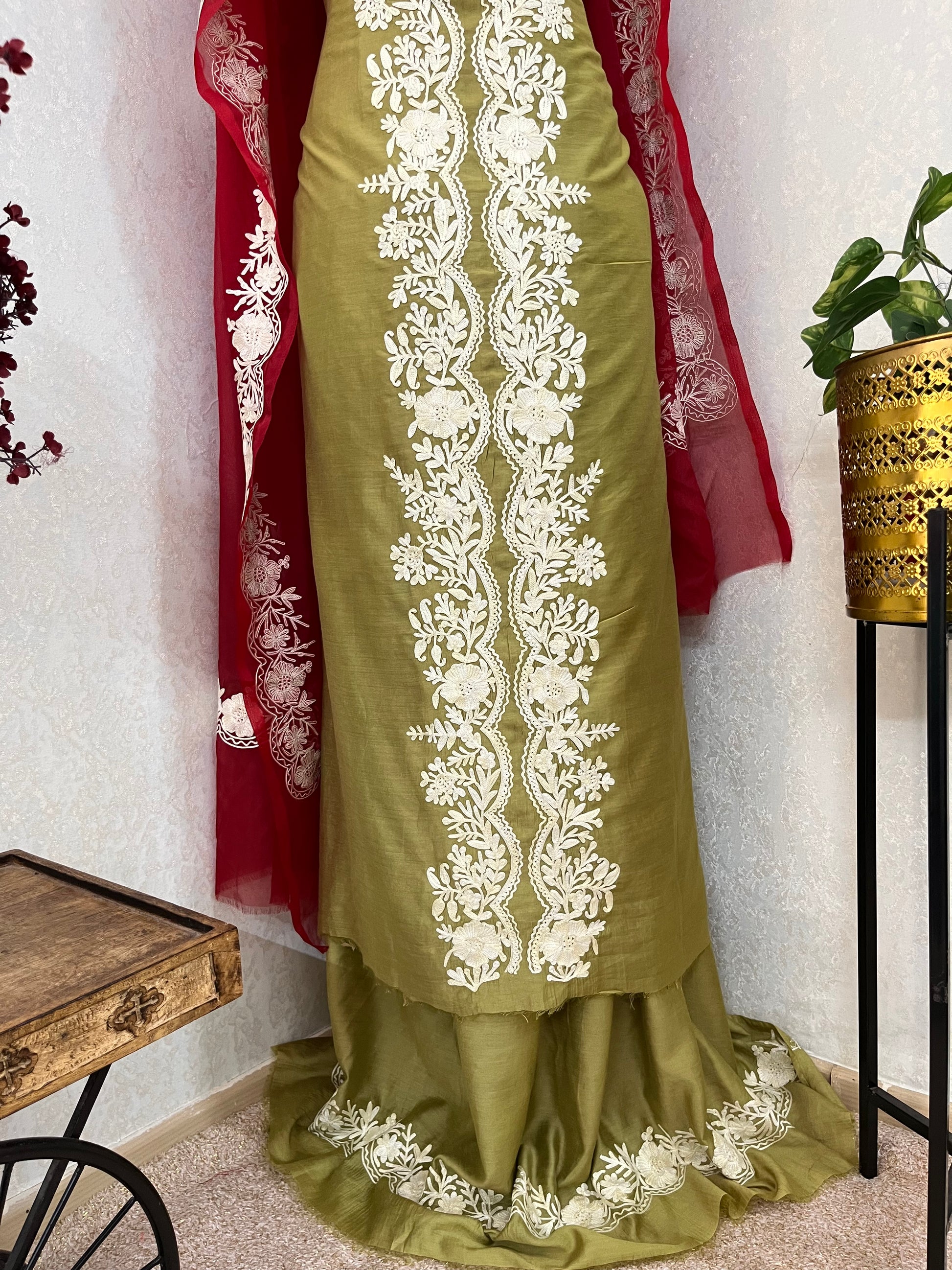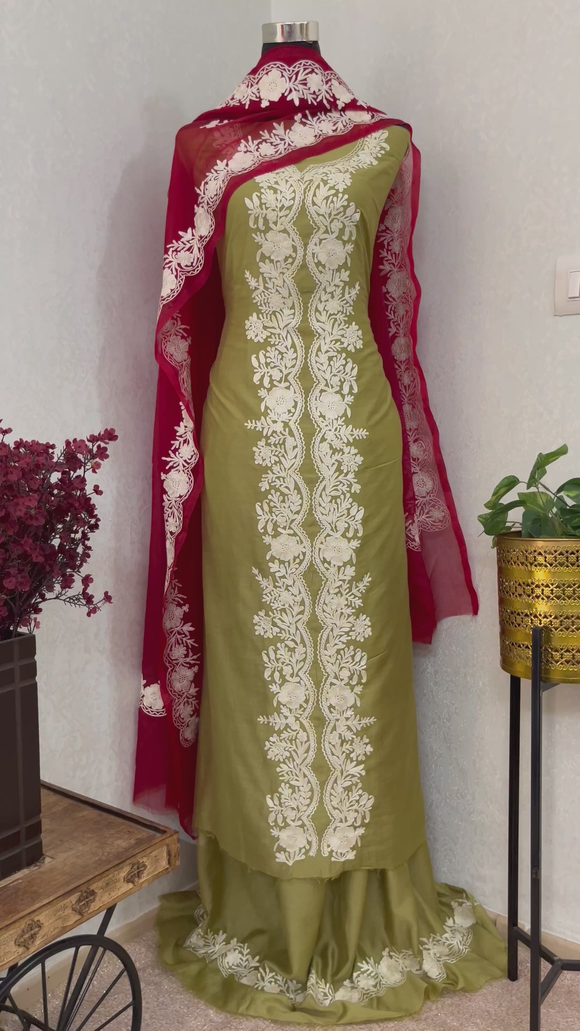 Introducing Chanderi Silk fabric with a contrast tissue dupatta – a first in our Festive Collection. This lightweight and flowy ensemble is Festive-friendly, offering comfort and elegance for festive nights. Designed to let you twirl with ease while keeping the richness of traditional craft alive.