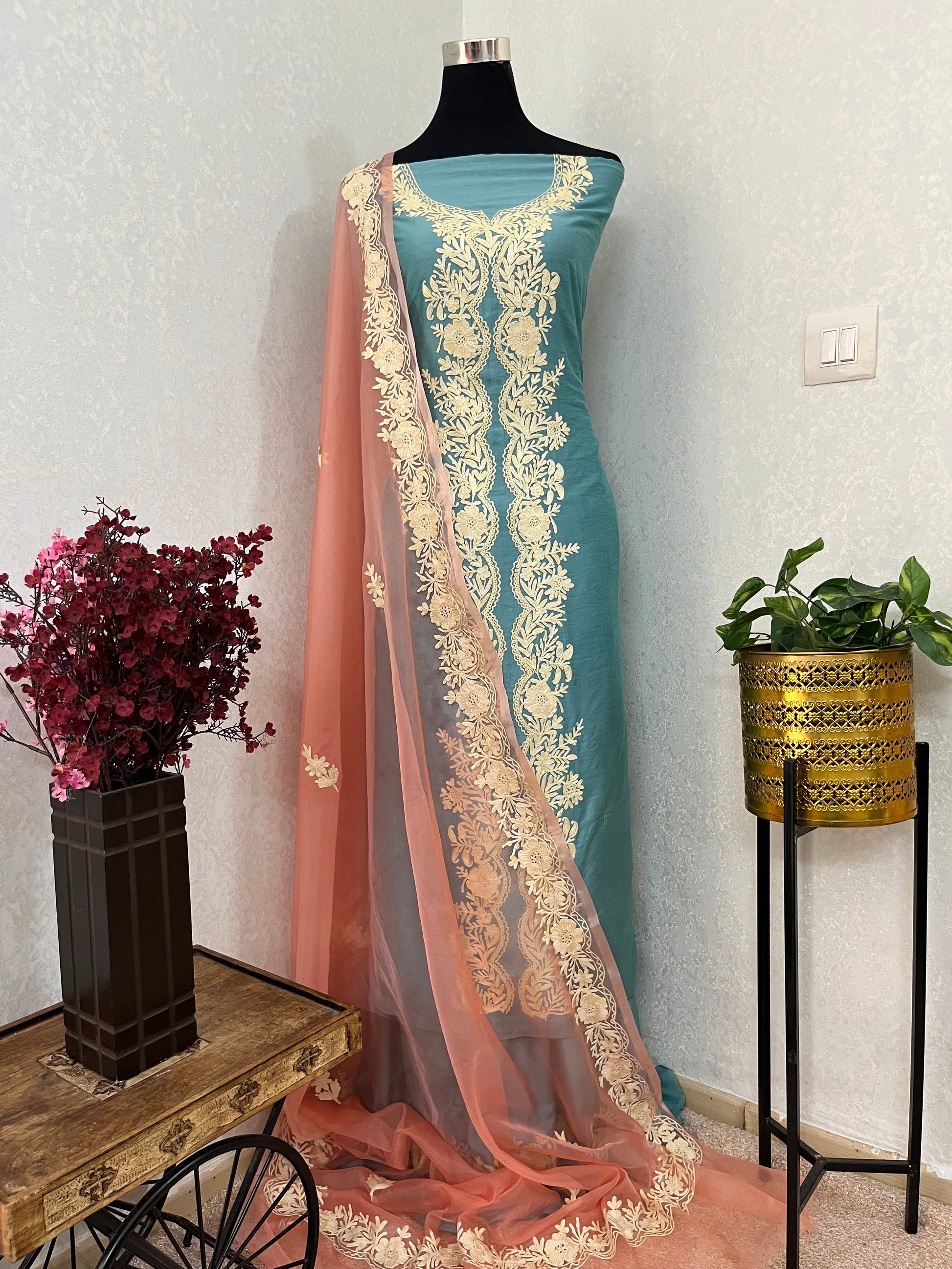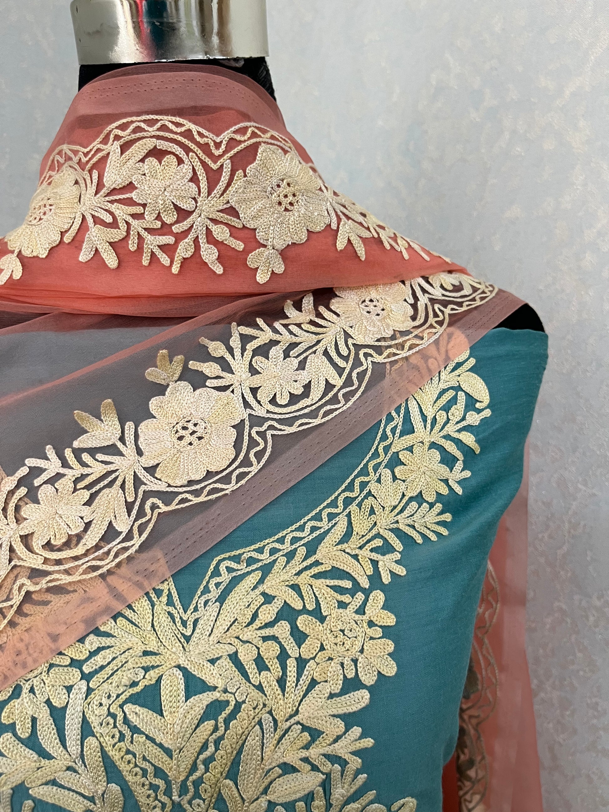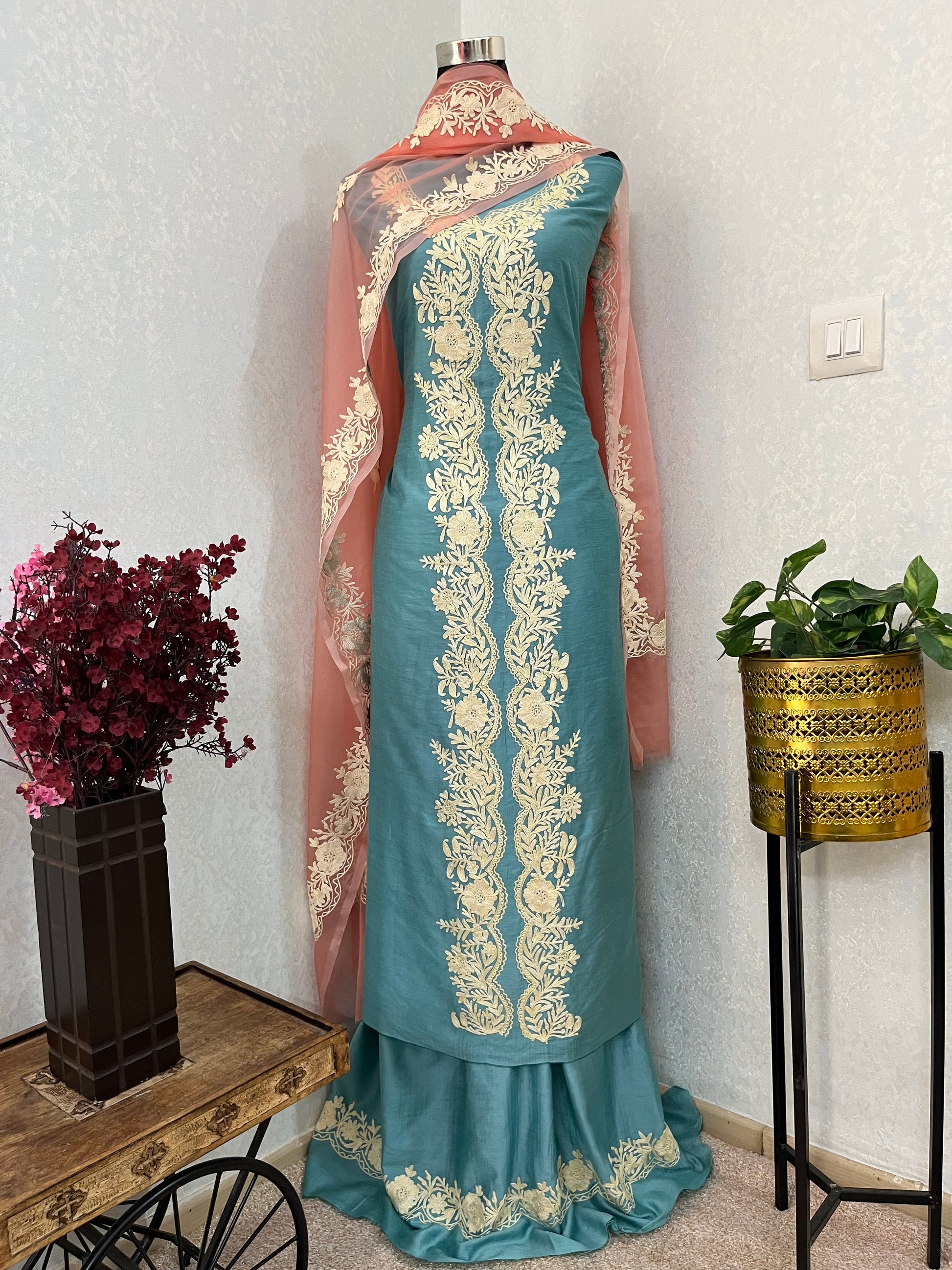Introducing Chanderi Silk fabric with a contrast tissue dupatta – a first in our Festive Collection. This lightweight and flowy ensemble is Festive-friendly, offering comfort and elegance for festive nights. Designed to let you twirl with ease while keeping the richness of traditional craft alive.