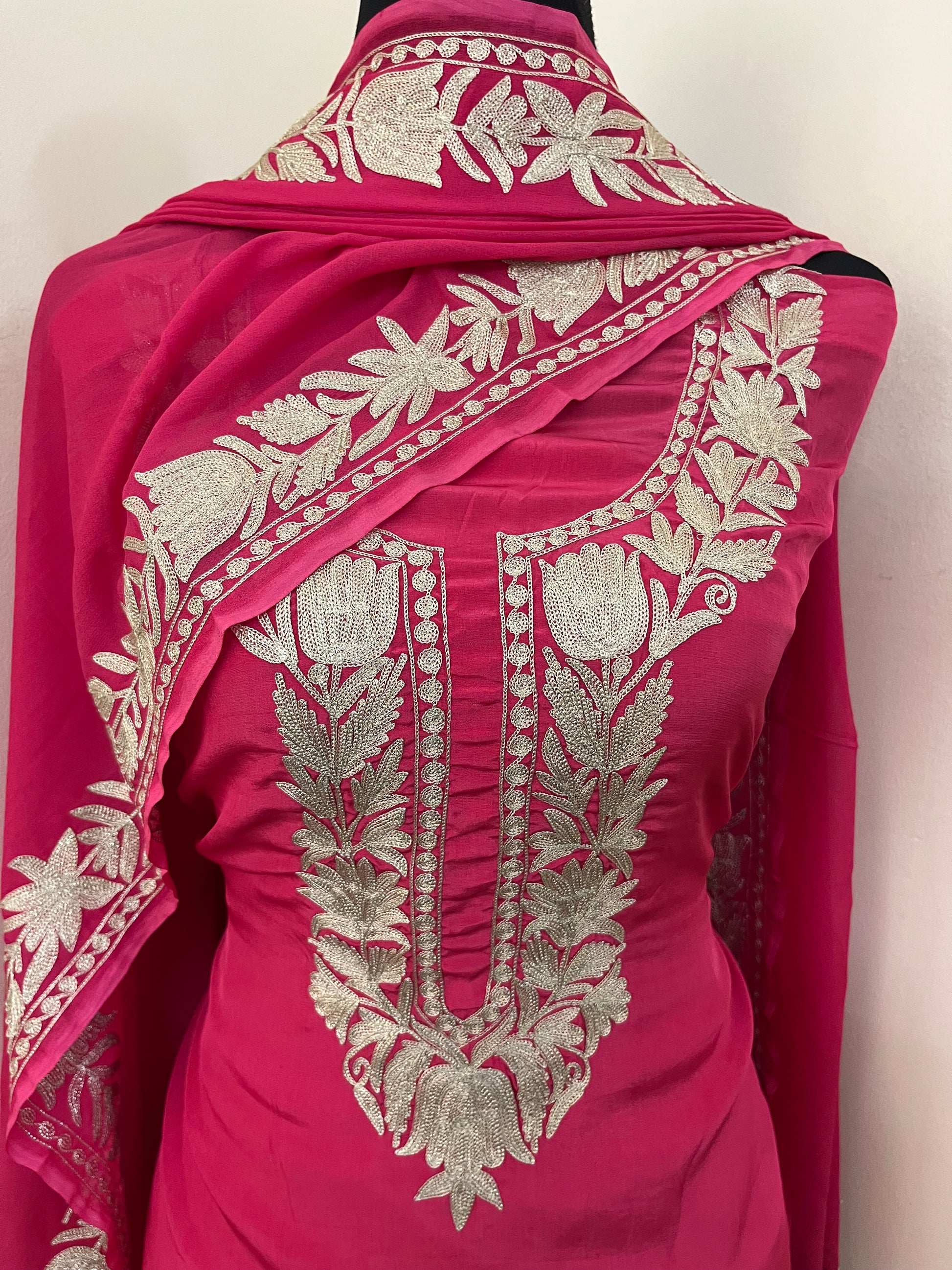 Kalaa’ Fuchsia Pink Crape Kashmiri Suit