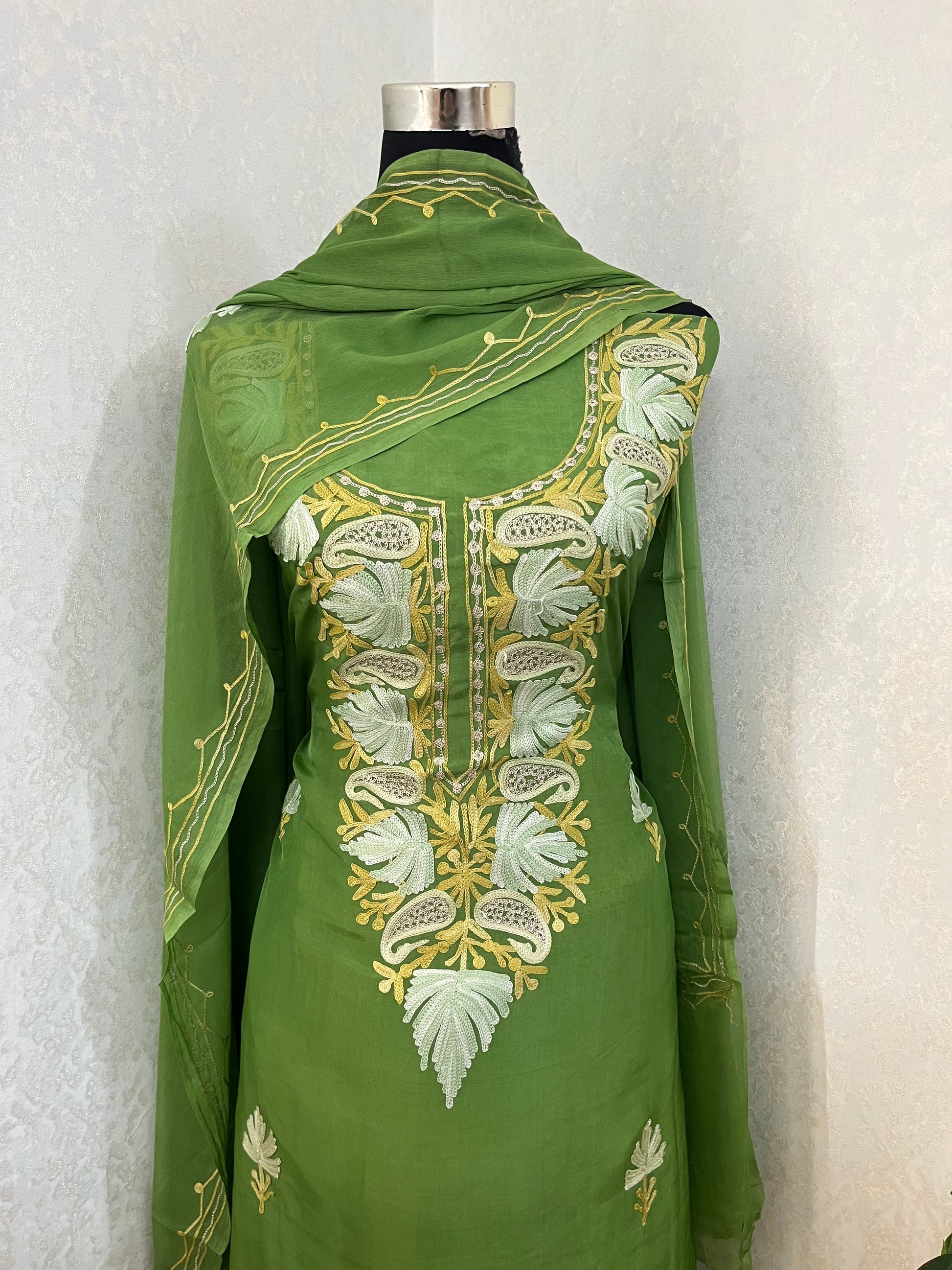 Lawn Green Opada Silk Kashmiri Suits