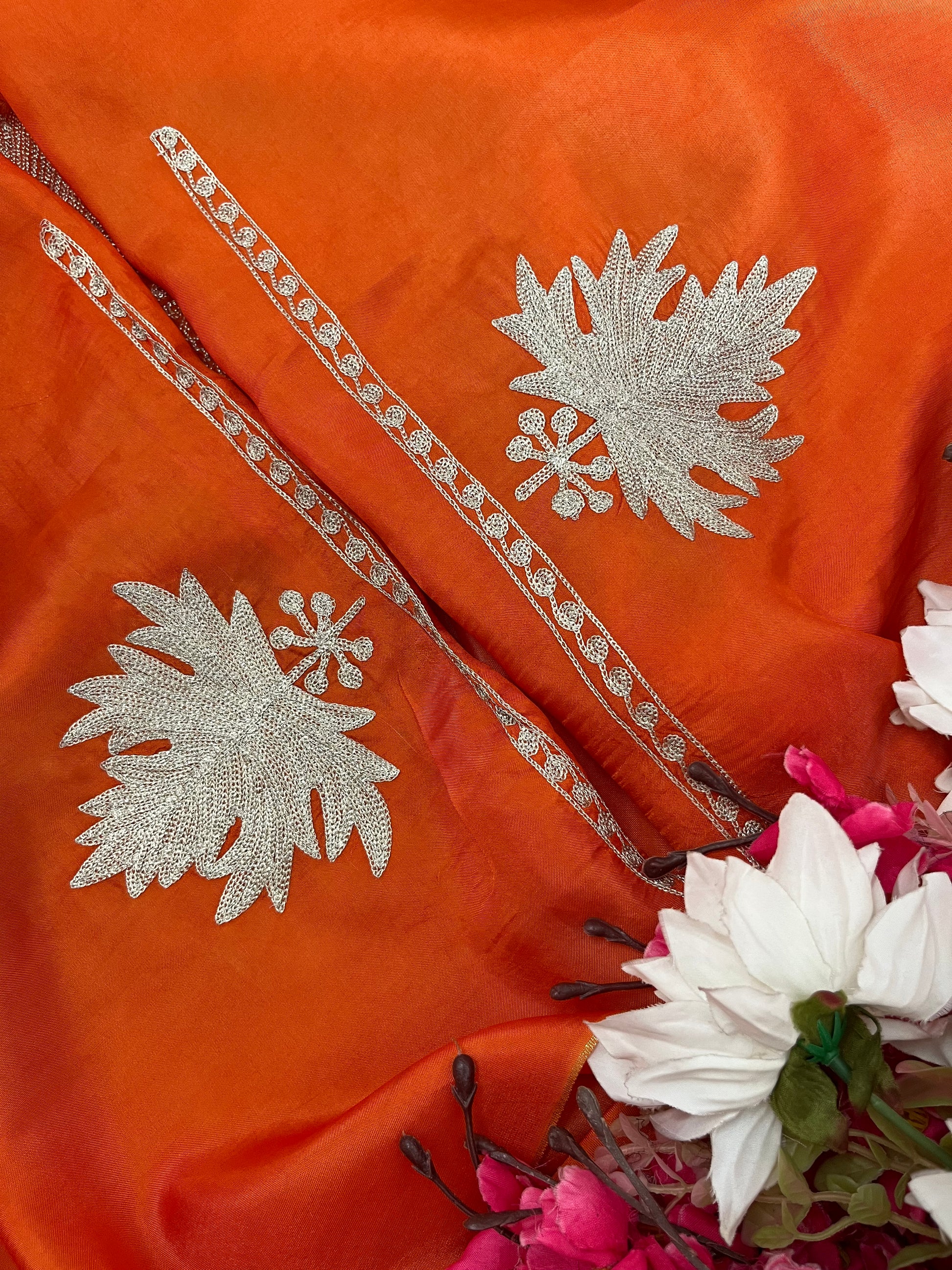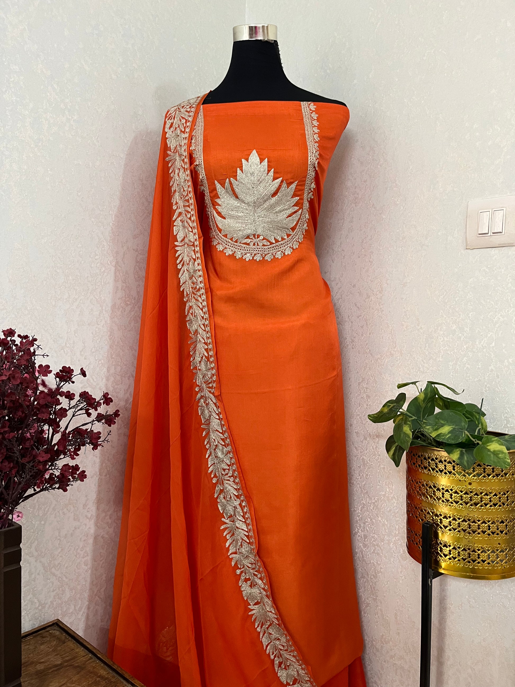 Orange Sanam’ Tilla Kashmiri Silk Suit