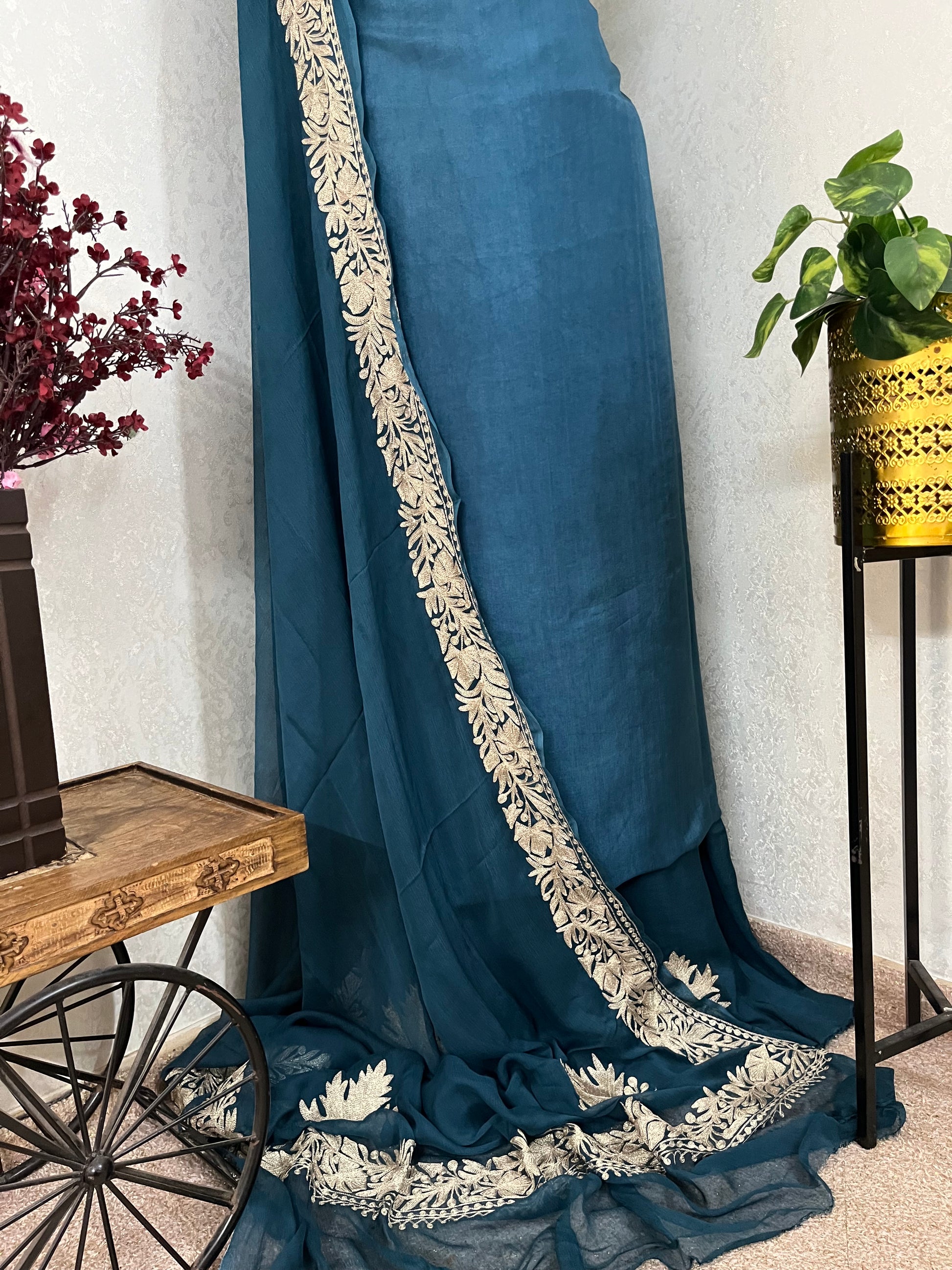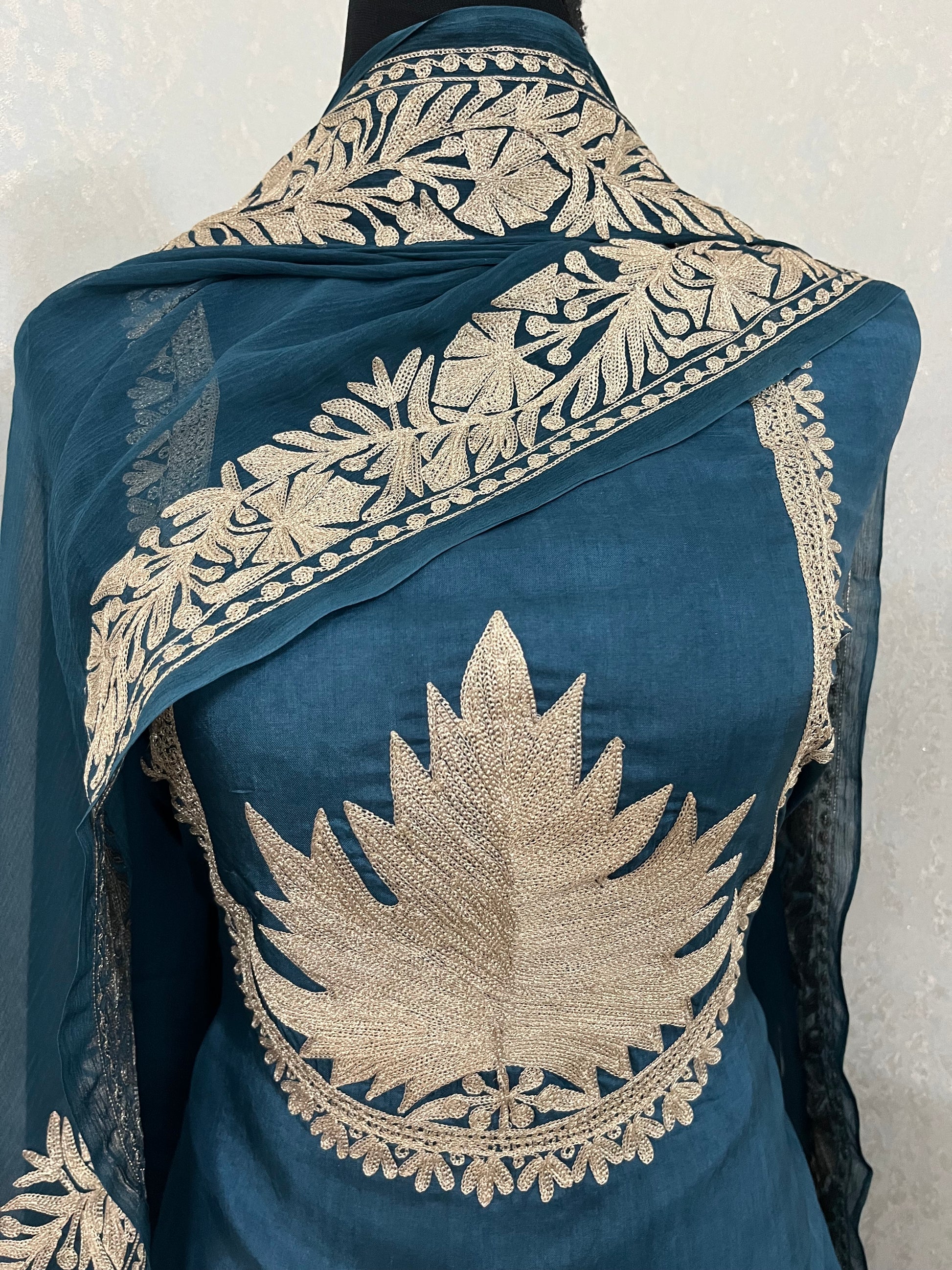 Teal Blue Sanam’ Tilla Kashmiri Silk Suit