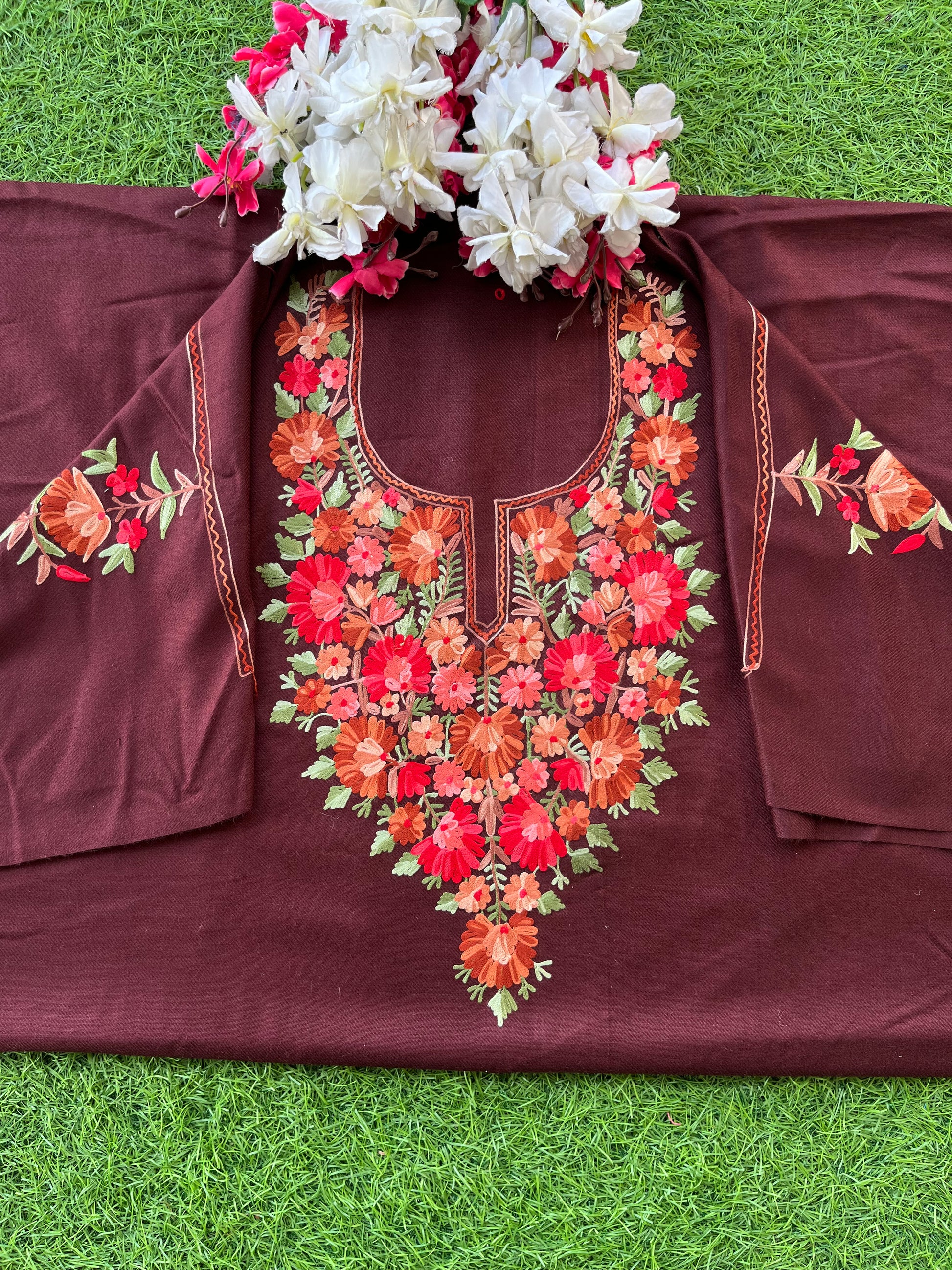 Brown Woollen Aari Embroidered 2pc suit 5mtr