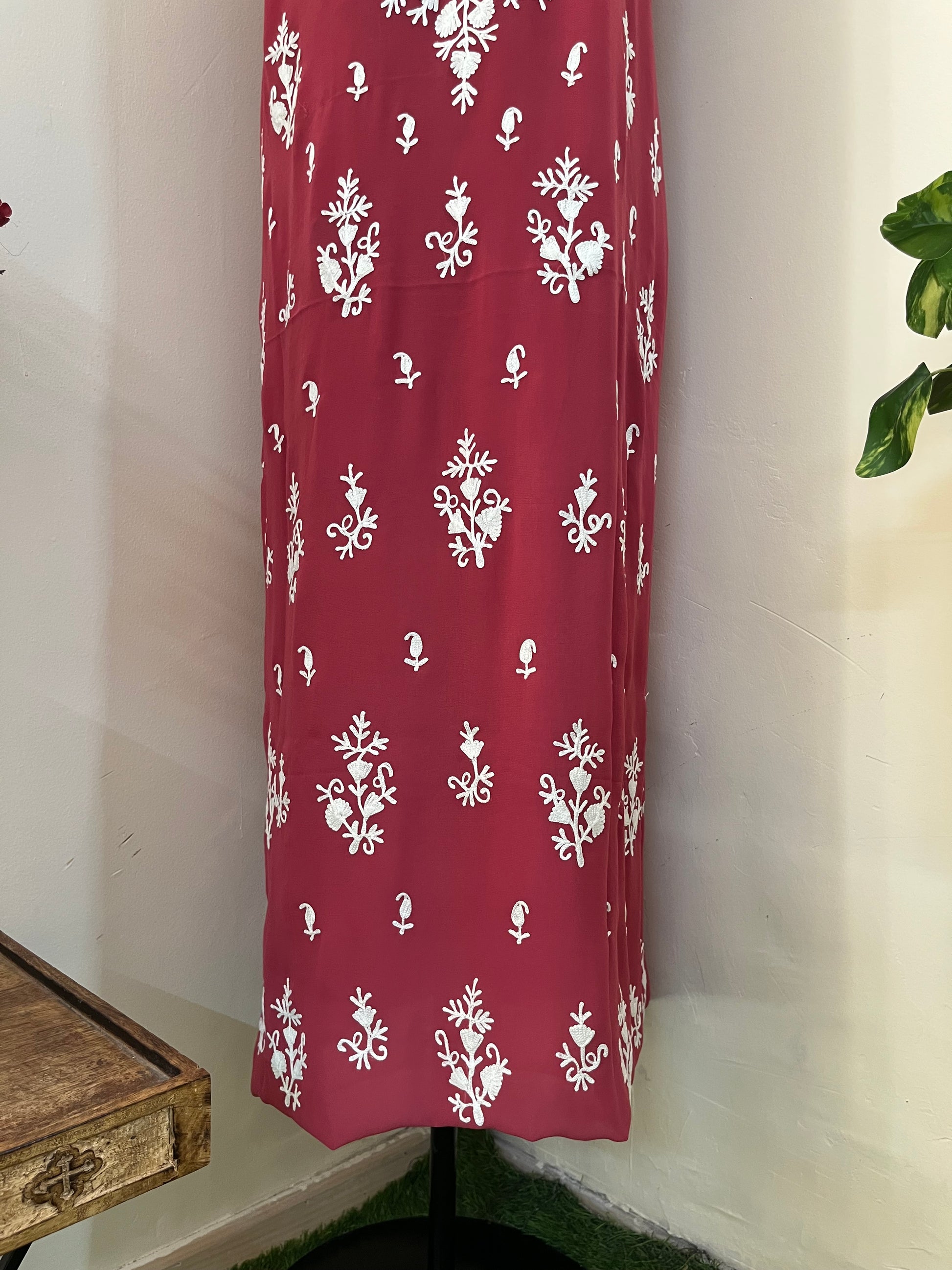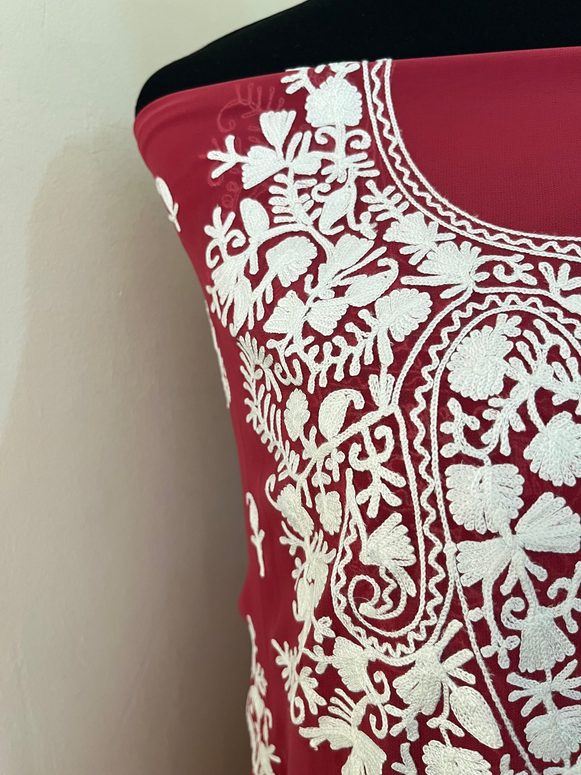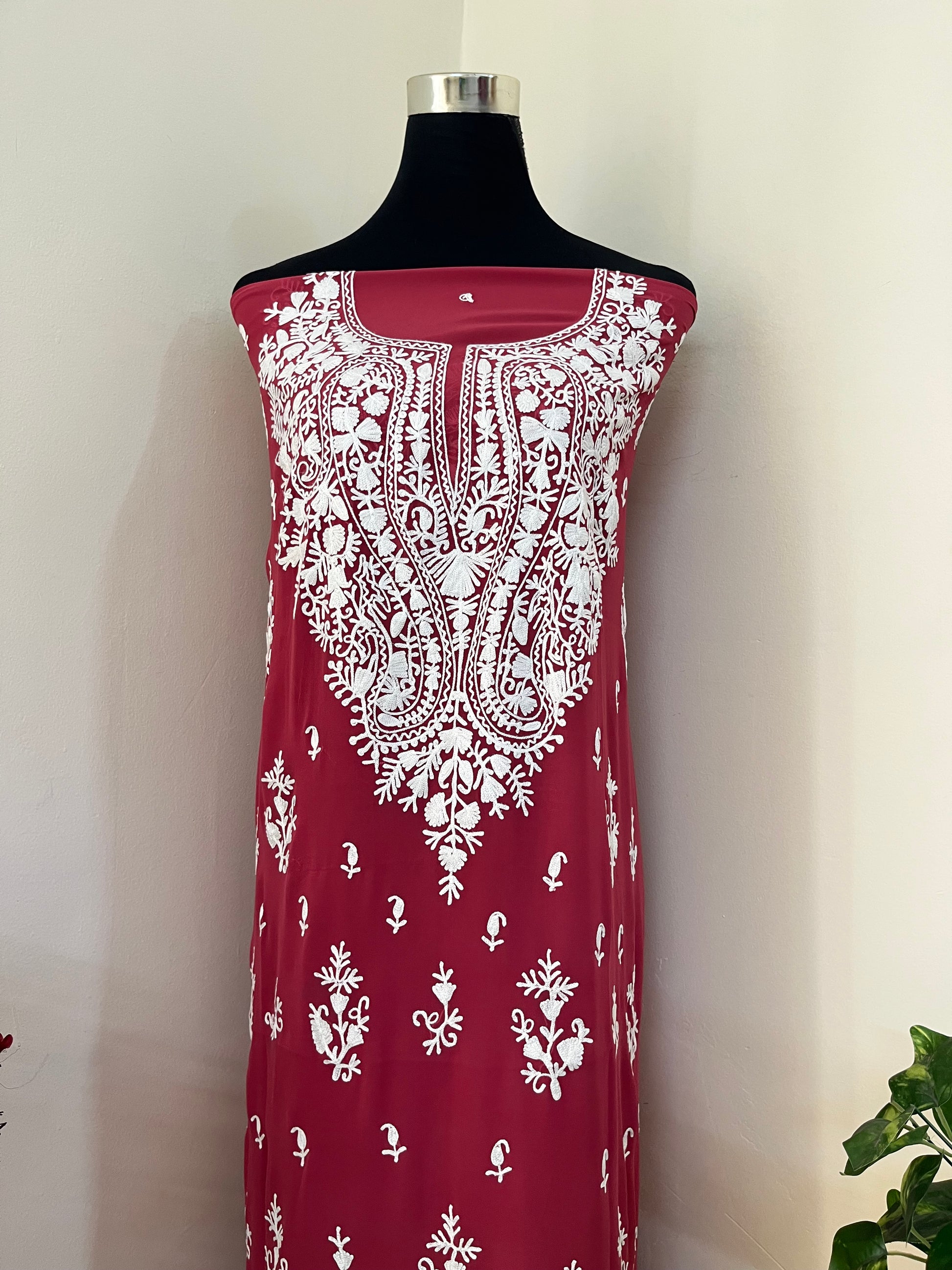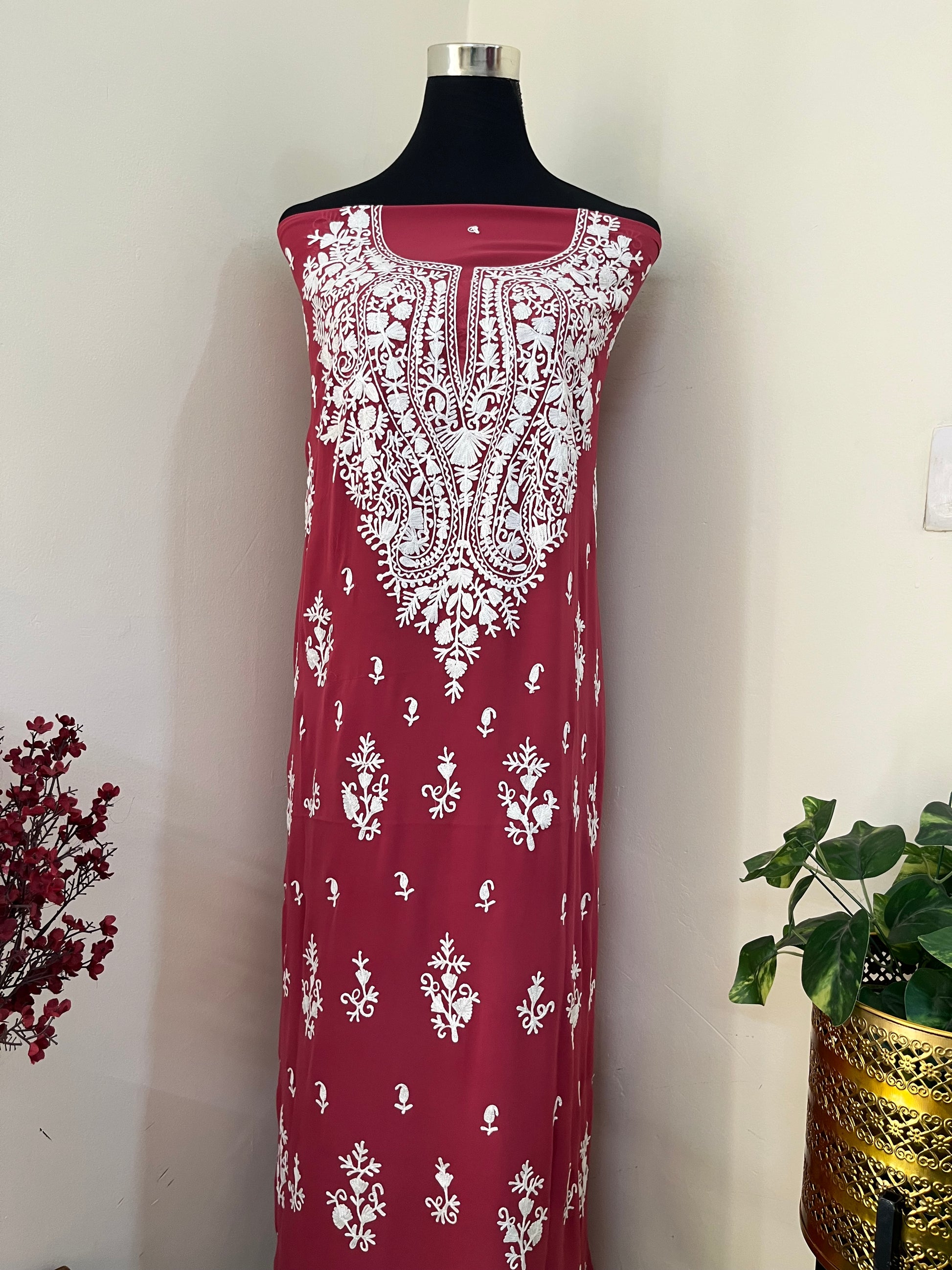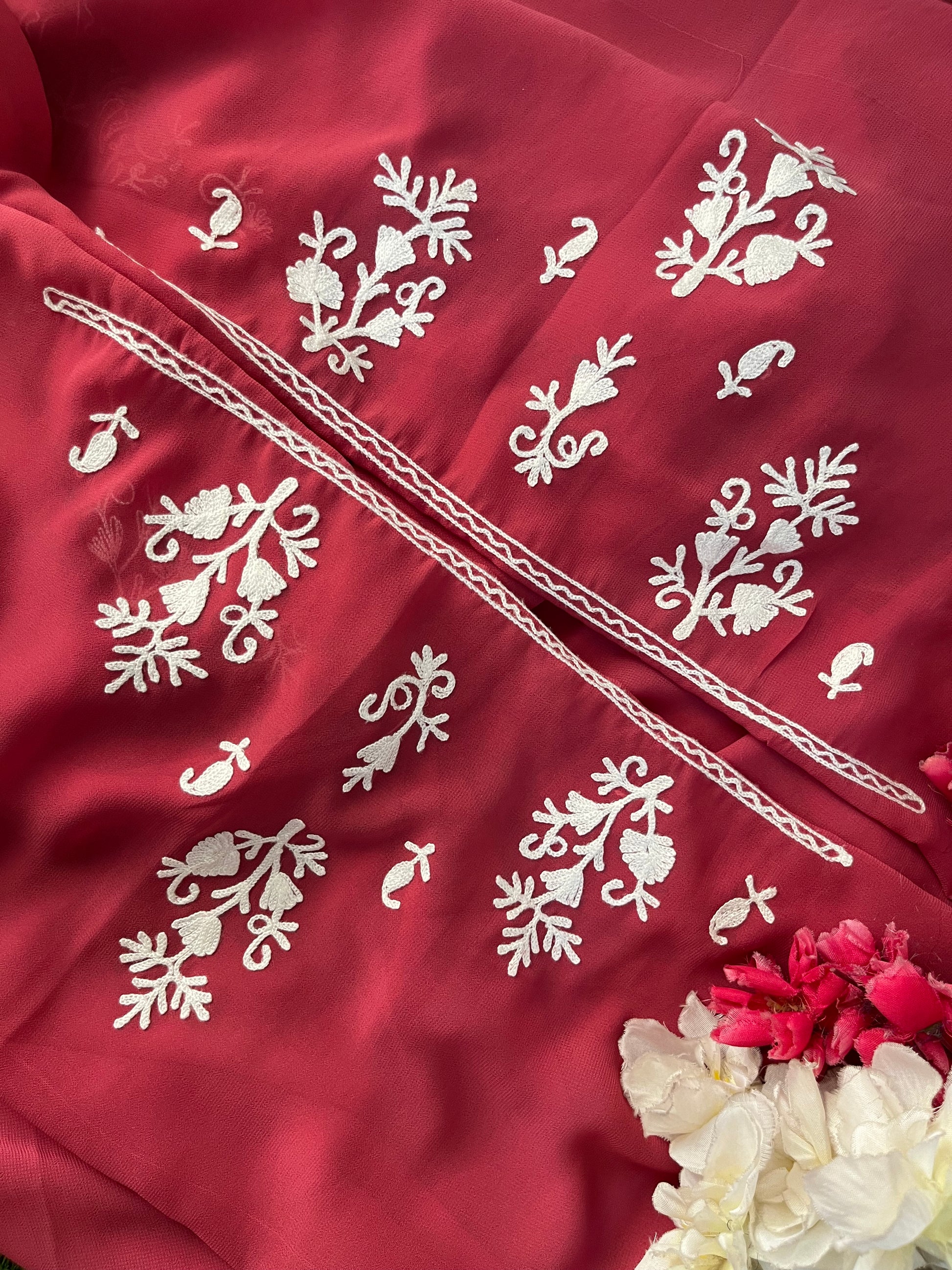 Blush Red Georgette Kashmiri Unstitched Kurta Material