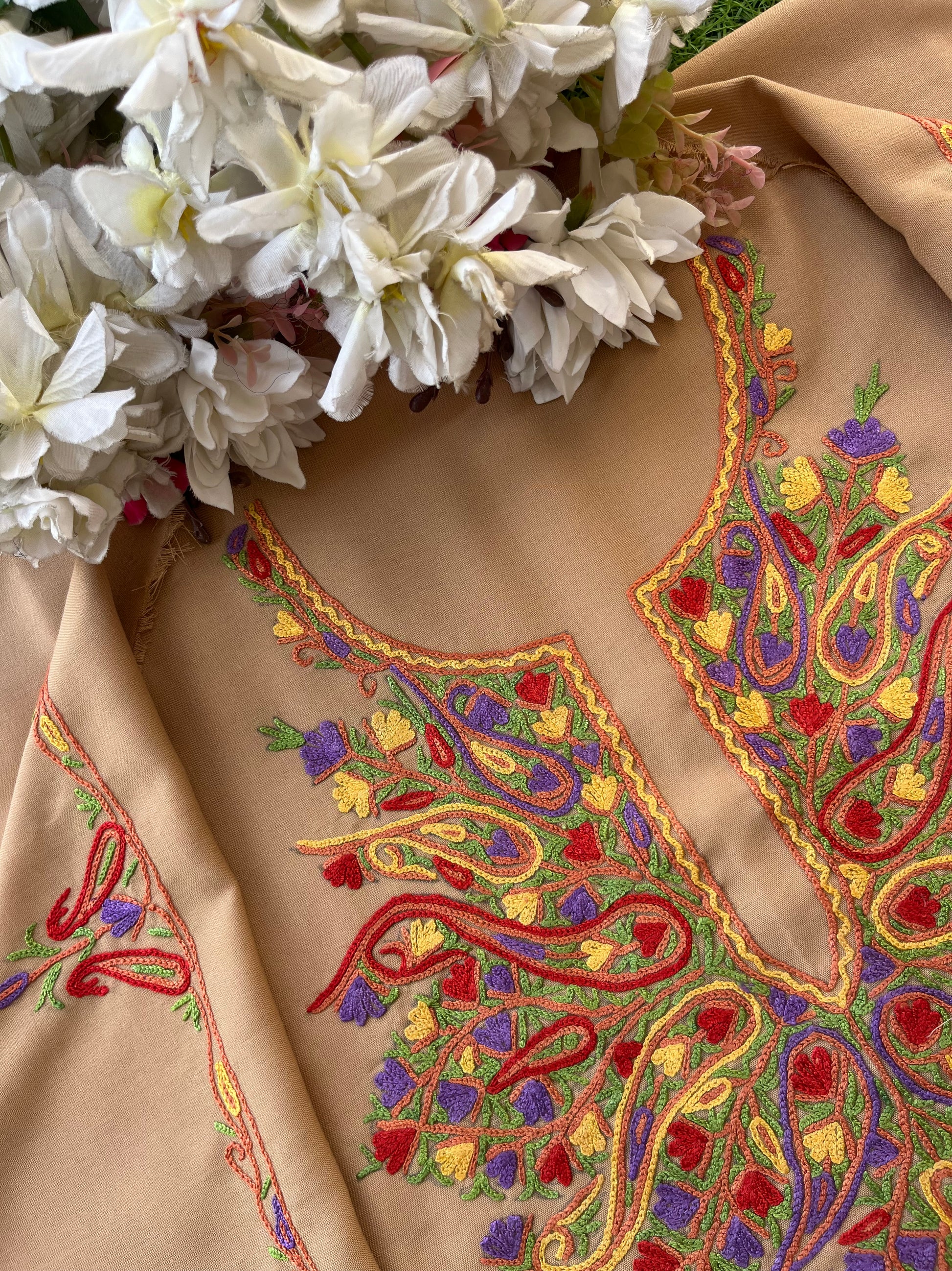 Beige Cotton Two Piece Suit (Hand Embroidered)