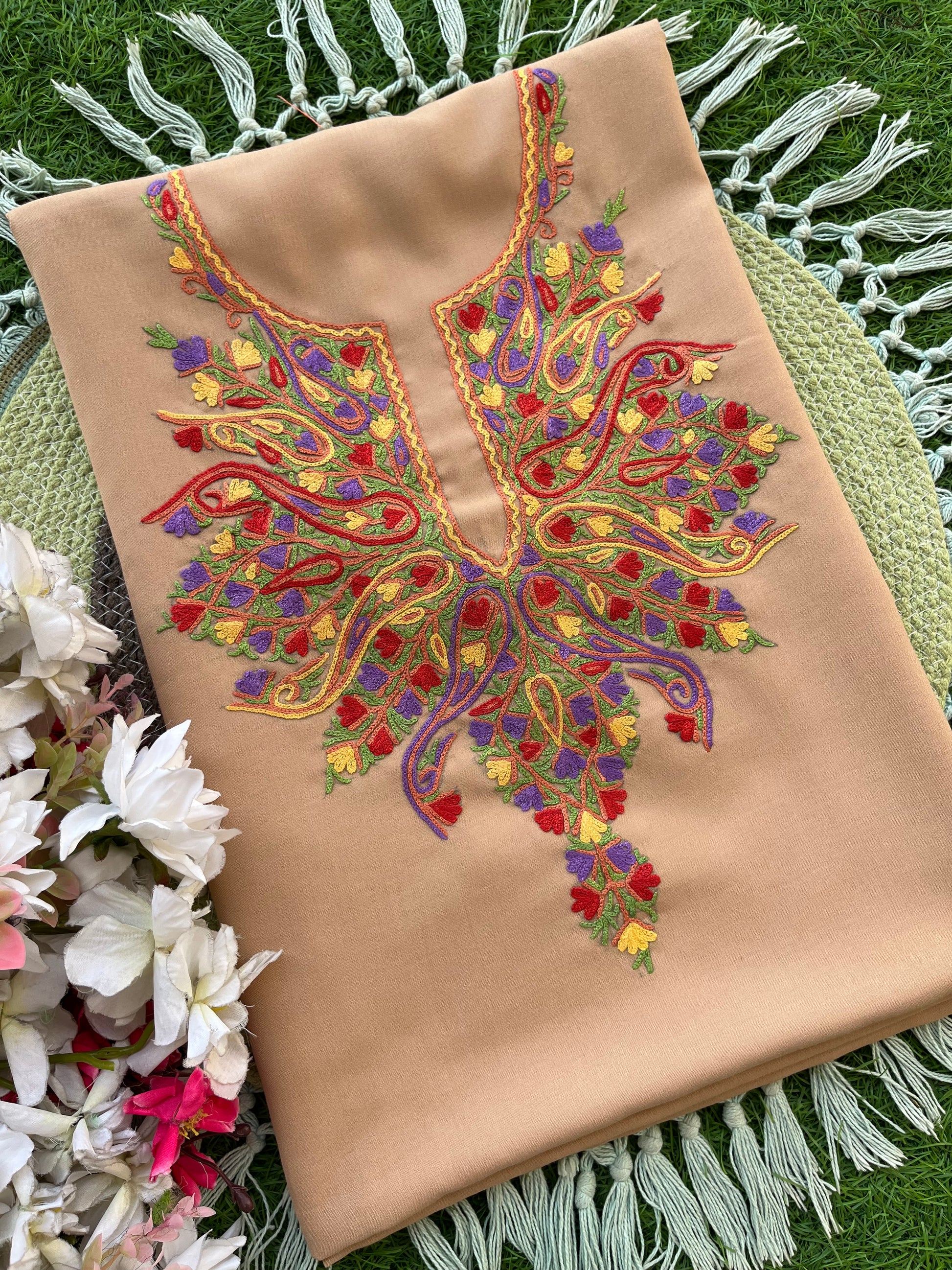 Make your summers more cooler by adding summer aari embroidered unstitched cotton suit into your Daily wears!! It’s a two piece set including shirt and bottom (Total 5 mtr fabric).