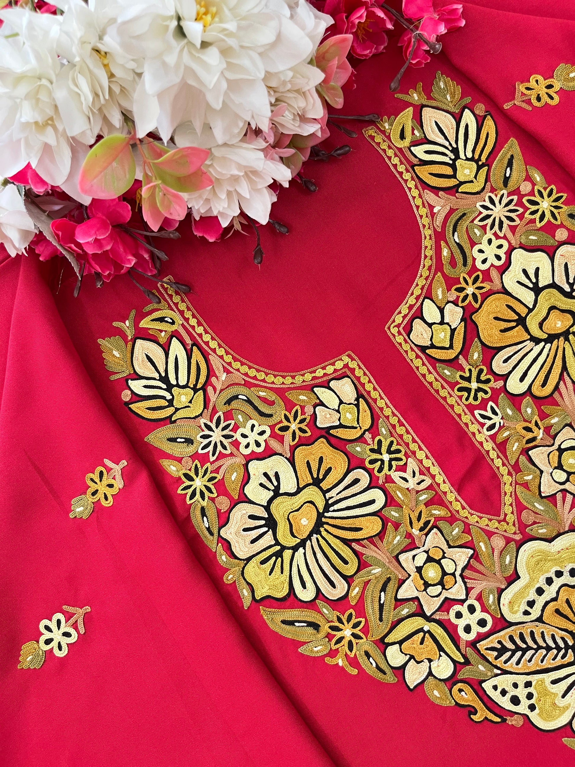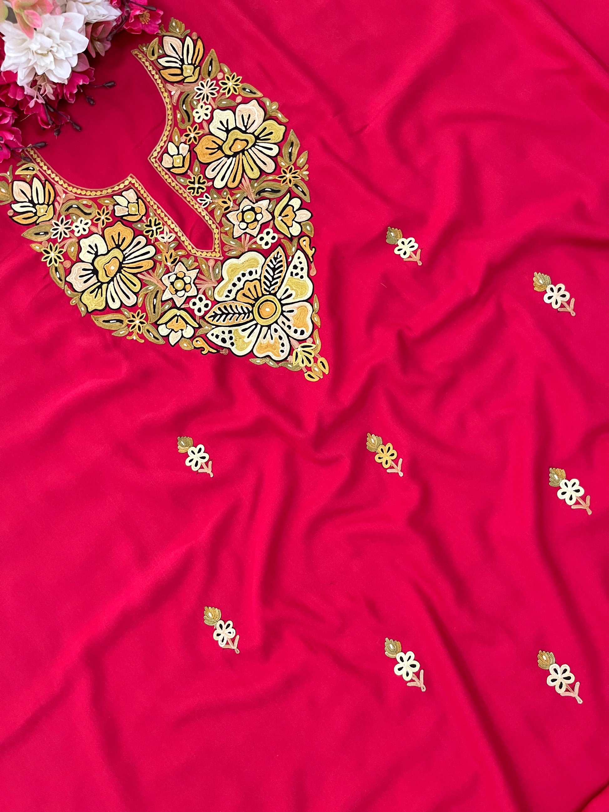 Make your summers more cooler by adding summer aari embroidered unstitched cotton suit into your Daily wears!! It’s a two piece set including shirt and bottom (Total 5 mtr fabric).