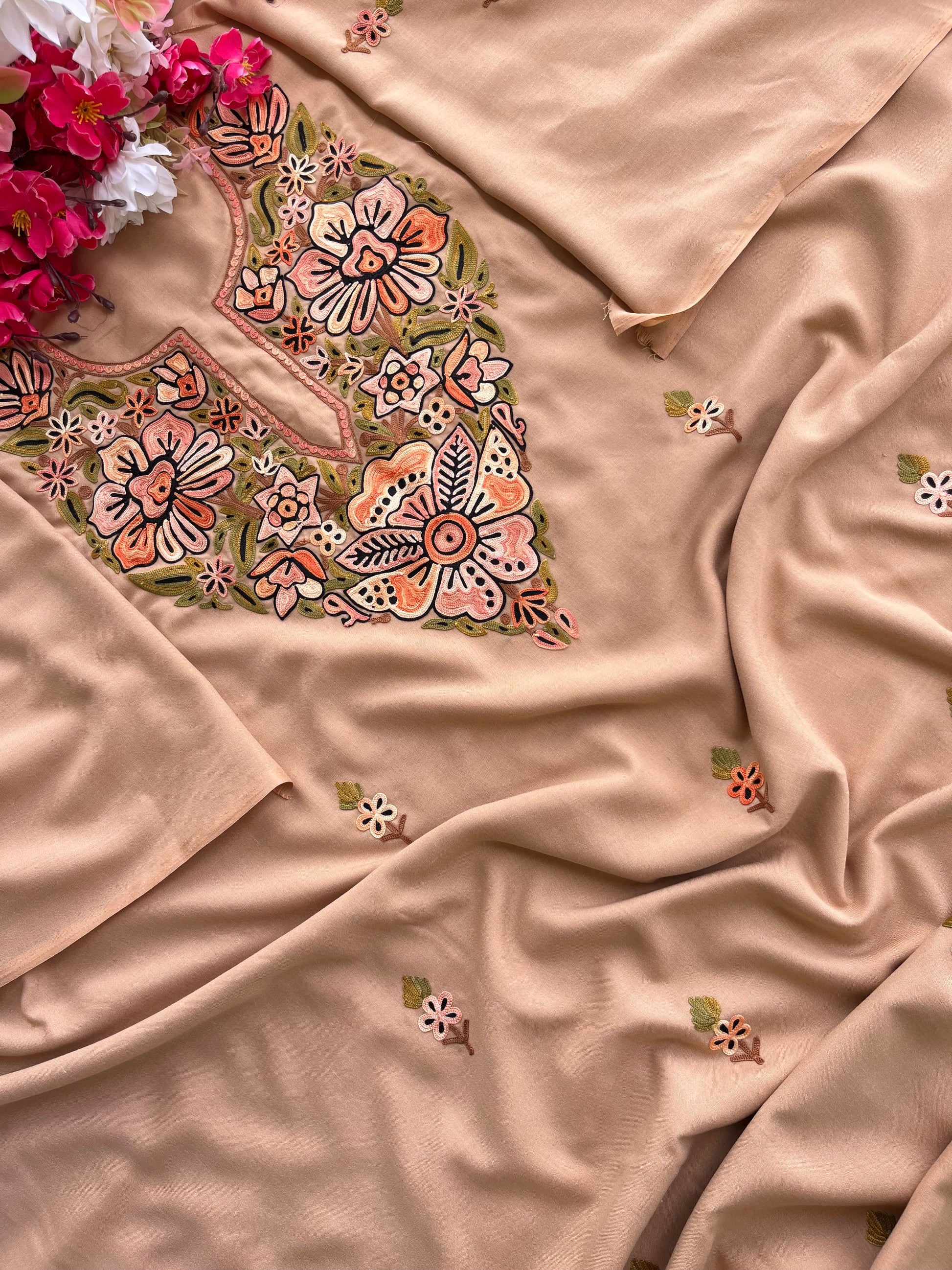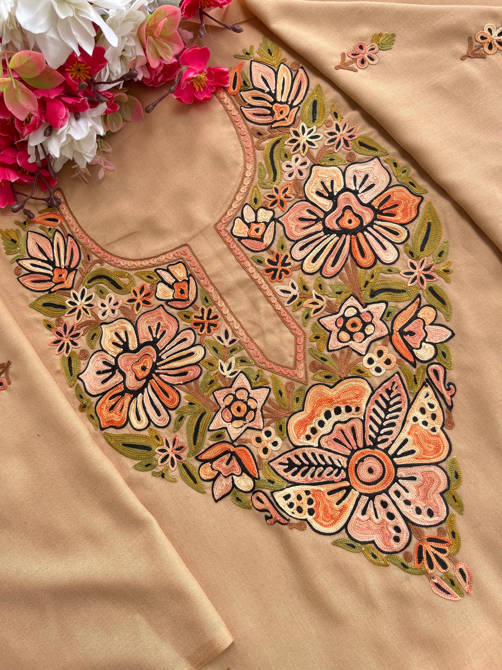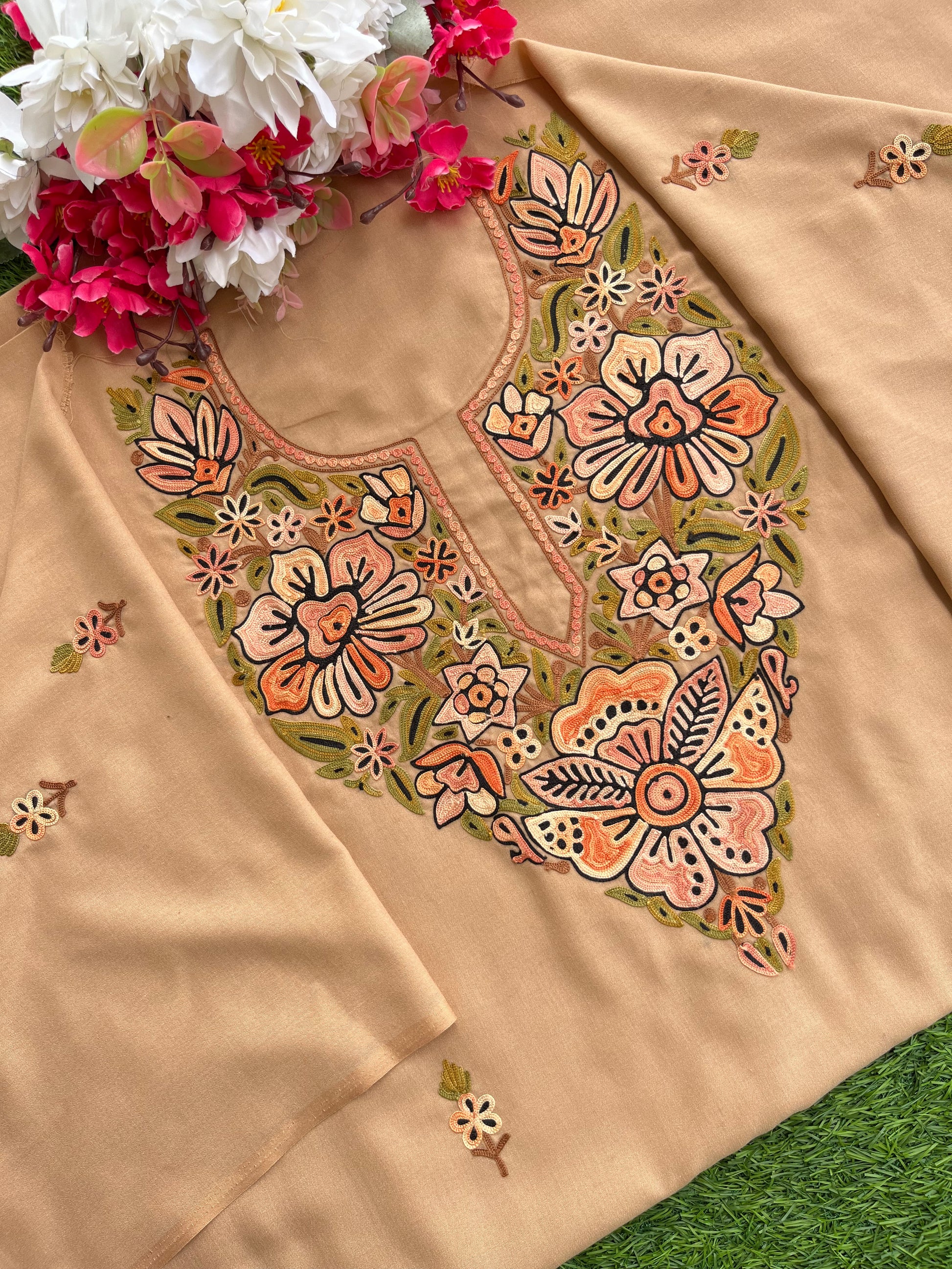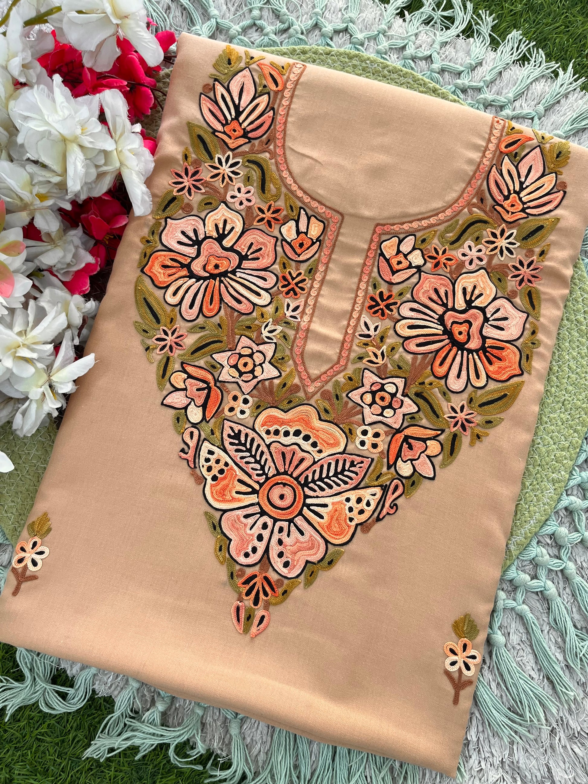 Make your summers more cooler by adding summer aari embroidered unstitched cotton suit into your Daily wears!! It’s a two piece set including shirt and bottom (Total 5 mtr fabric).