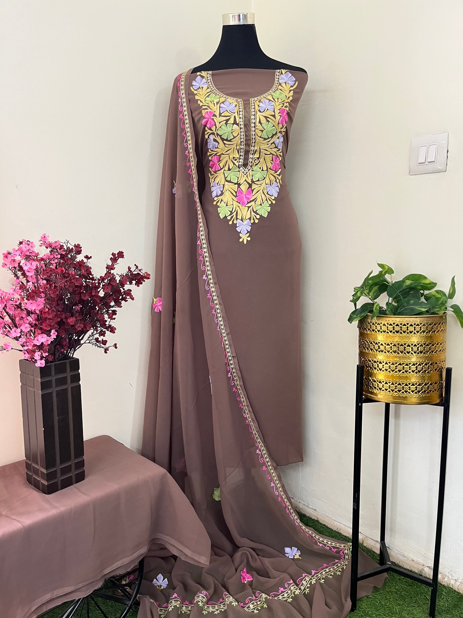 Make your Lunches more stylish by adding this gorgeous Aari embroidered georgette suit into your specials !!