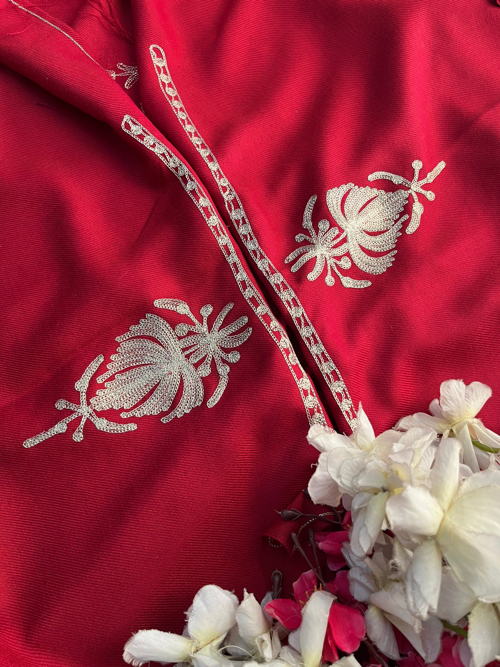 The beautiful Chinar leaf is the main motif used in this gorgeous suit piece making it a perfect fit for those occasional, formal as well as casual gatherings with a shawl draping along your shoulders, their eyes wont take off from you!