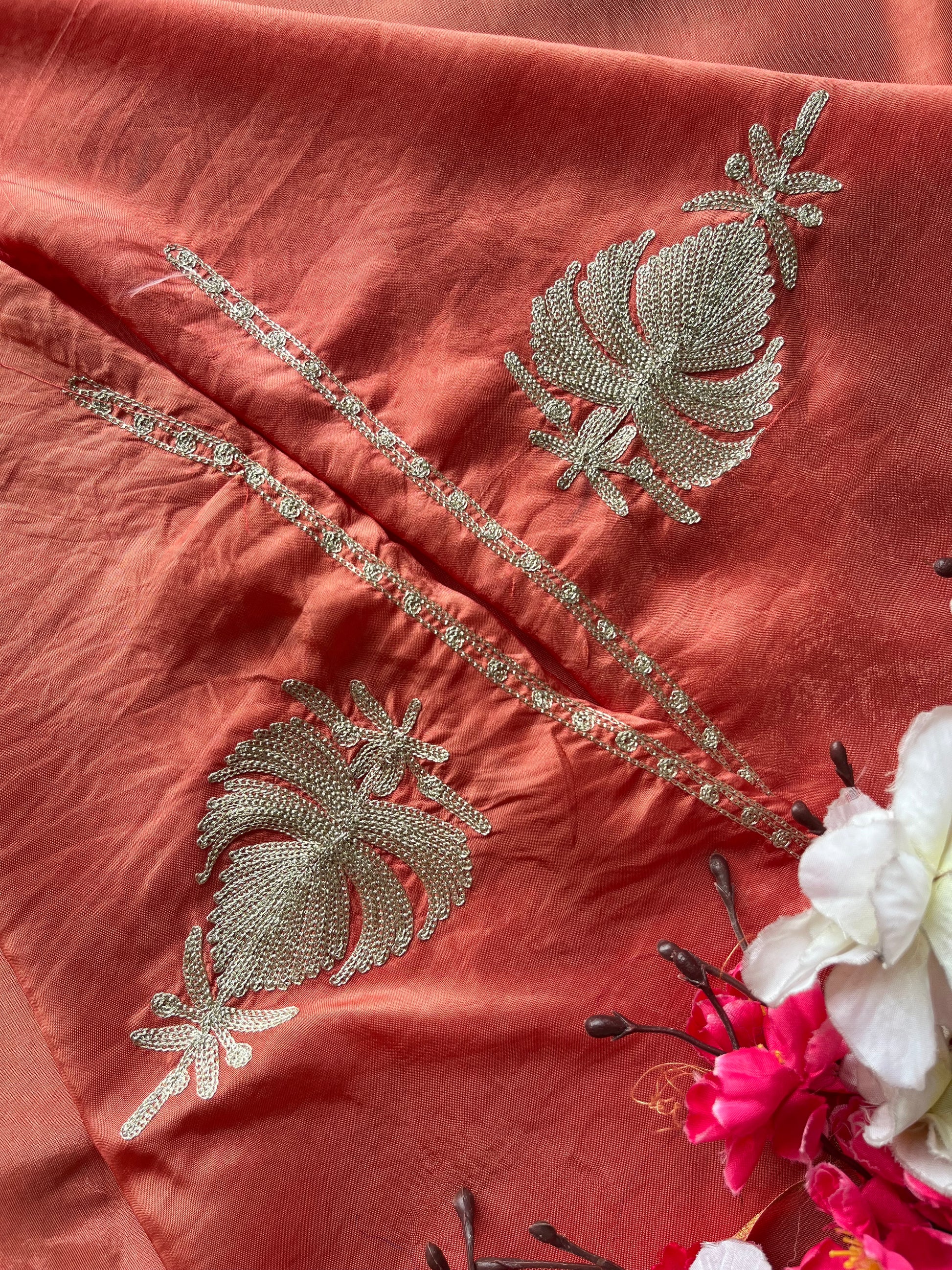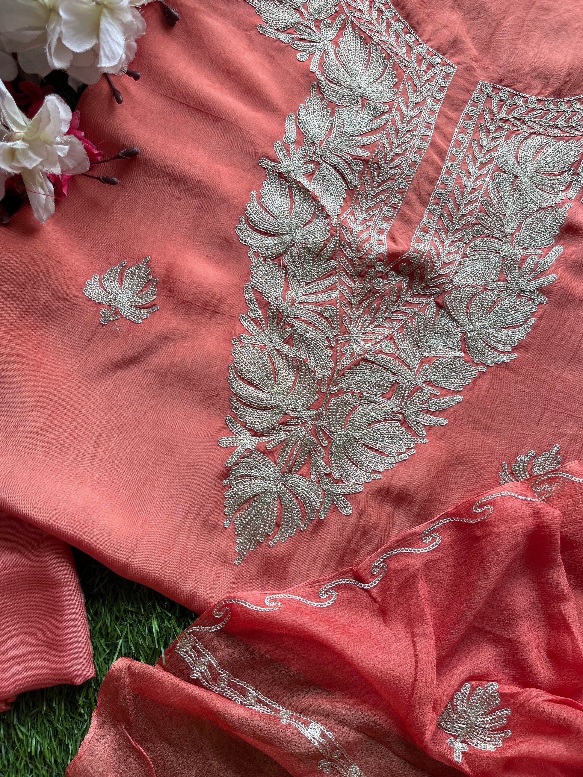 Experience the exquisite artistry of Kashmiri tilla embroidery .Each stitch tells a tale of craftsmanship, tradition, and intricate beauty. Elevate your wardrobe with this timeless treasure.