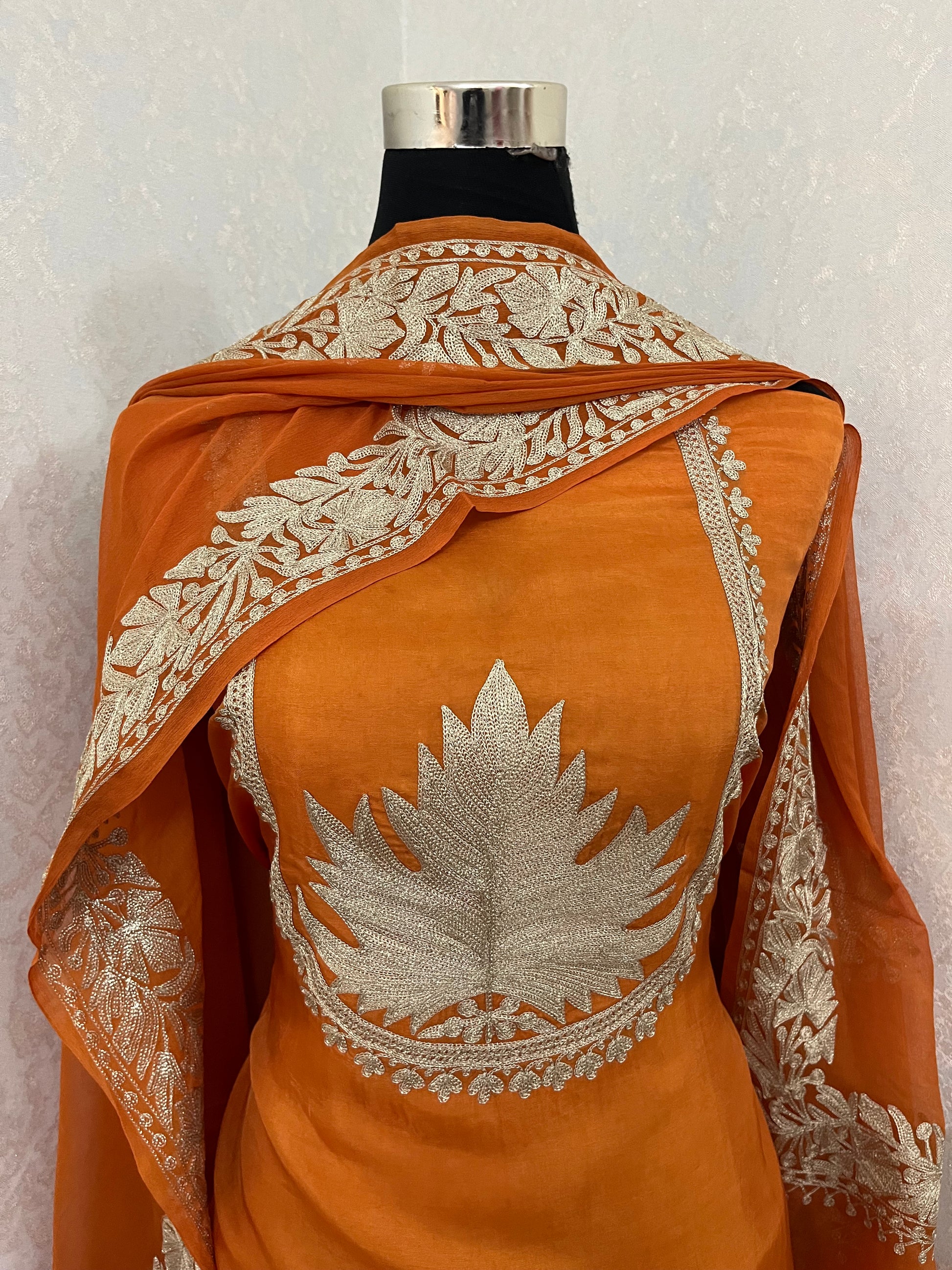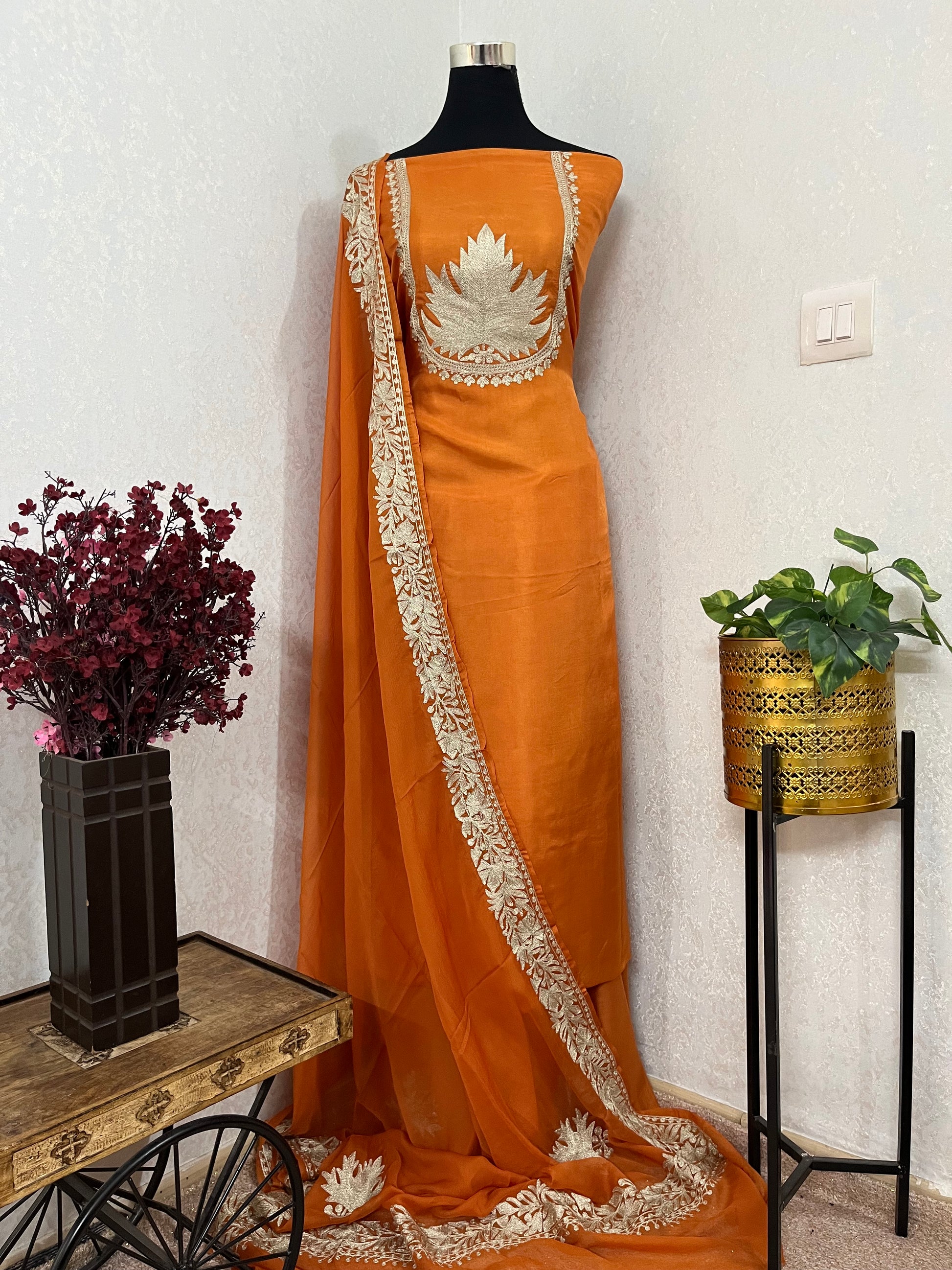 Light Orange Sanam’ Tilla Kashmiri Silk Suit