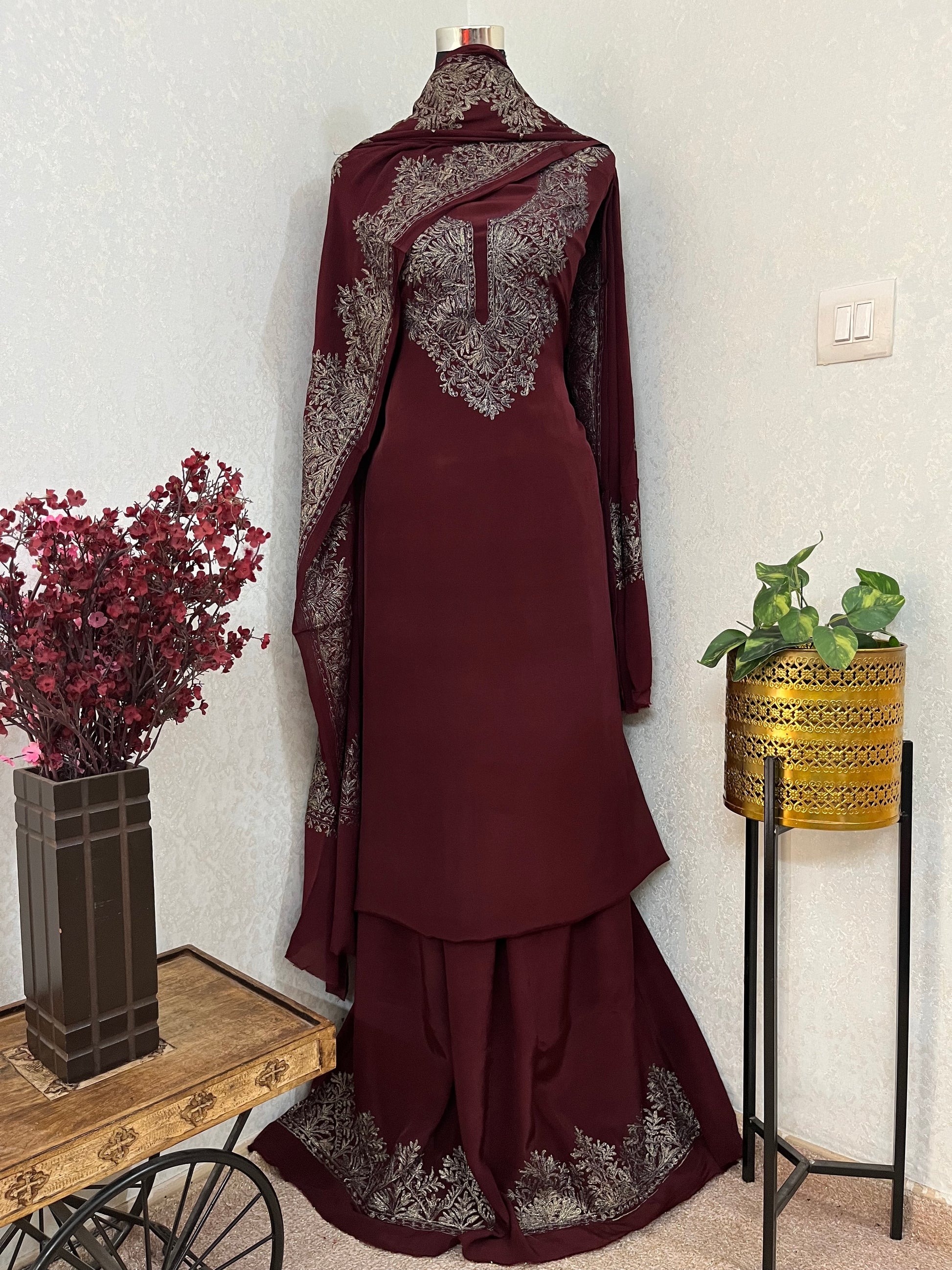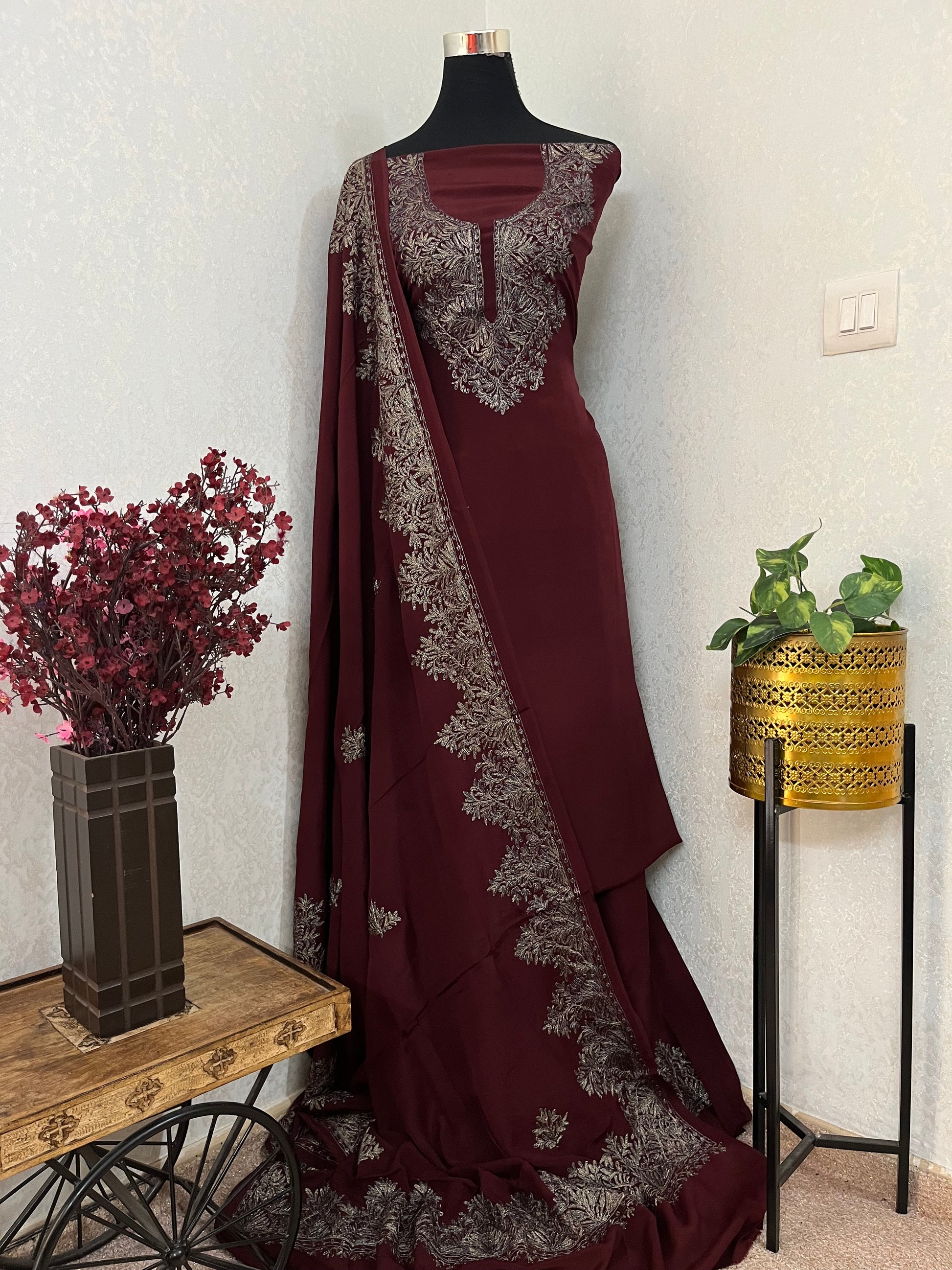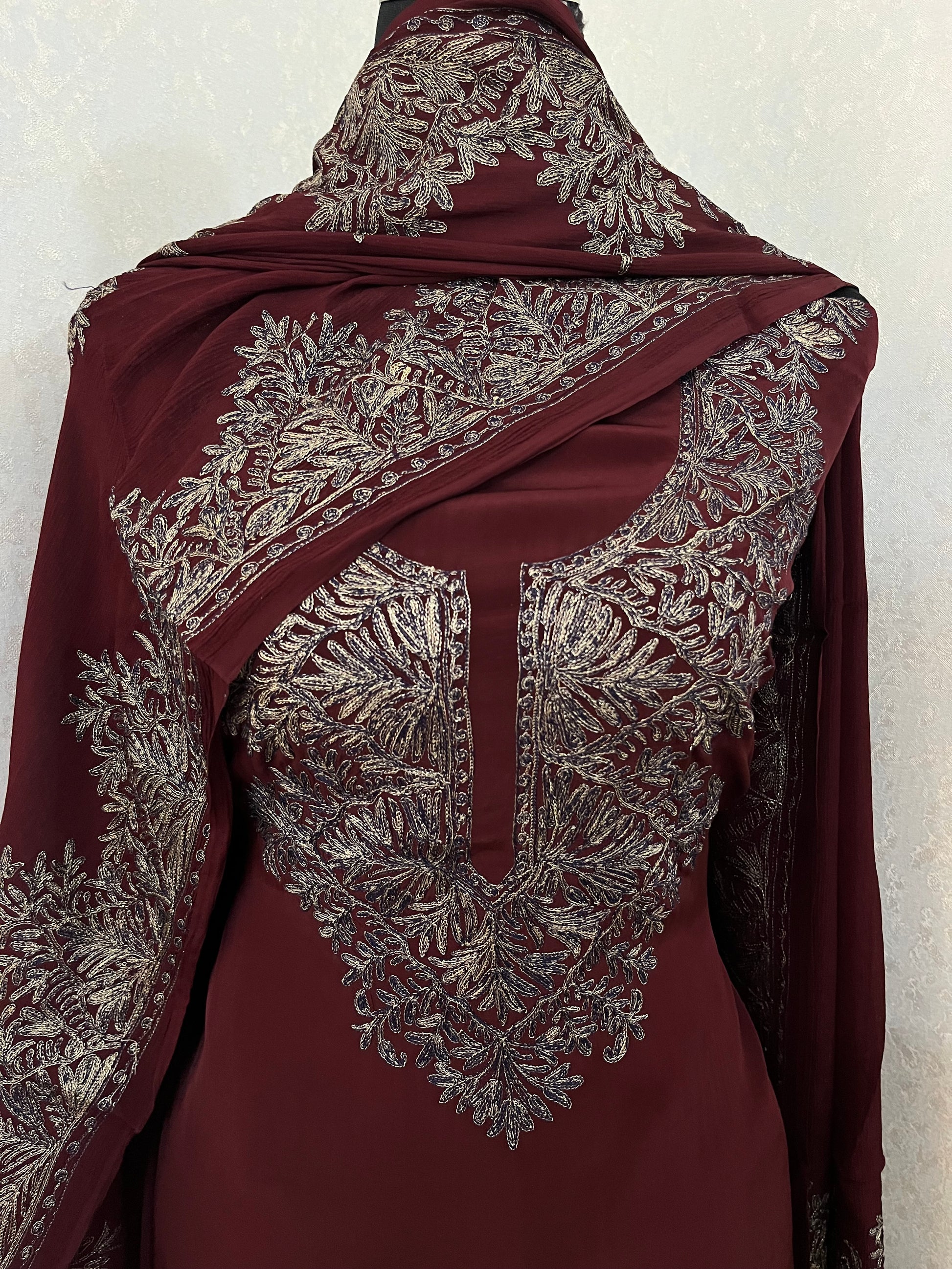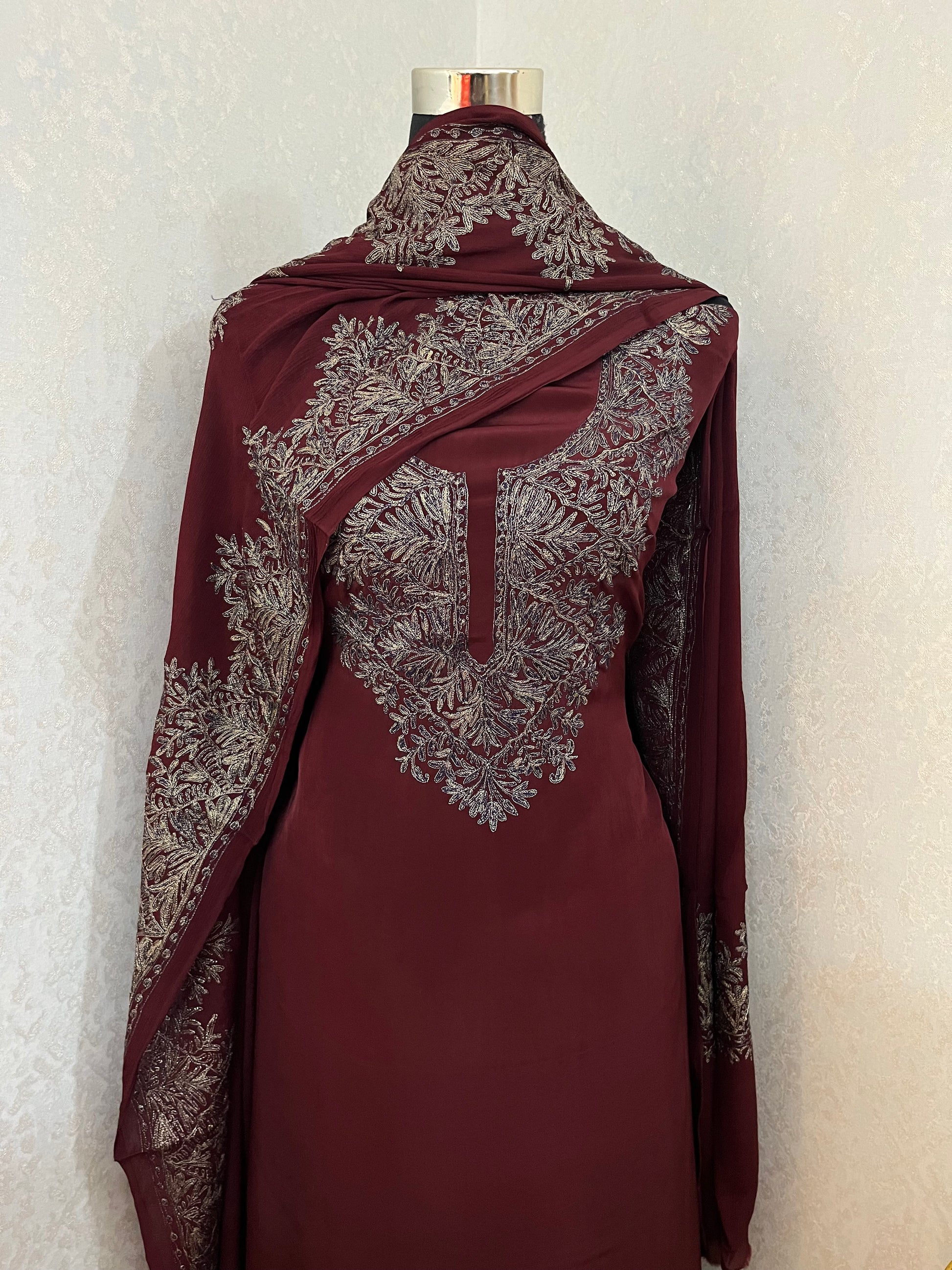 Experience the exquisite artistry of Kashmiri Nalki Work .Each stitch tells a tale of craftsmanship, tradition, and intricate beauty. Elevate your wardrobe with this timeless treasure.
