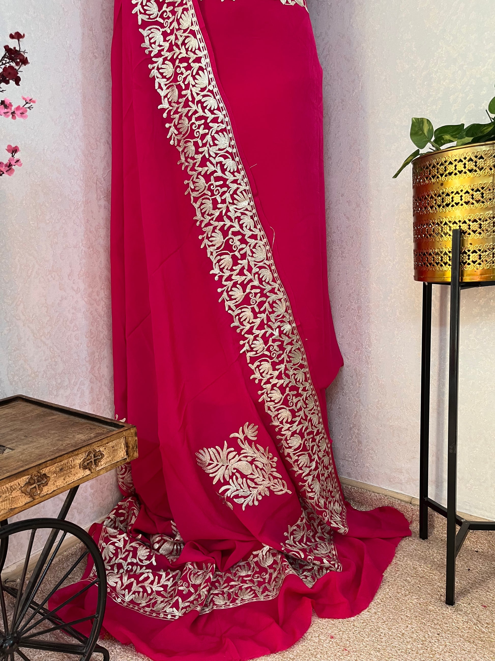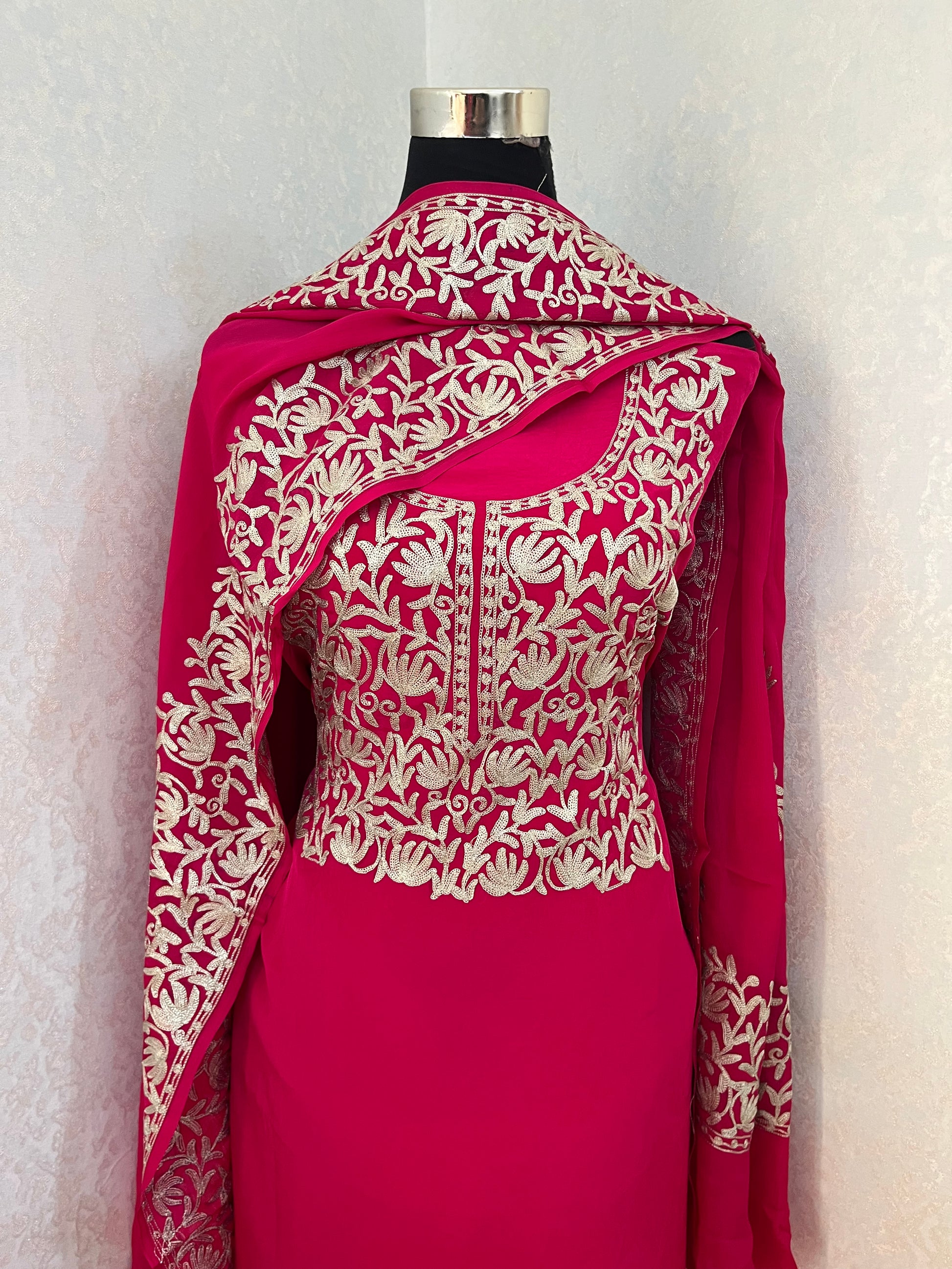 Experience the exquisite artistry of Kashmiri tilla embroidery .Each stitch tells a tale of craftsmanship, tradition, and intricate beauty. Elevate your wardrobe with this timeless treasure.