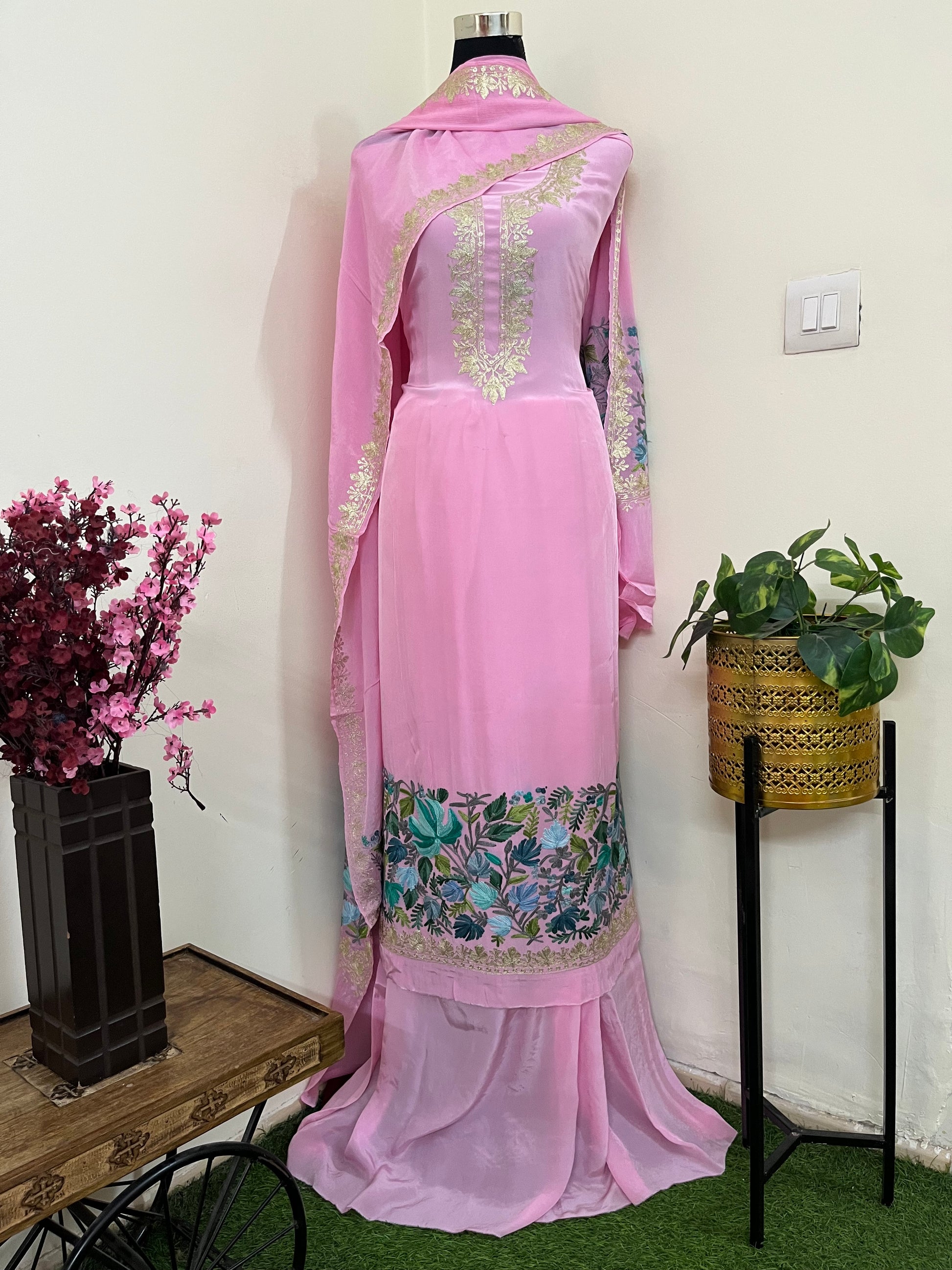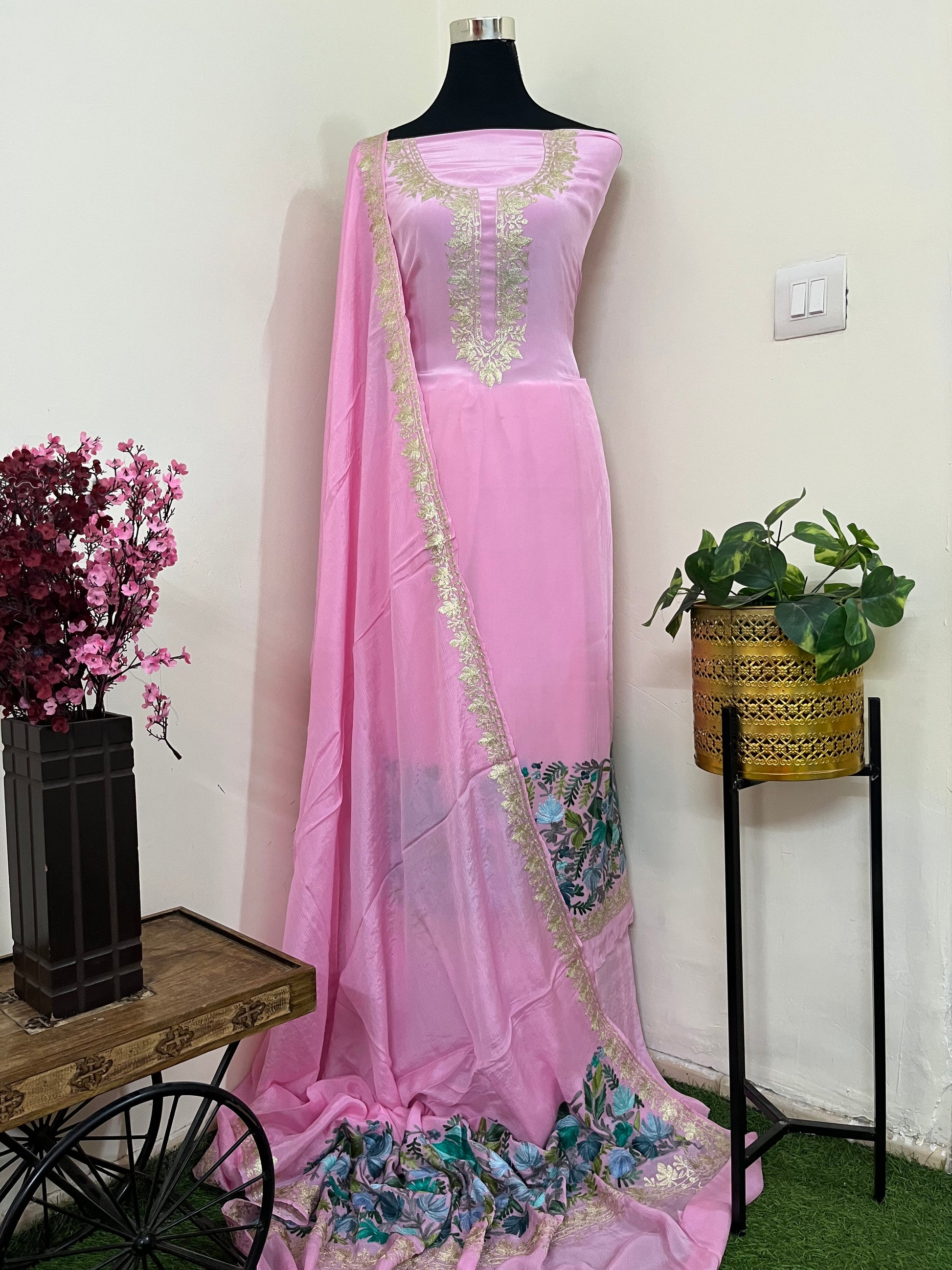‘Kalaa’ Soft Pink Crape Kashmiri Suit