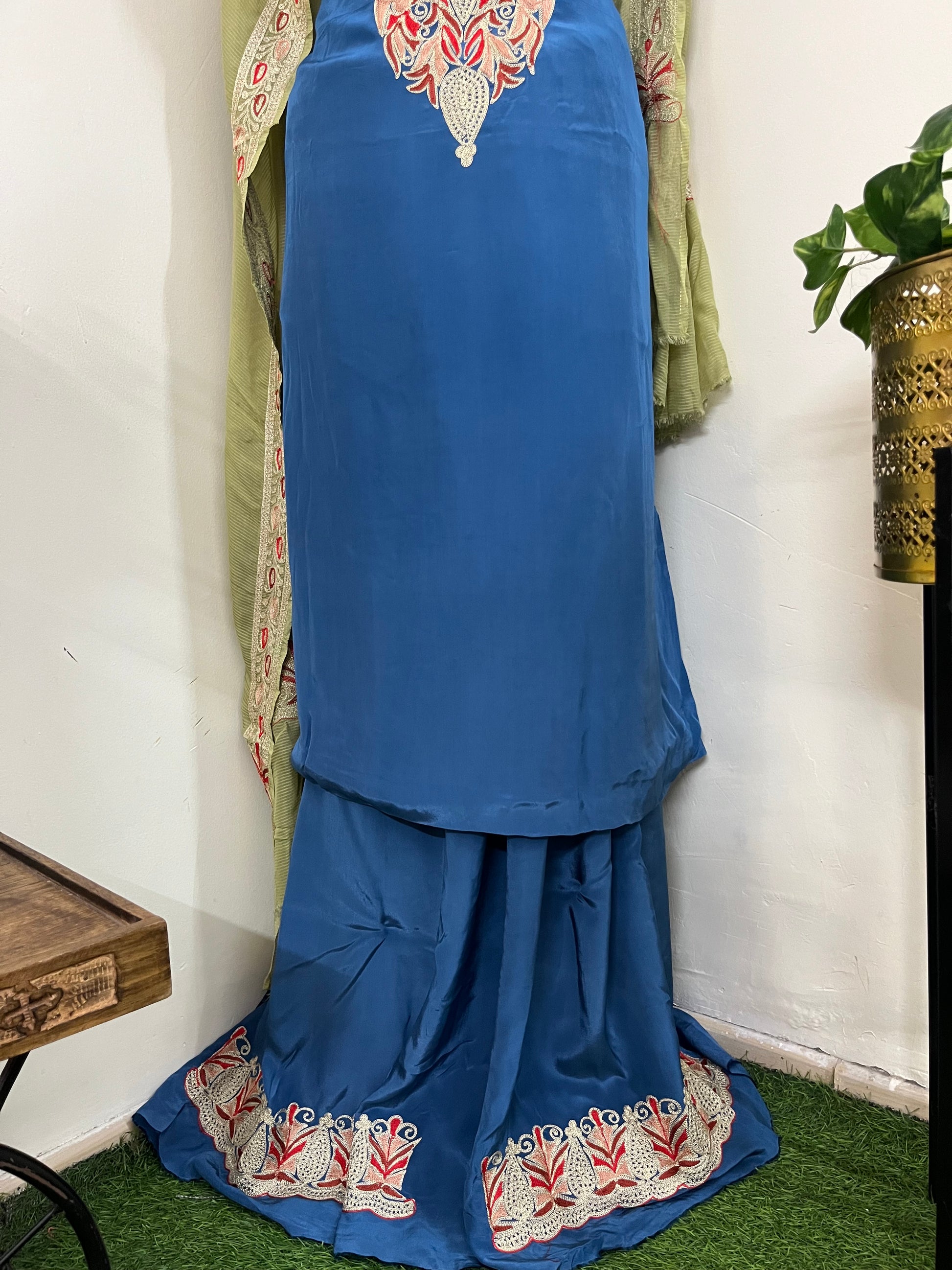Kalaa’ Electric Blue Crape Kashmiri Suit