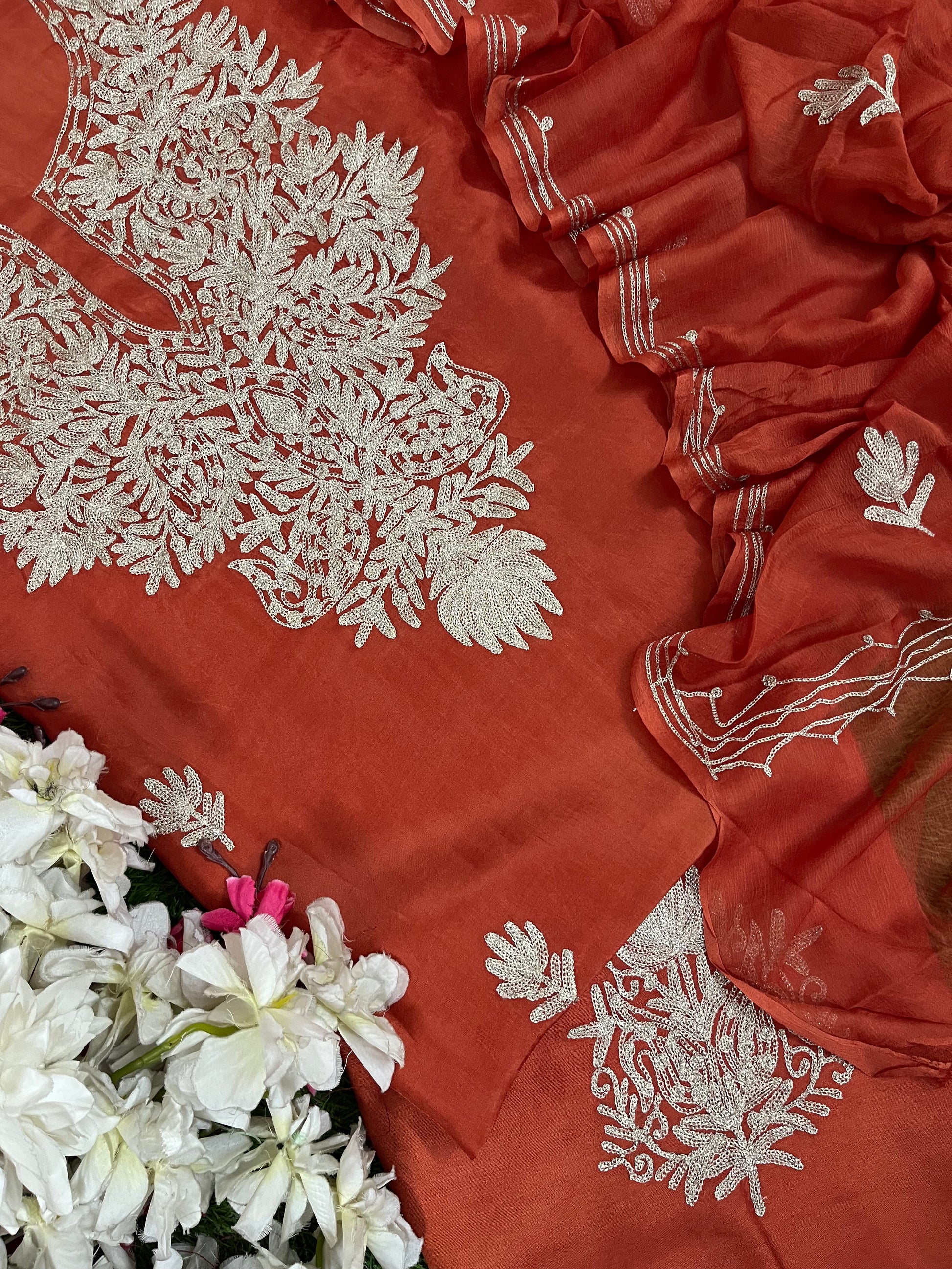 Soft Orange Silk Tilla Kashmiri Suit