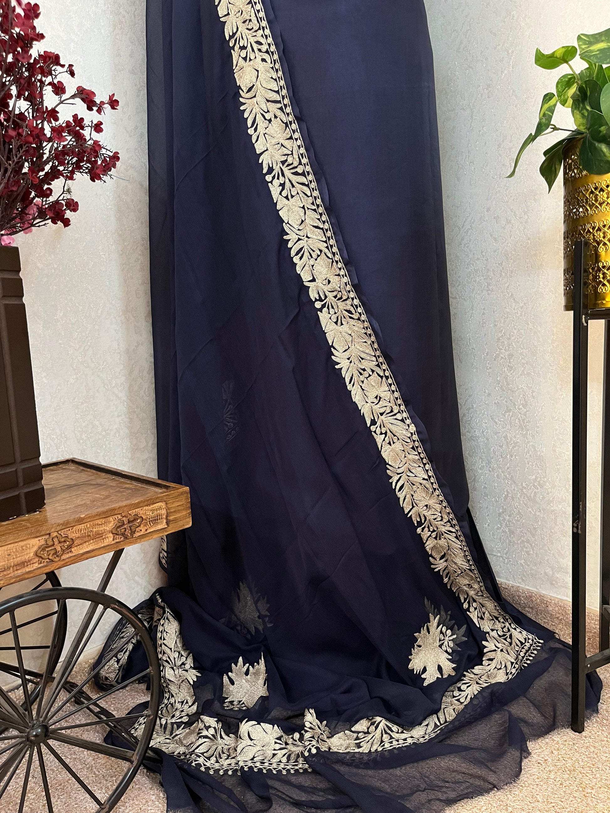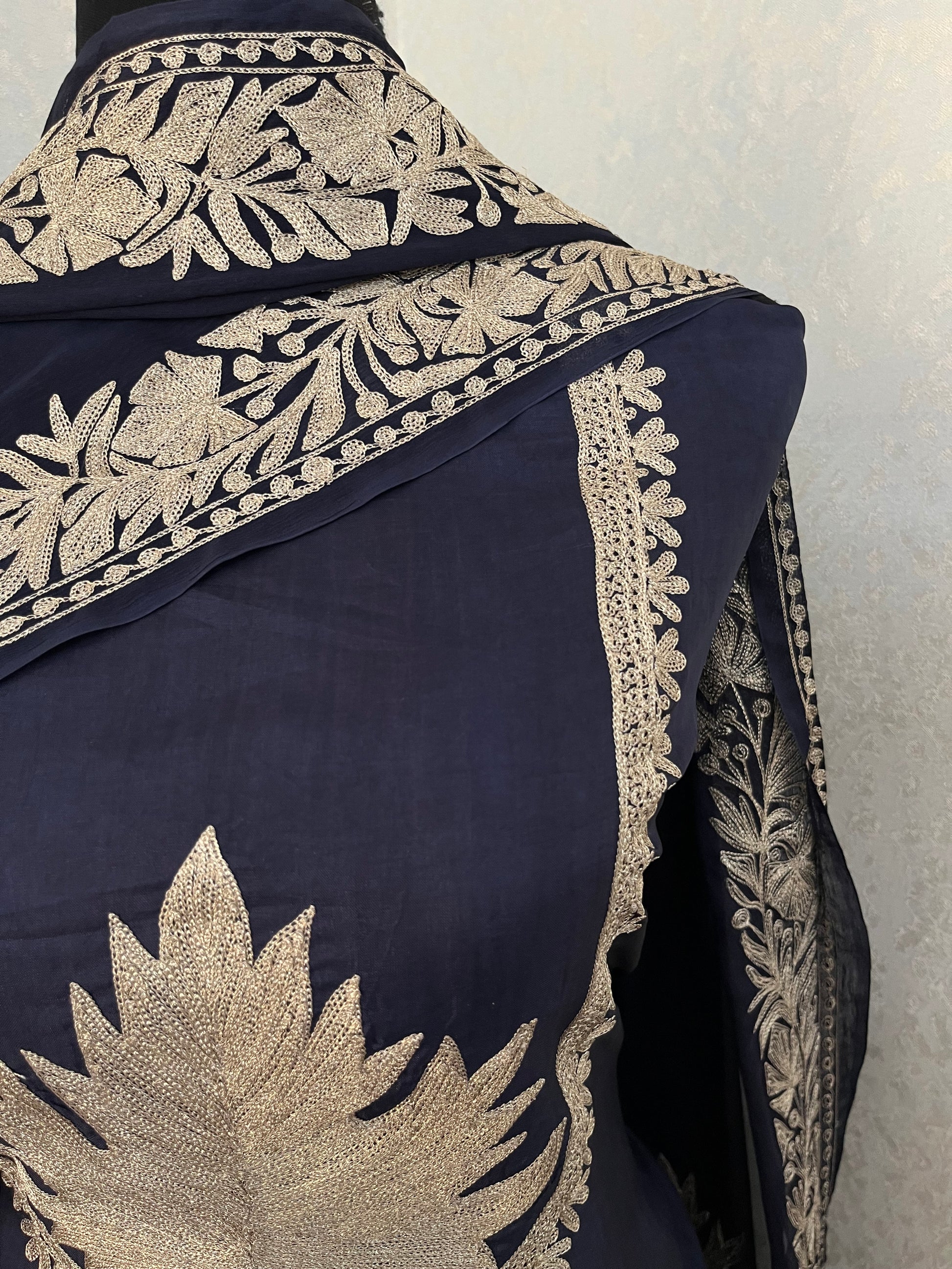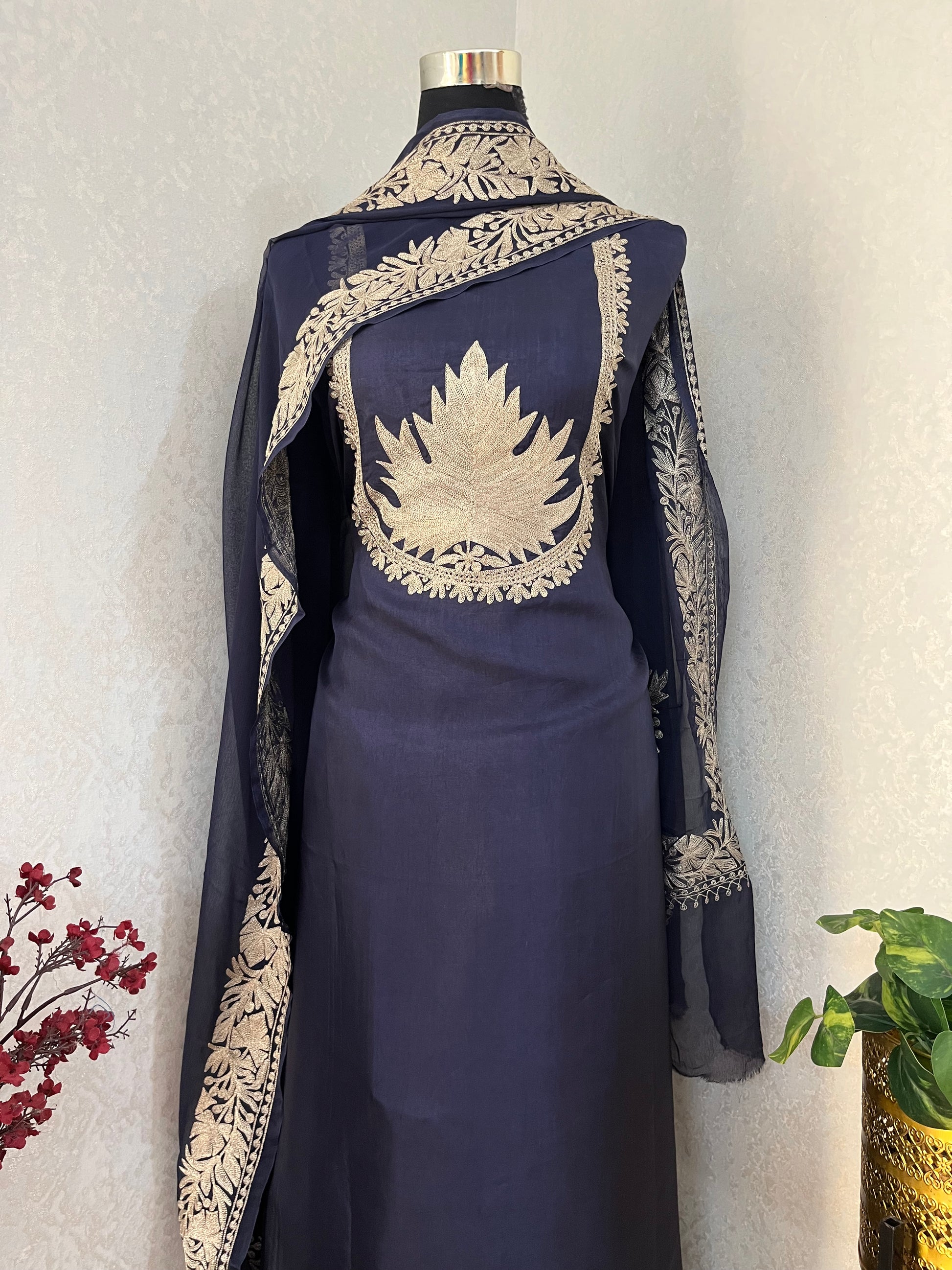 Navy Blue Sanam’ Tilla Kashmiri Silk Suit