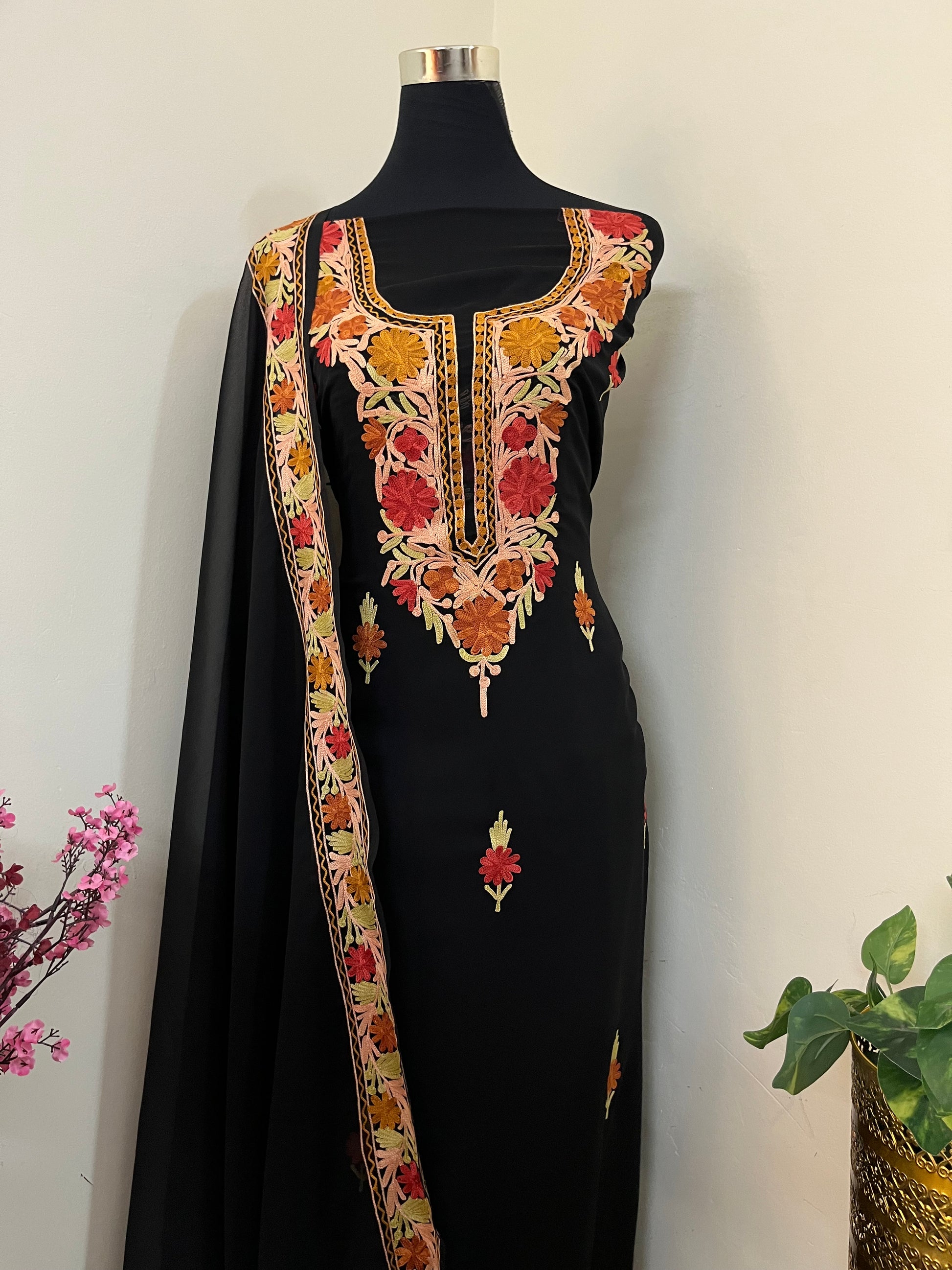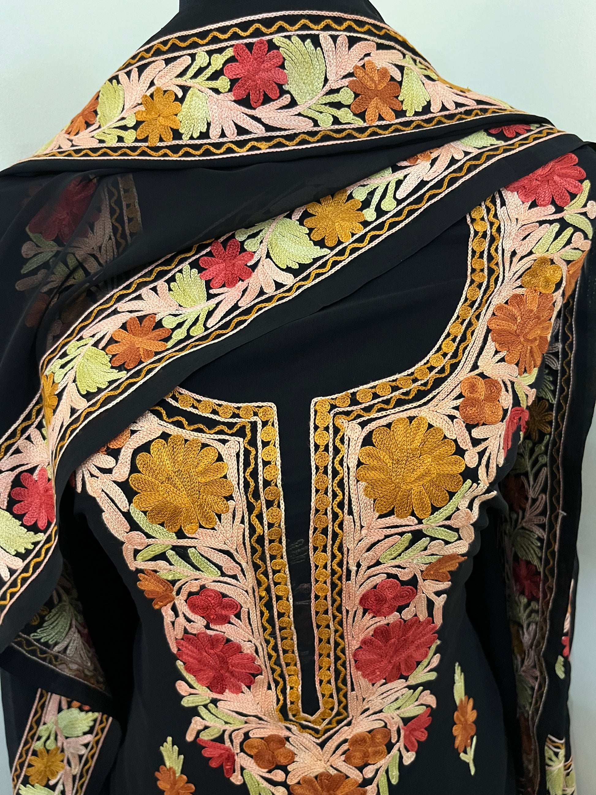 Black Georgette 3 Pc Aari Embroidered Suit Set