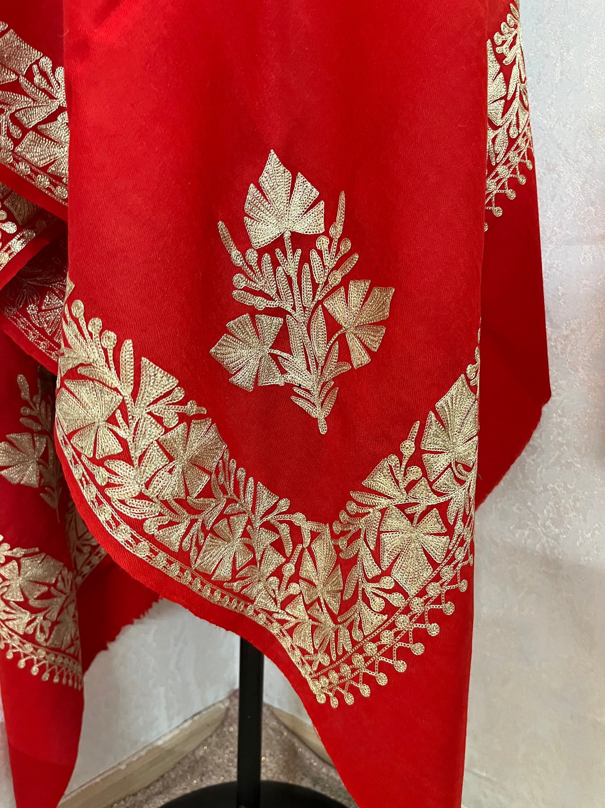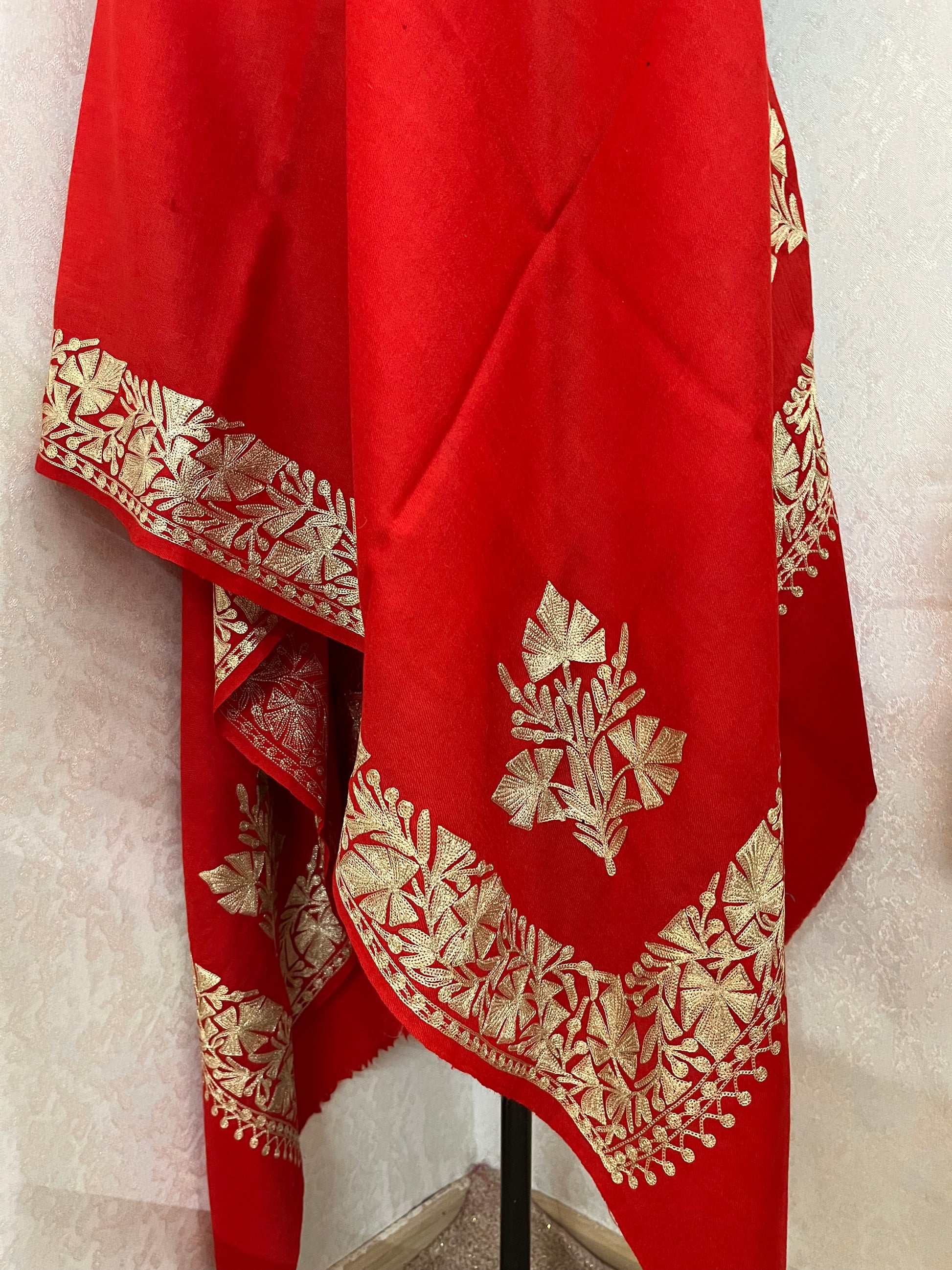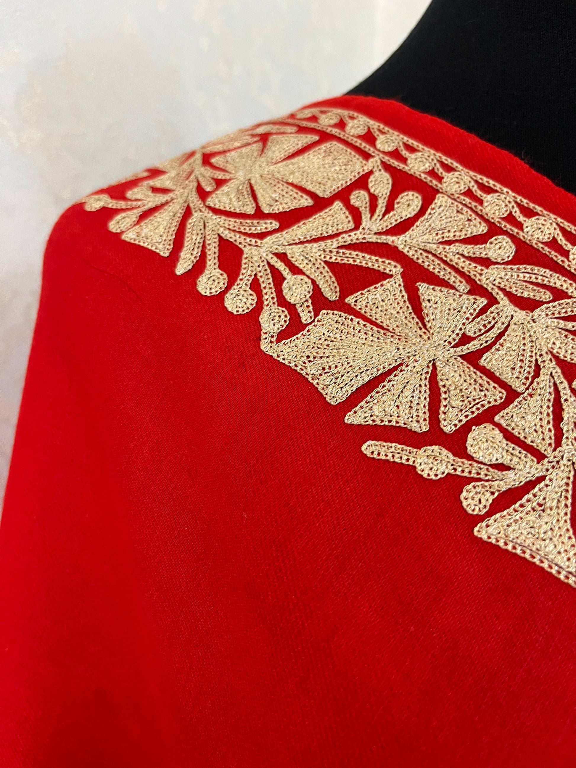 Red Semi Pashmina Tilla Embroidered stole