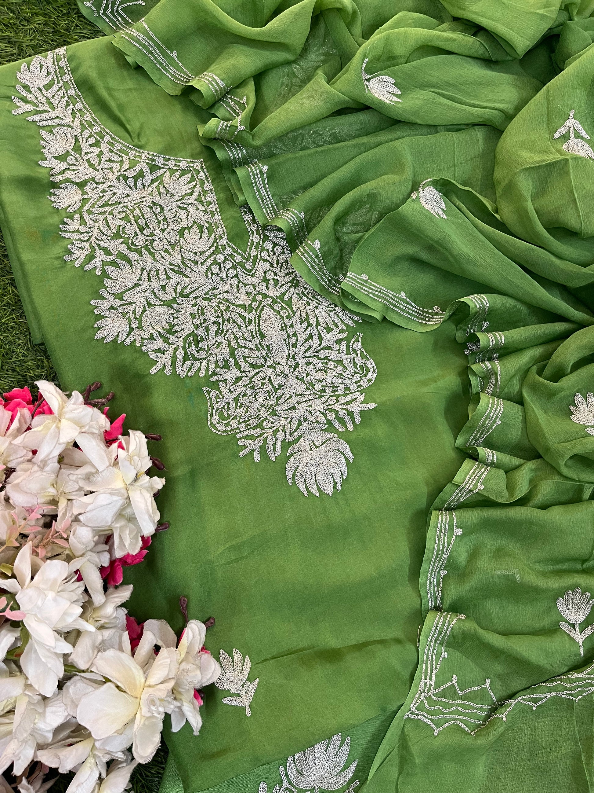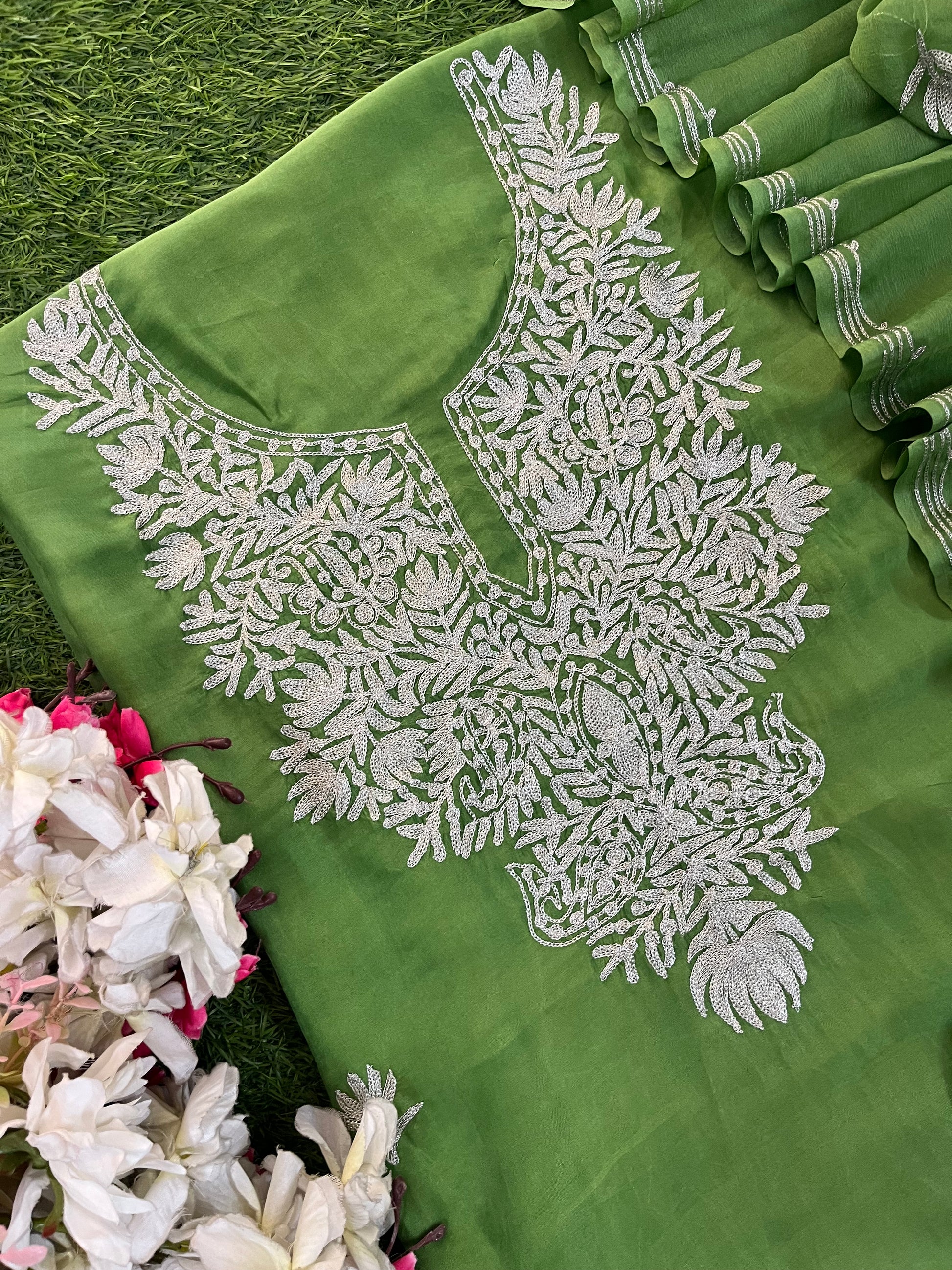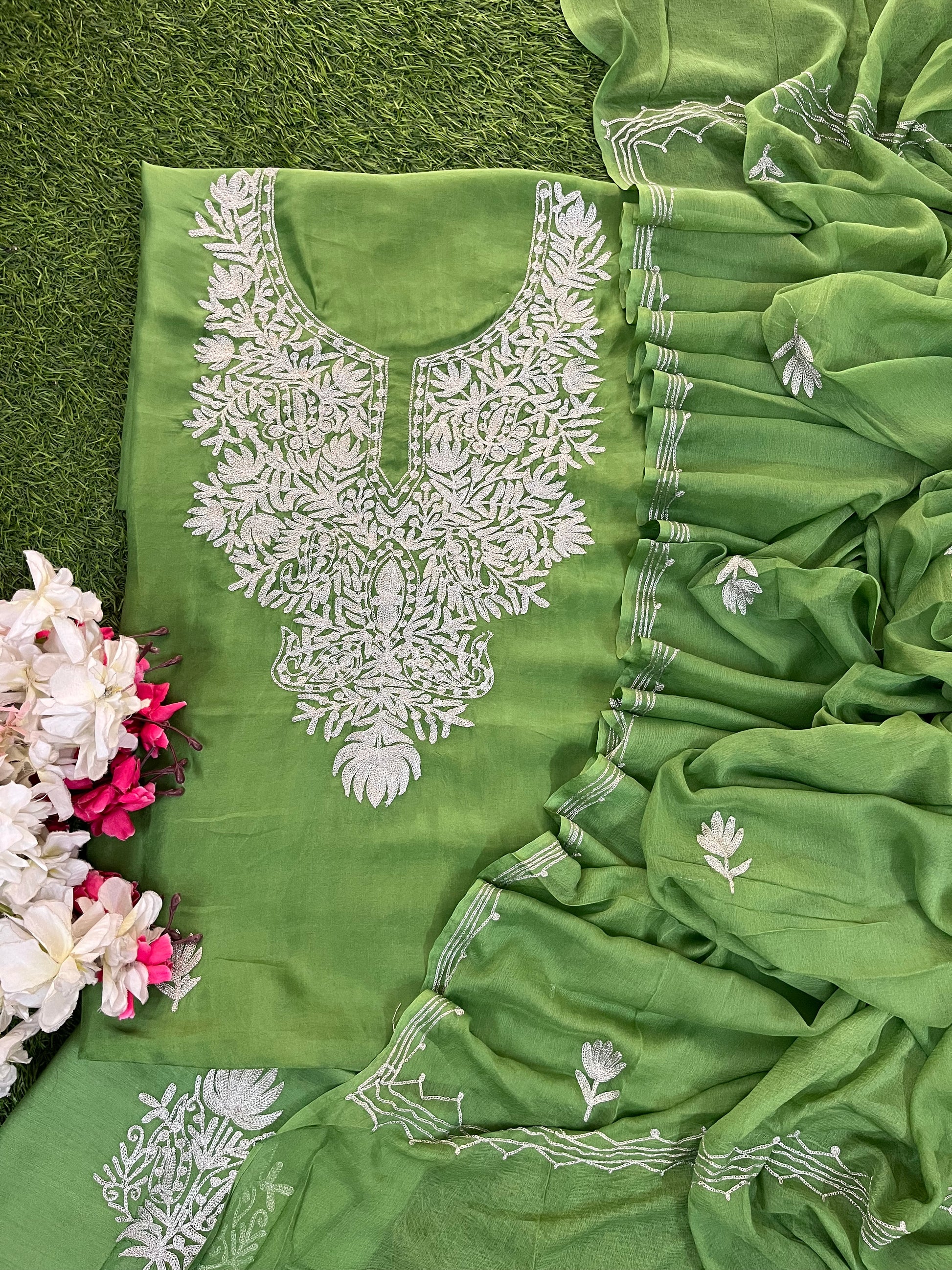Lawn Green Silk Tilla Kashmiri Suit
