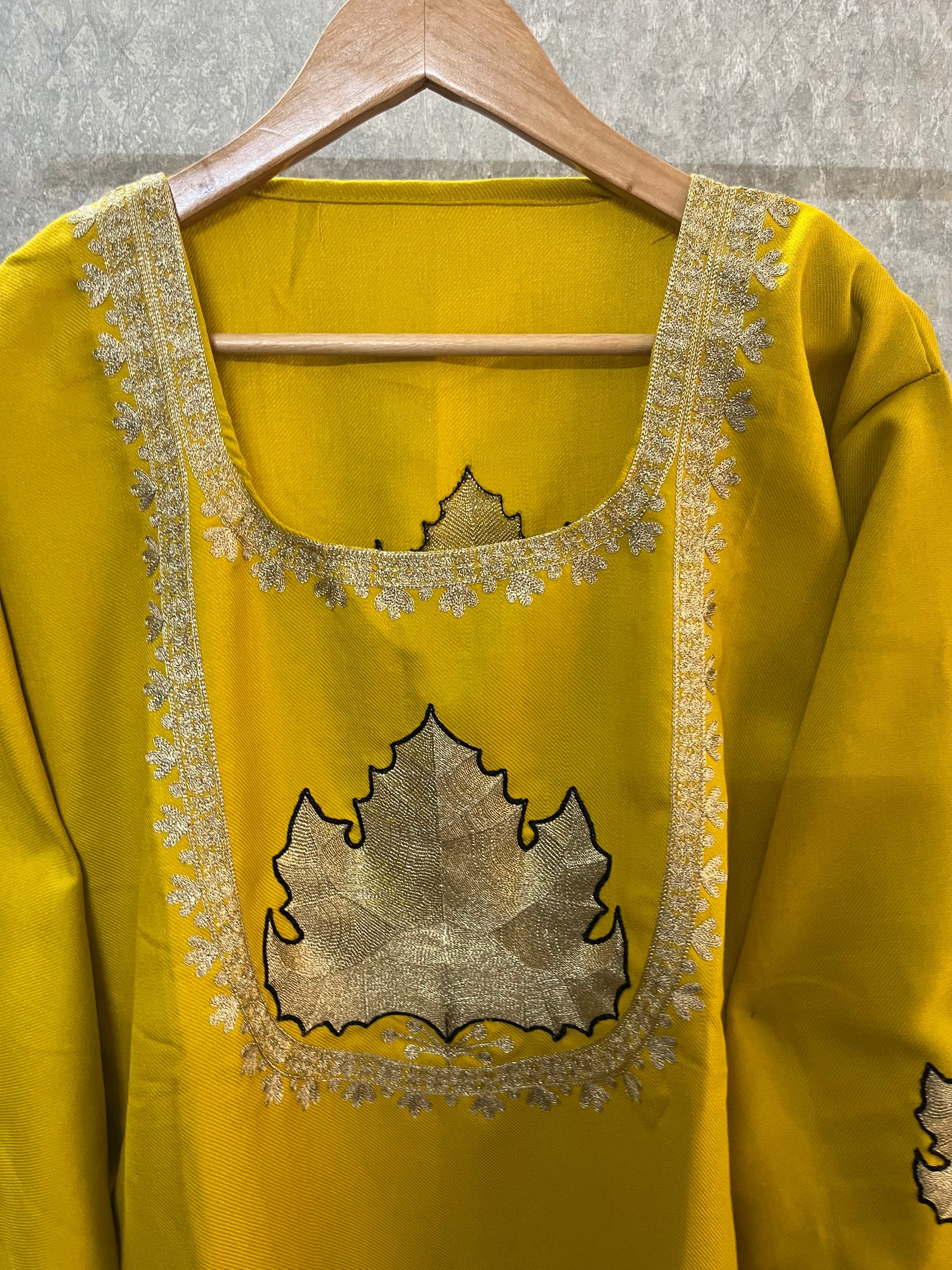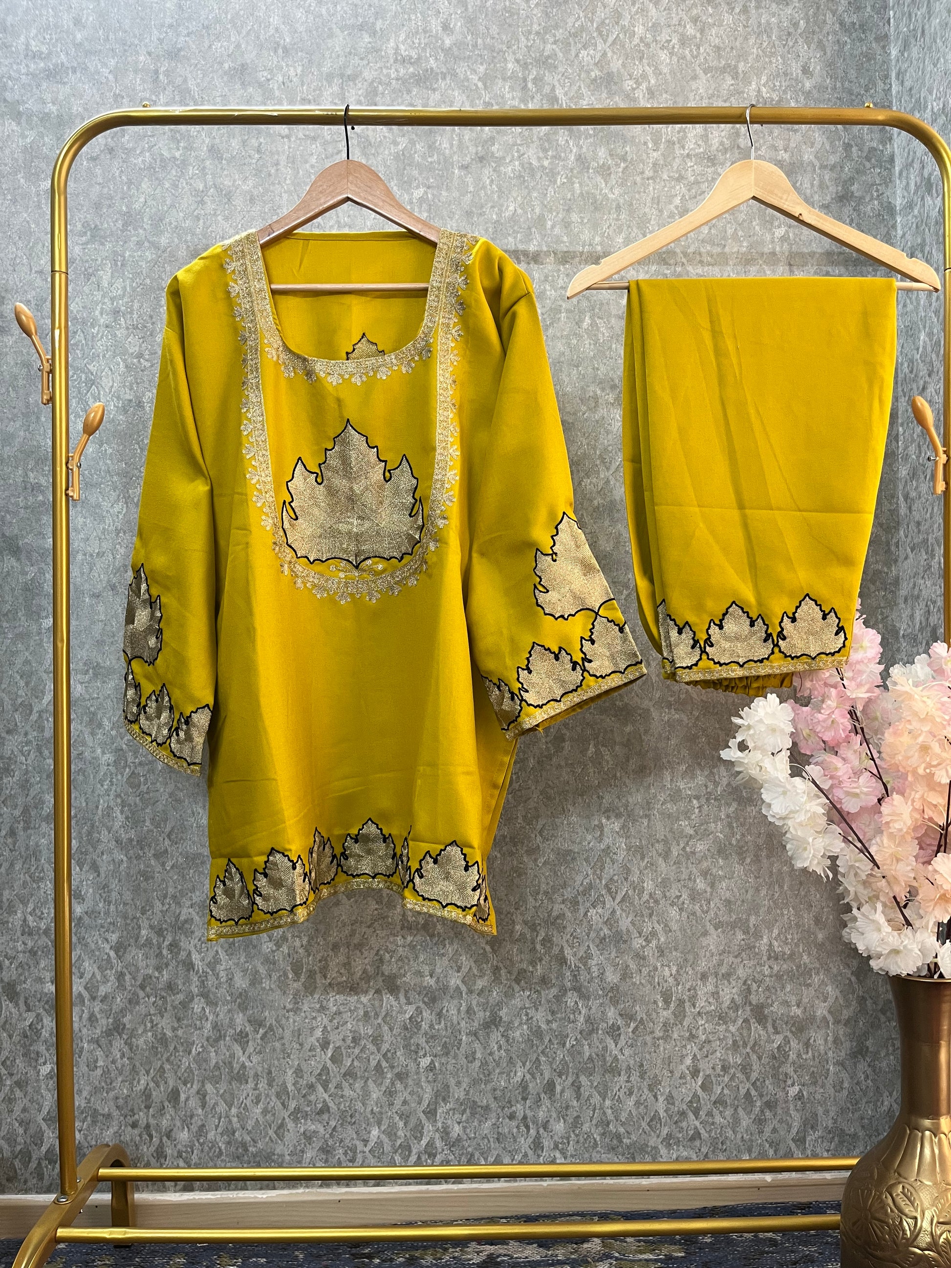 Yellow Woollen Kashmiri Co-Ord Set ( Size 44)