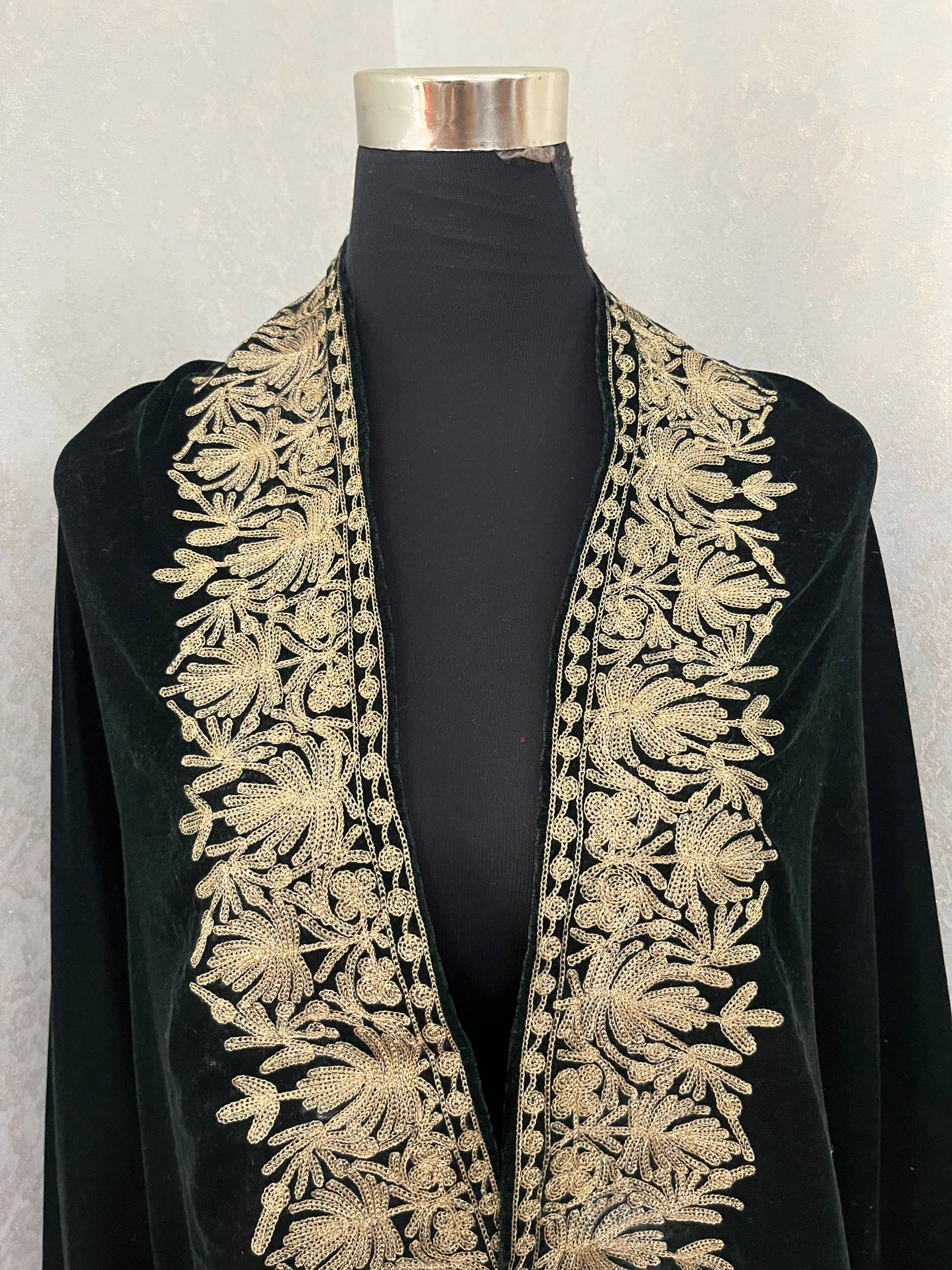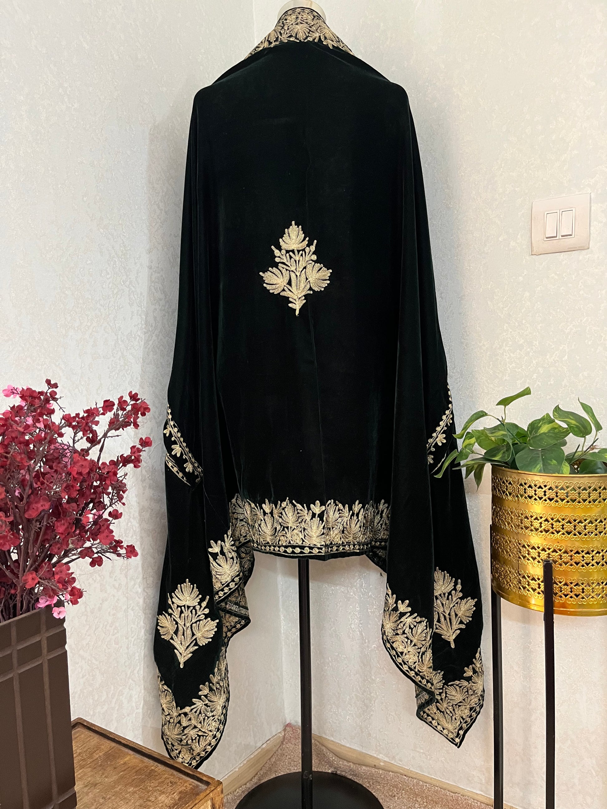 Bottle Green Tilla Embroidered Velvet Cape