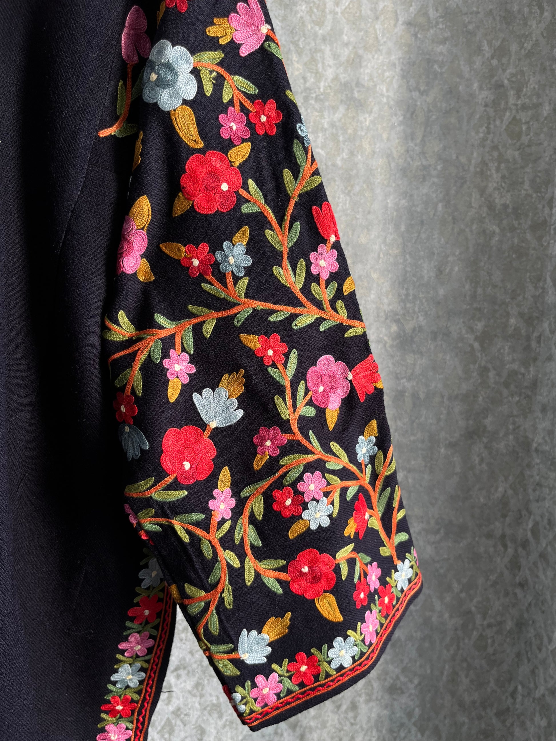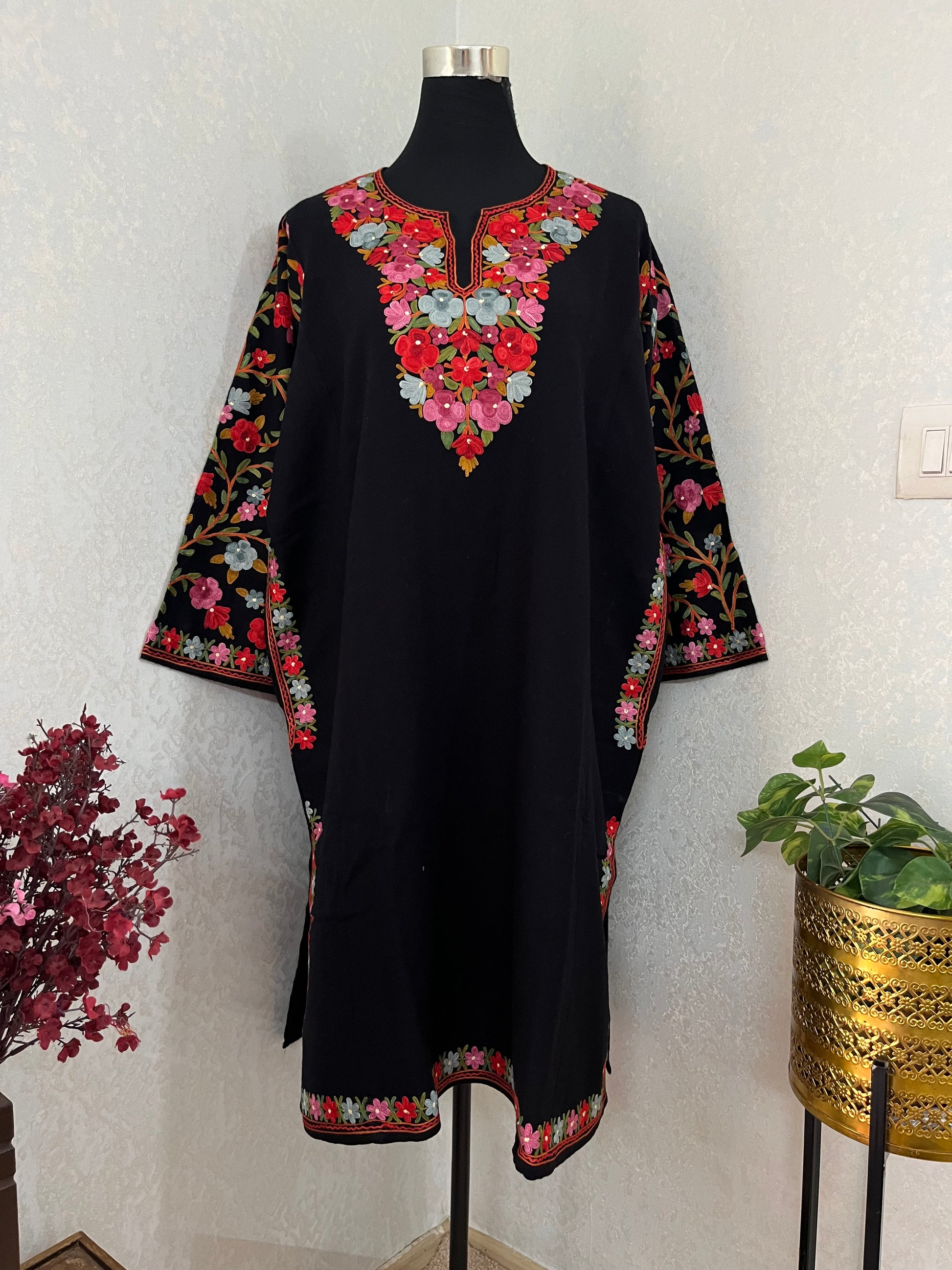 Wool Pheran with Aari embroidery all over front and on sleeves.