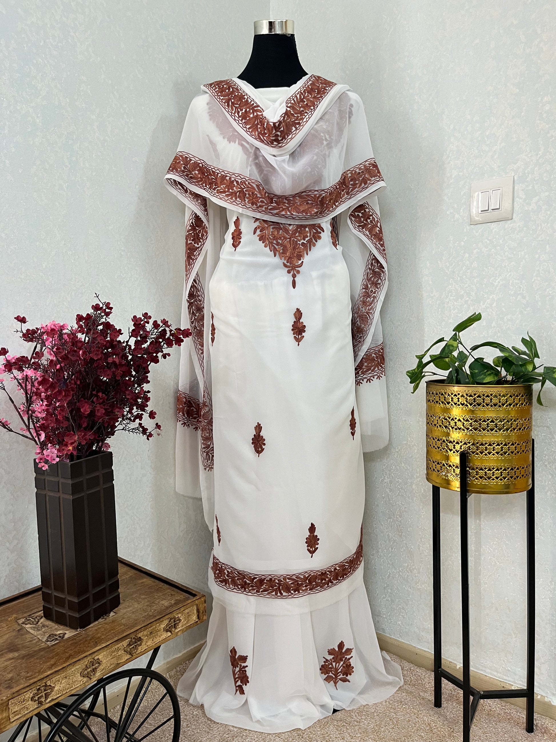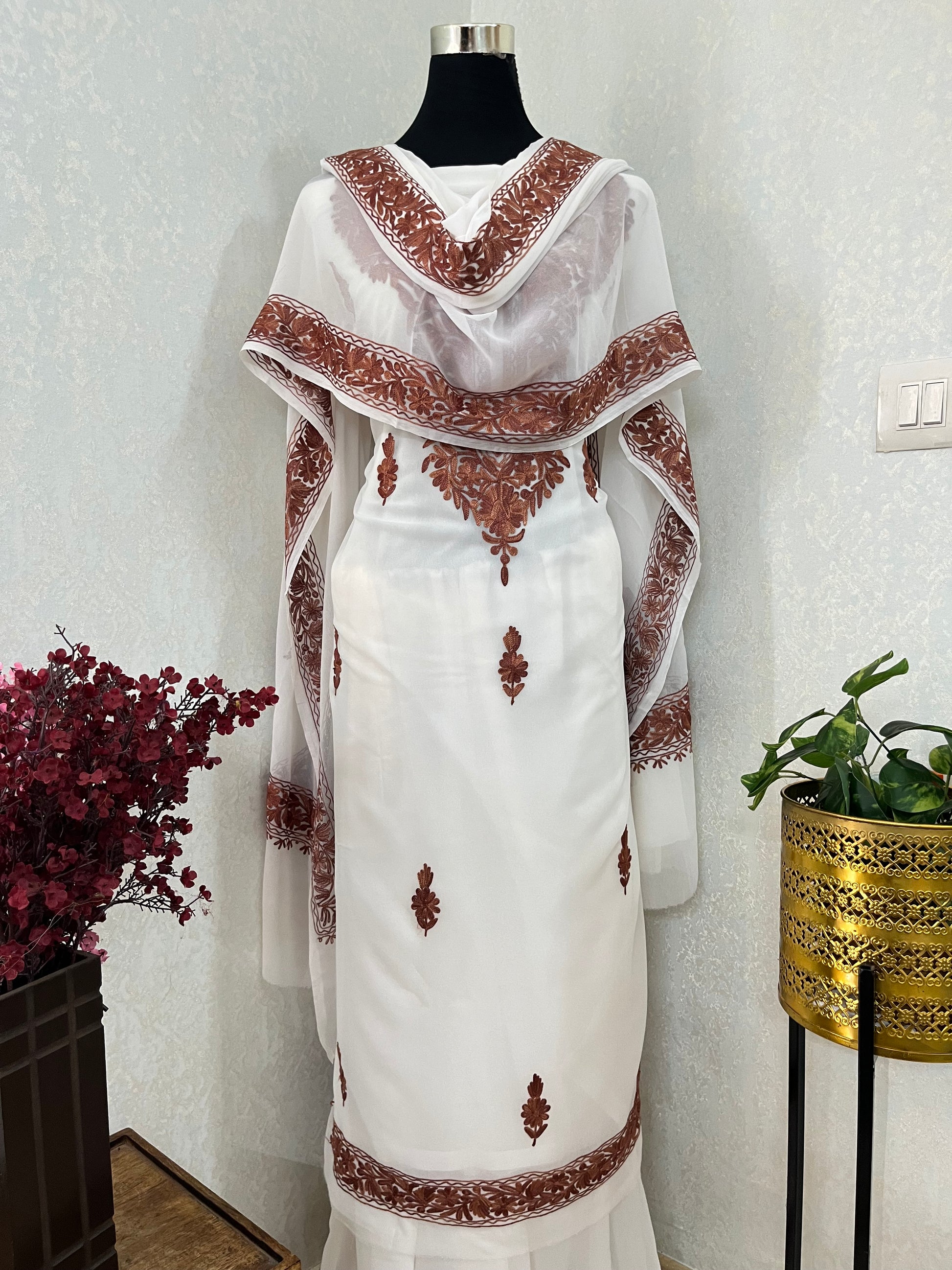Off white Georgette 3pc Kashmiri Suit