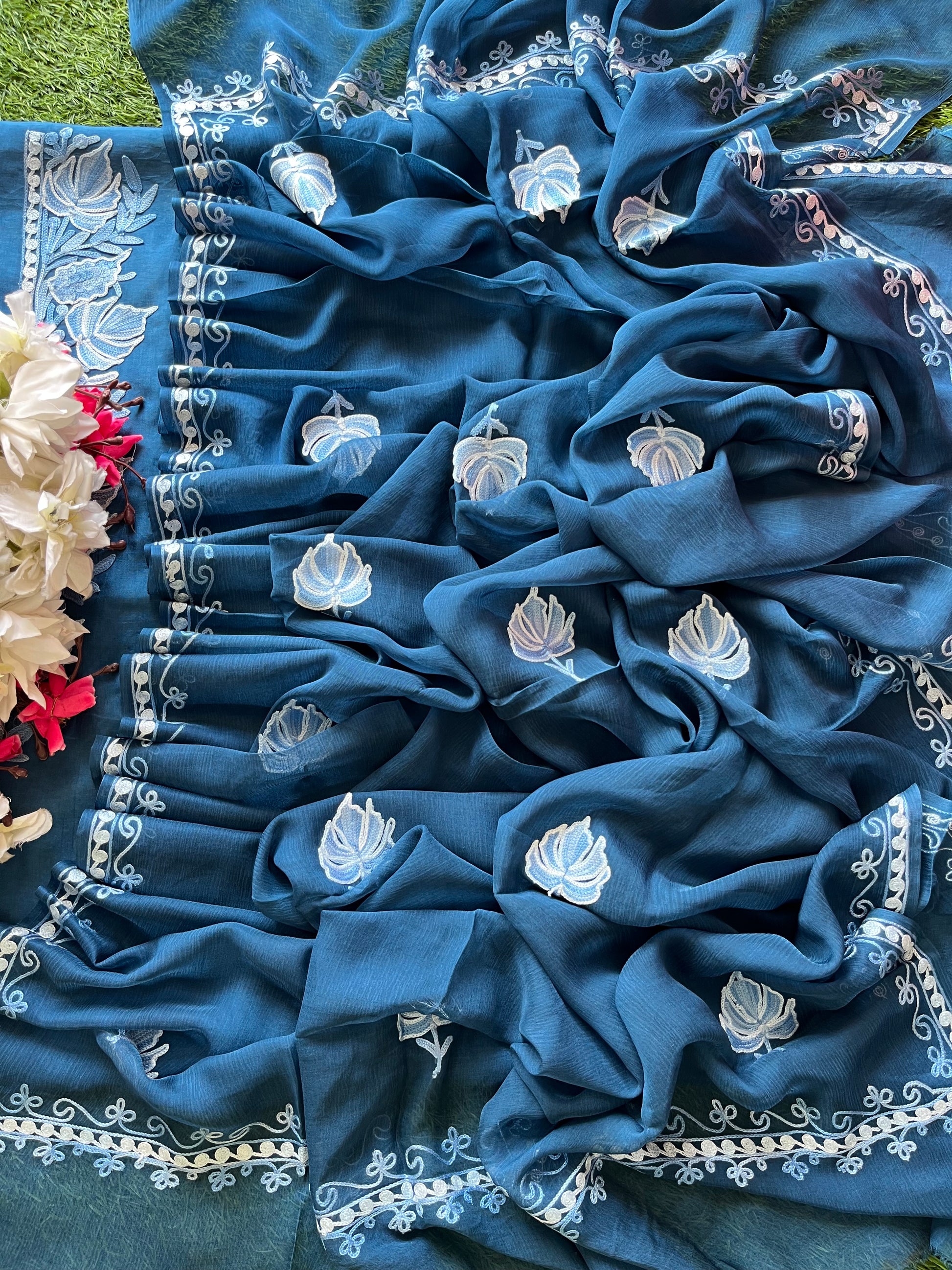 Blue Opada Silk Kashmiri Suit