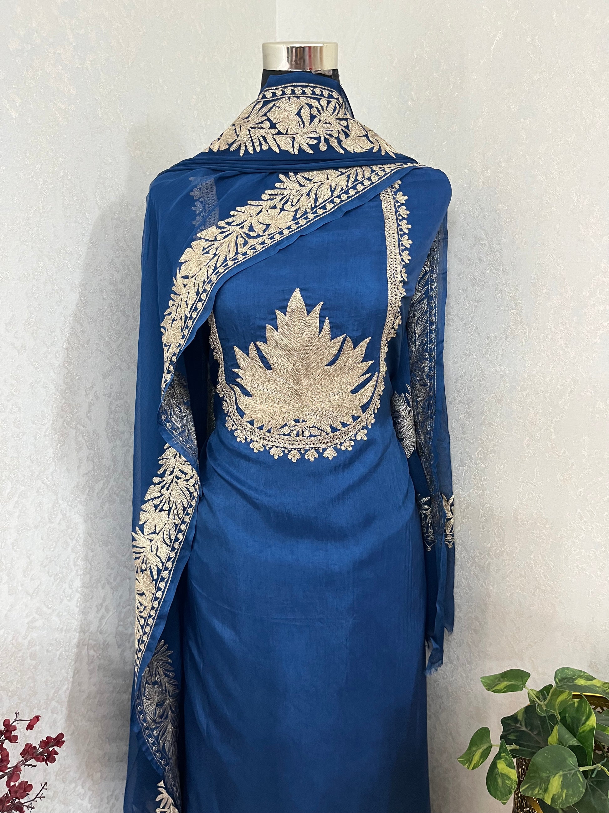 Electric Blue Sanam’ Tilla Kashmiri Silk Suit