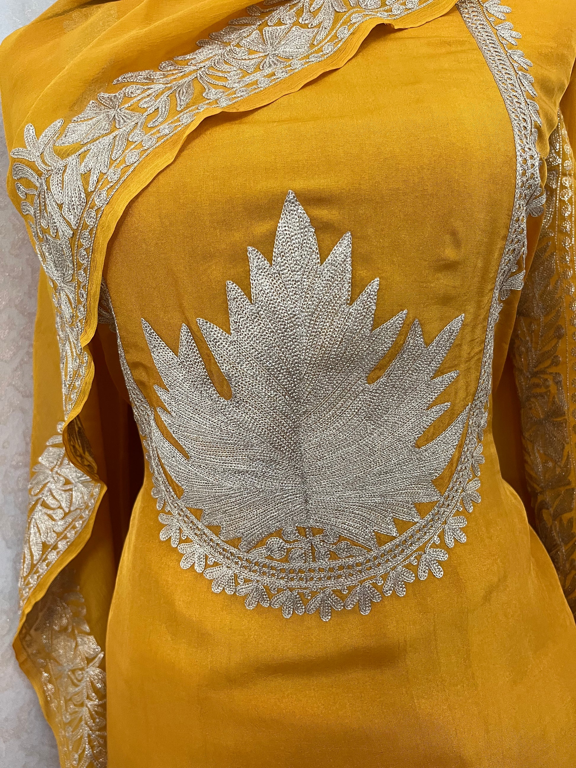 Golden Yellow Sanam’ Tilla Kashmiri Silk Suit