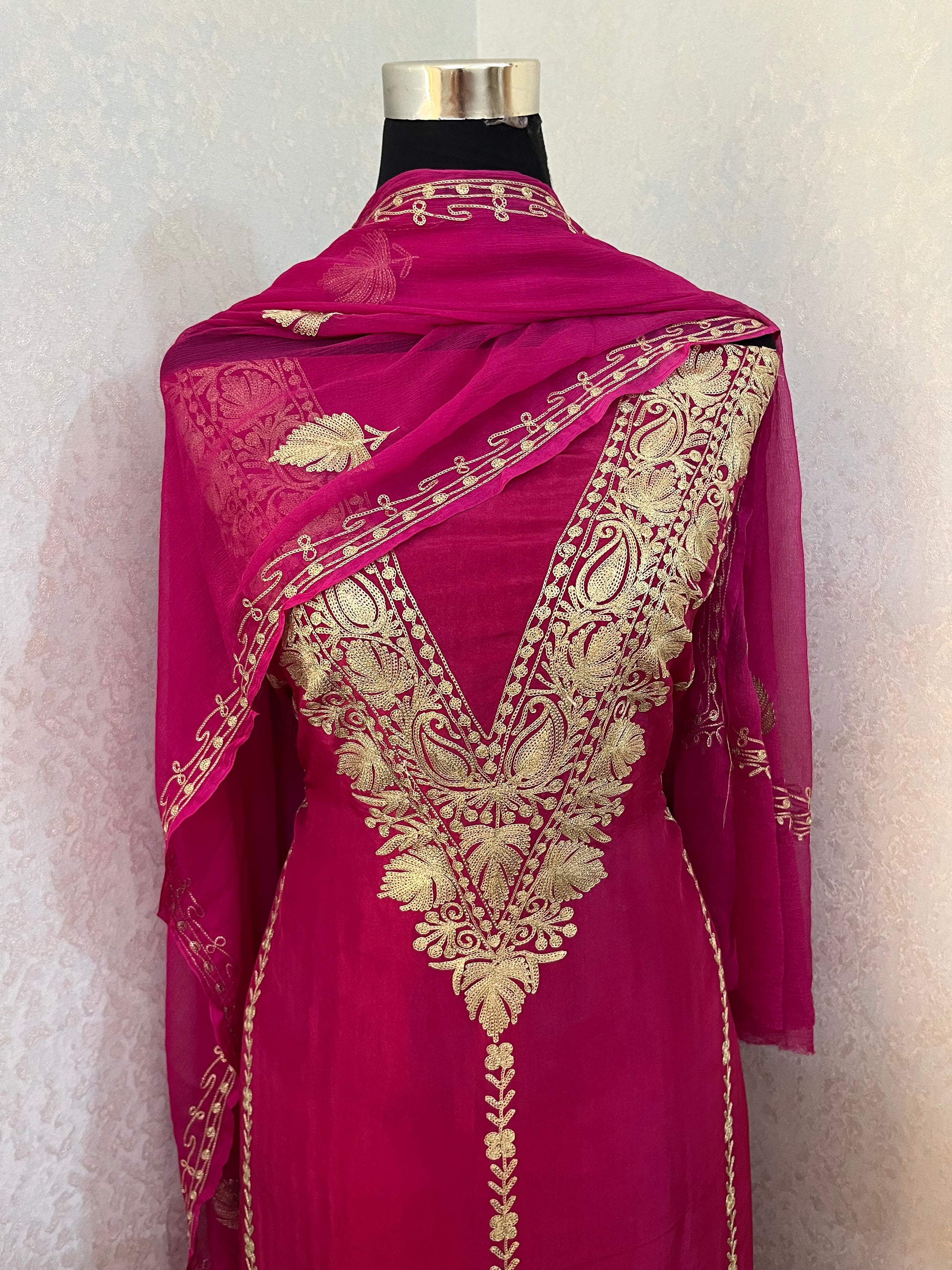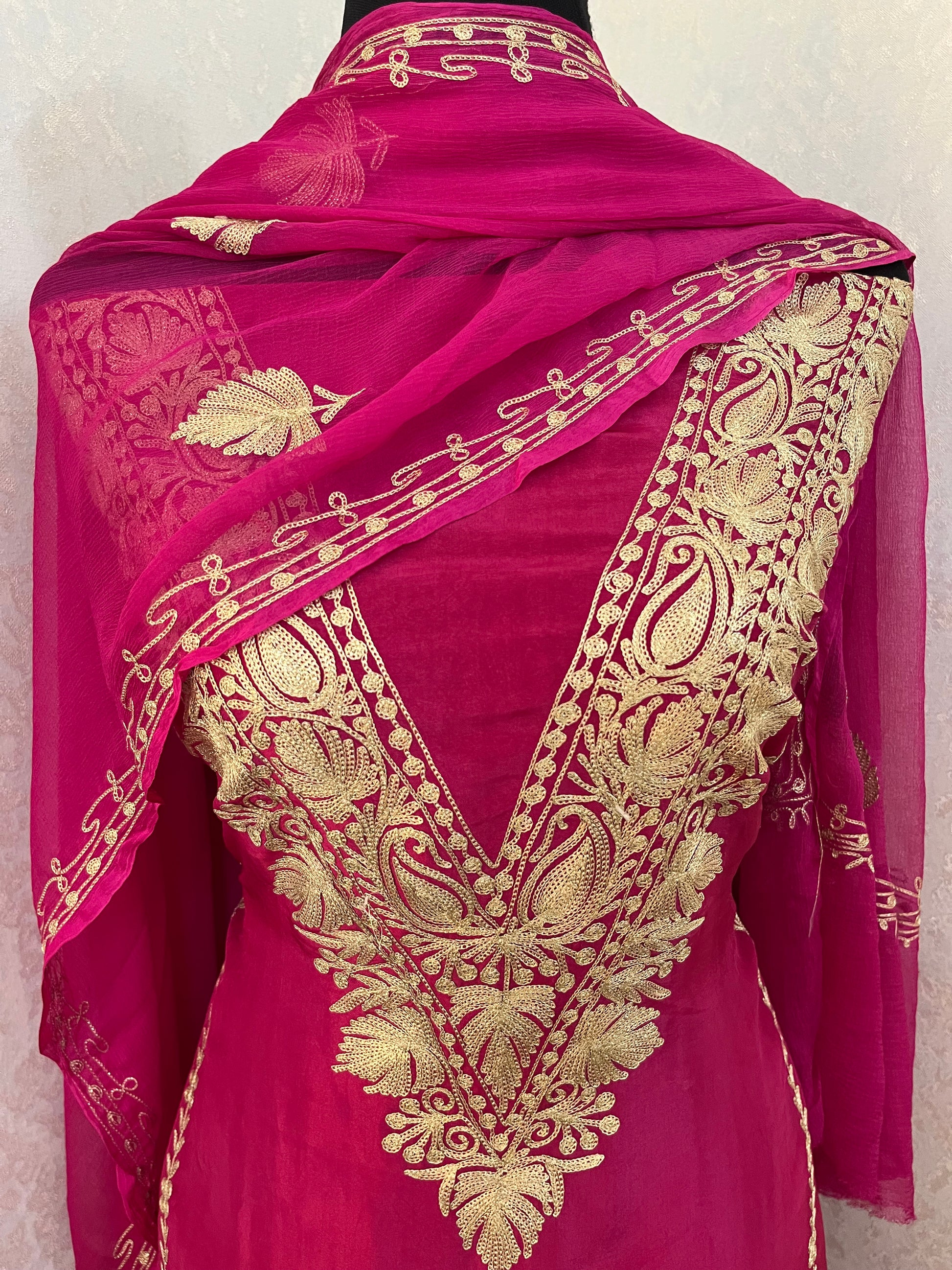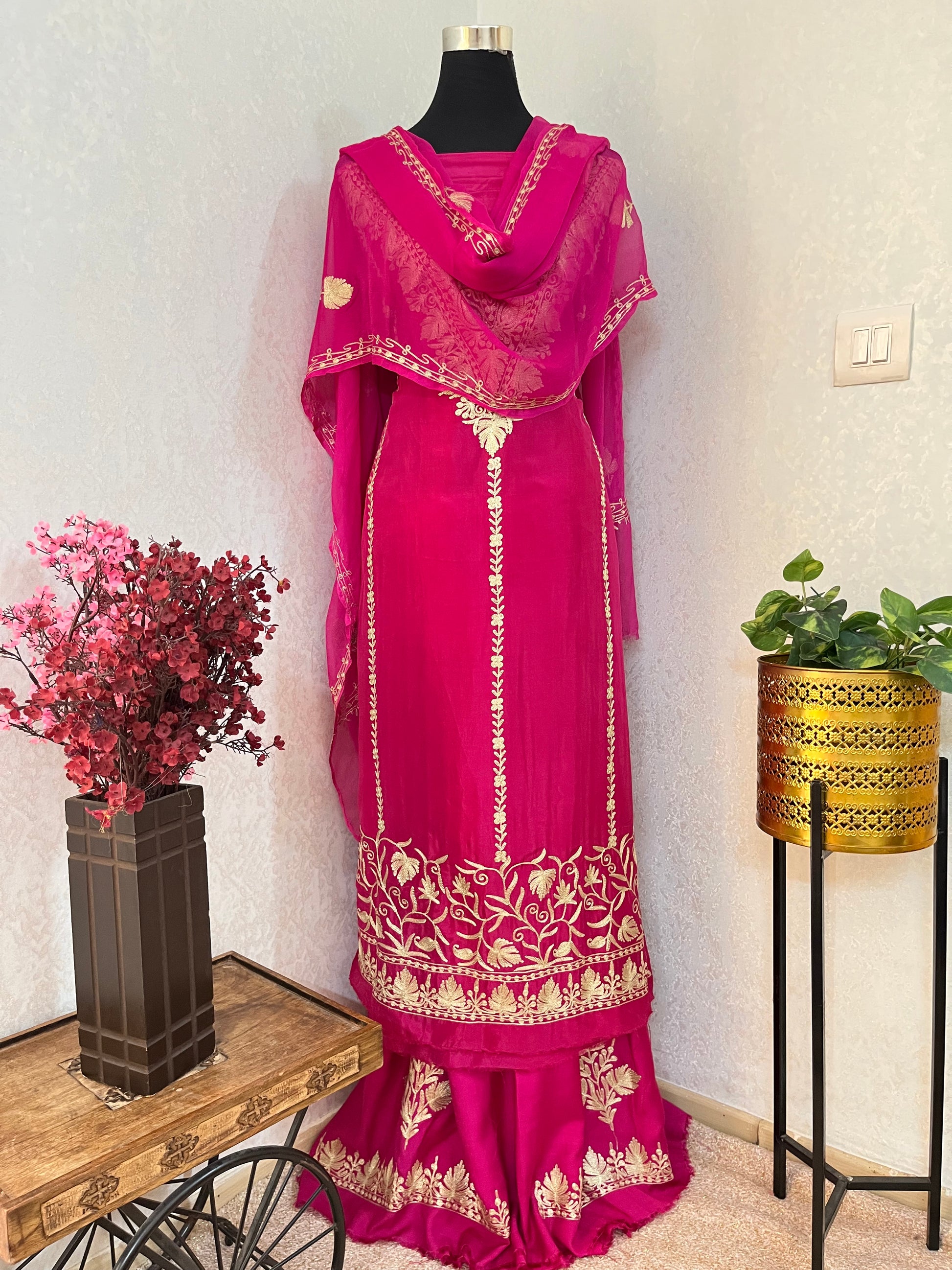 Hot Pink Sanam’ Tilla Kashmiri Silk Suit