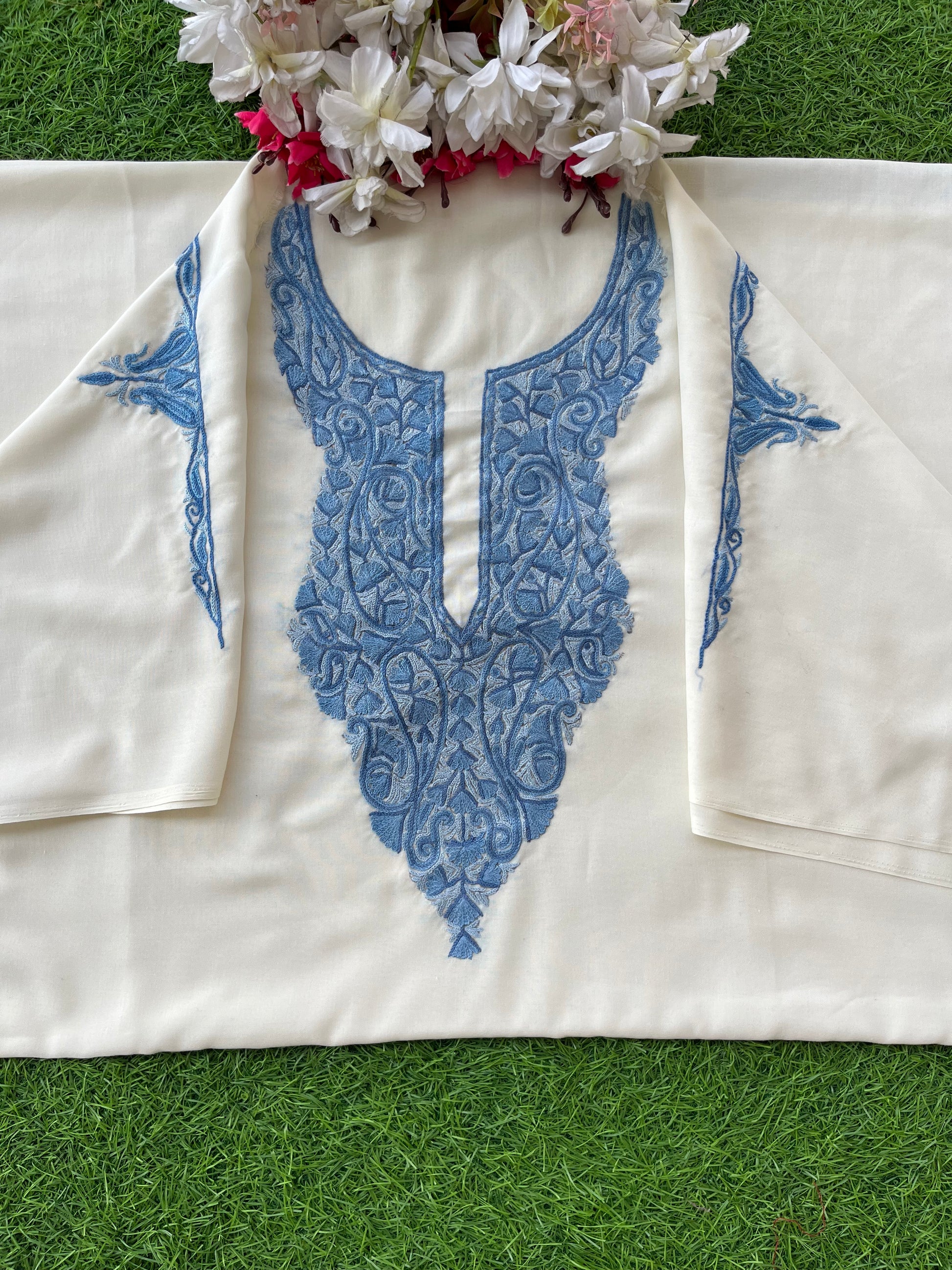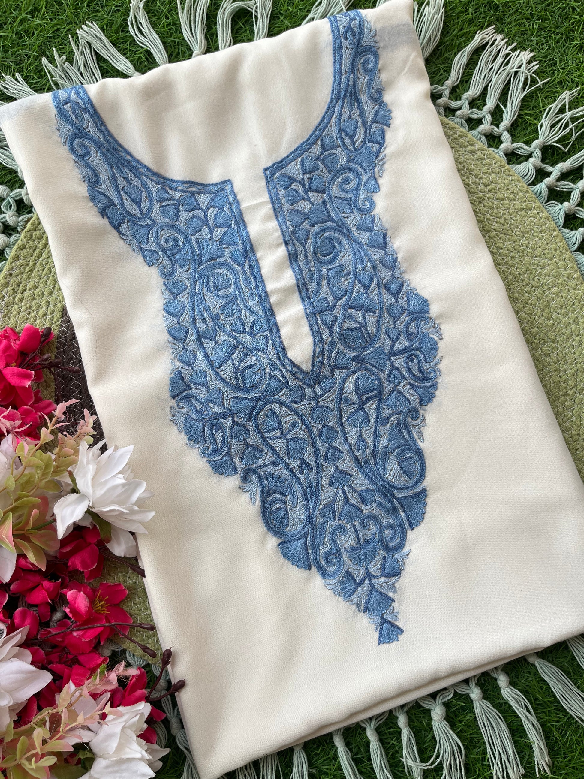 Make your summers more cooler by adding summer aari embroidered unstitched cotton suit into your Daily wears!! It’s a two piece set including shirt and bottom (Total 5 mtr fabric).