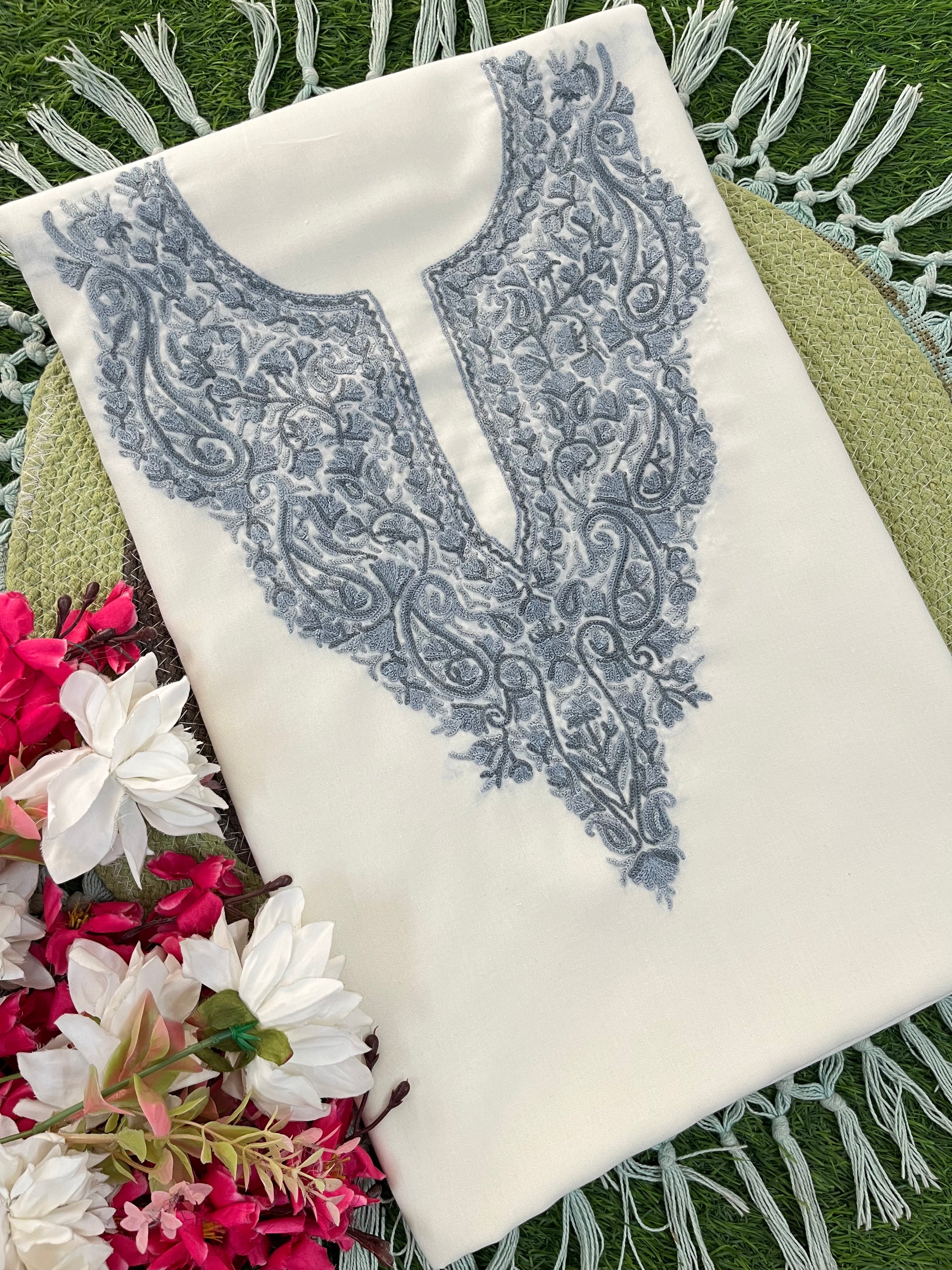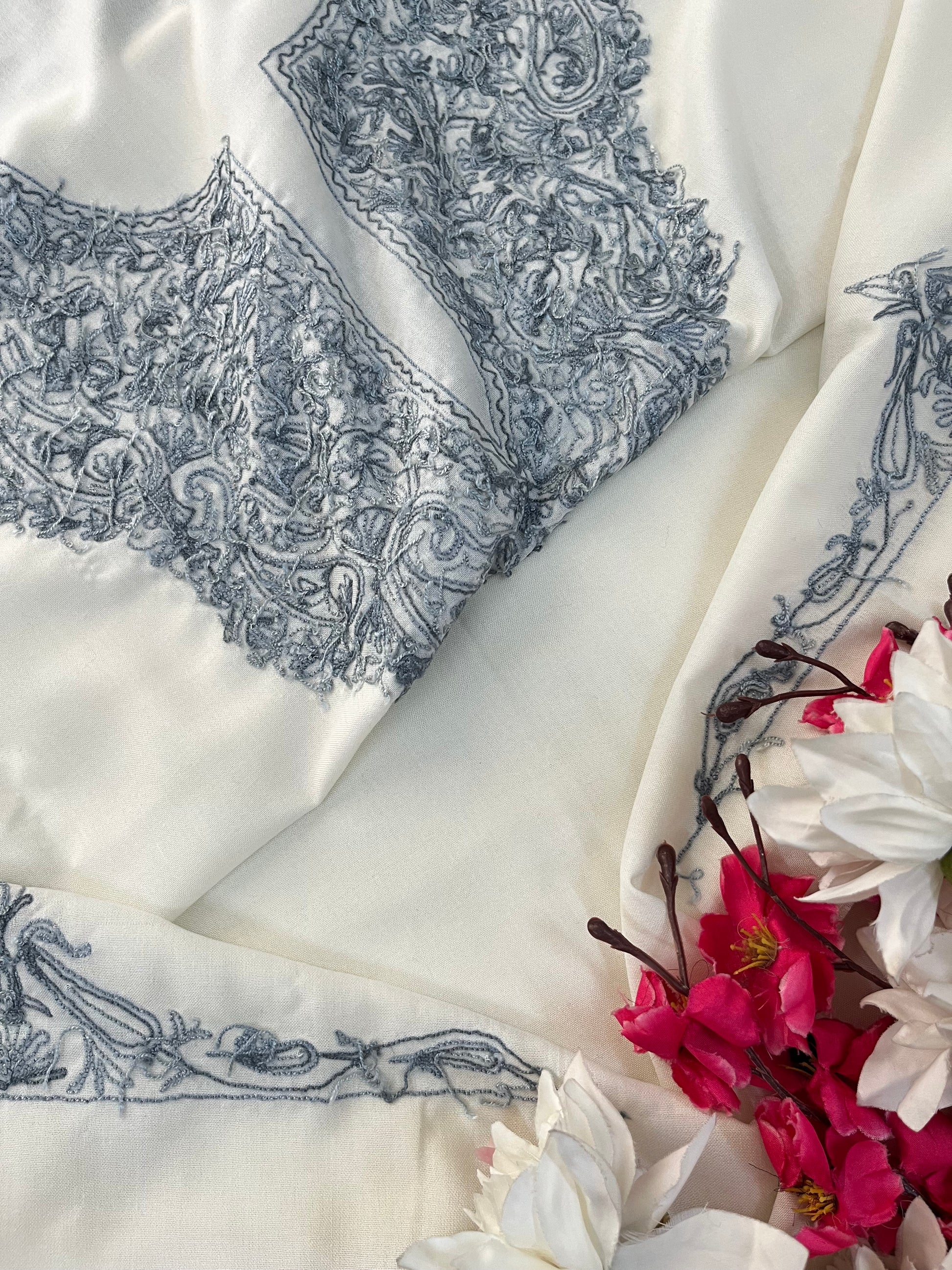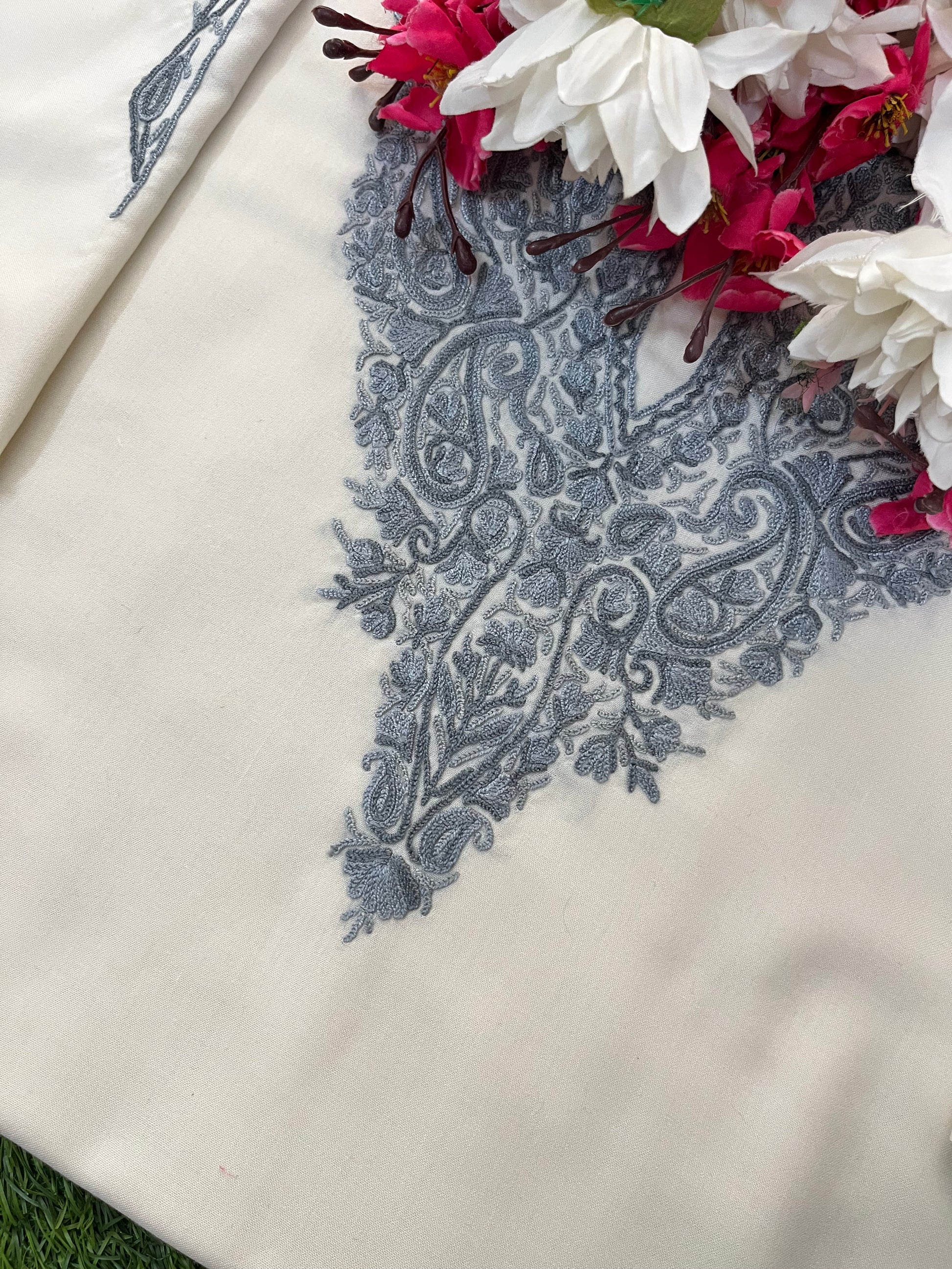 Off White Cotton Two Piece Suit (Hand Embroidered)