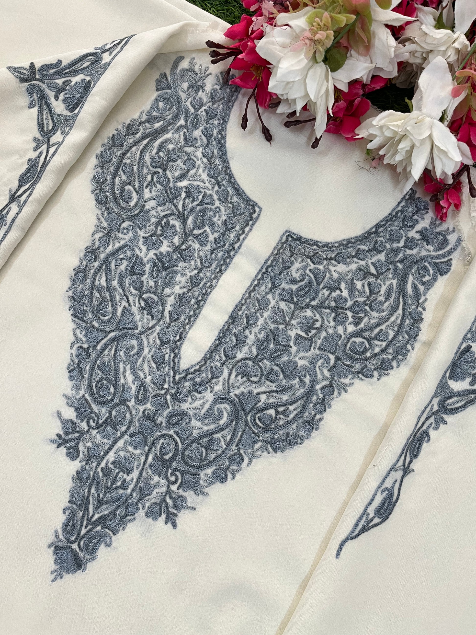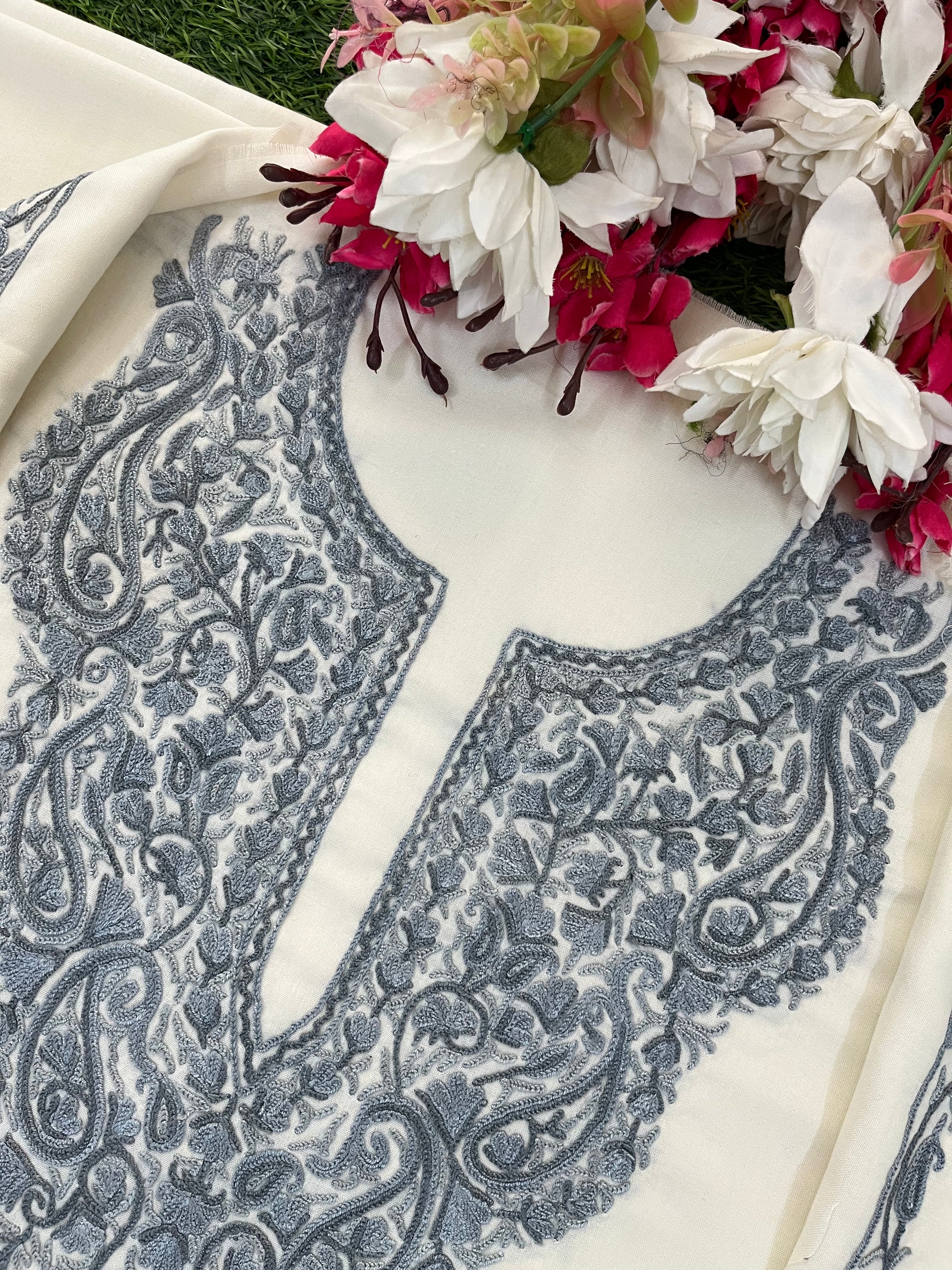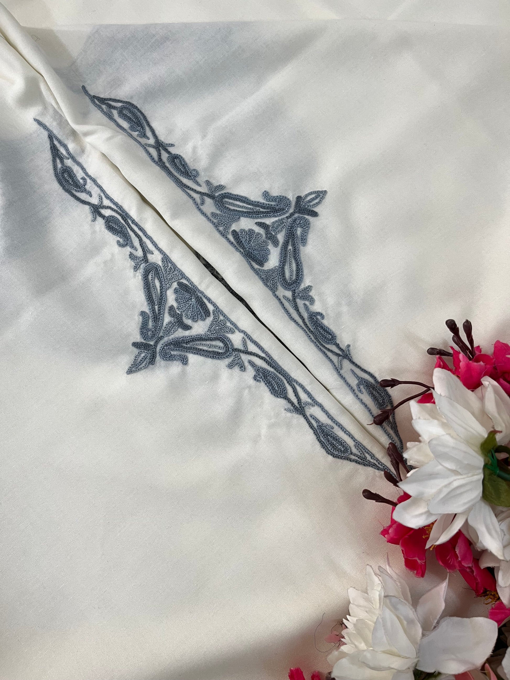 Off White Cotton Two Piece Suit (Hand Embroidered)