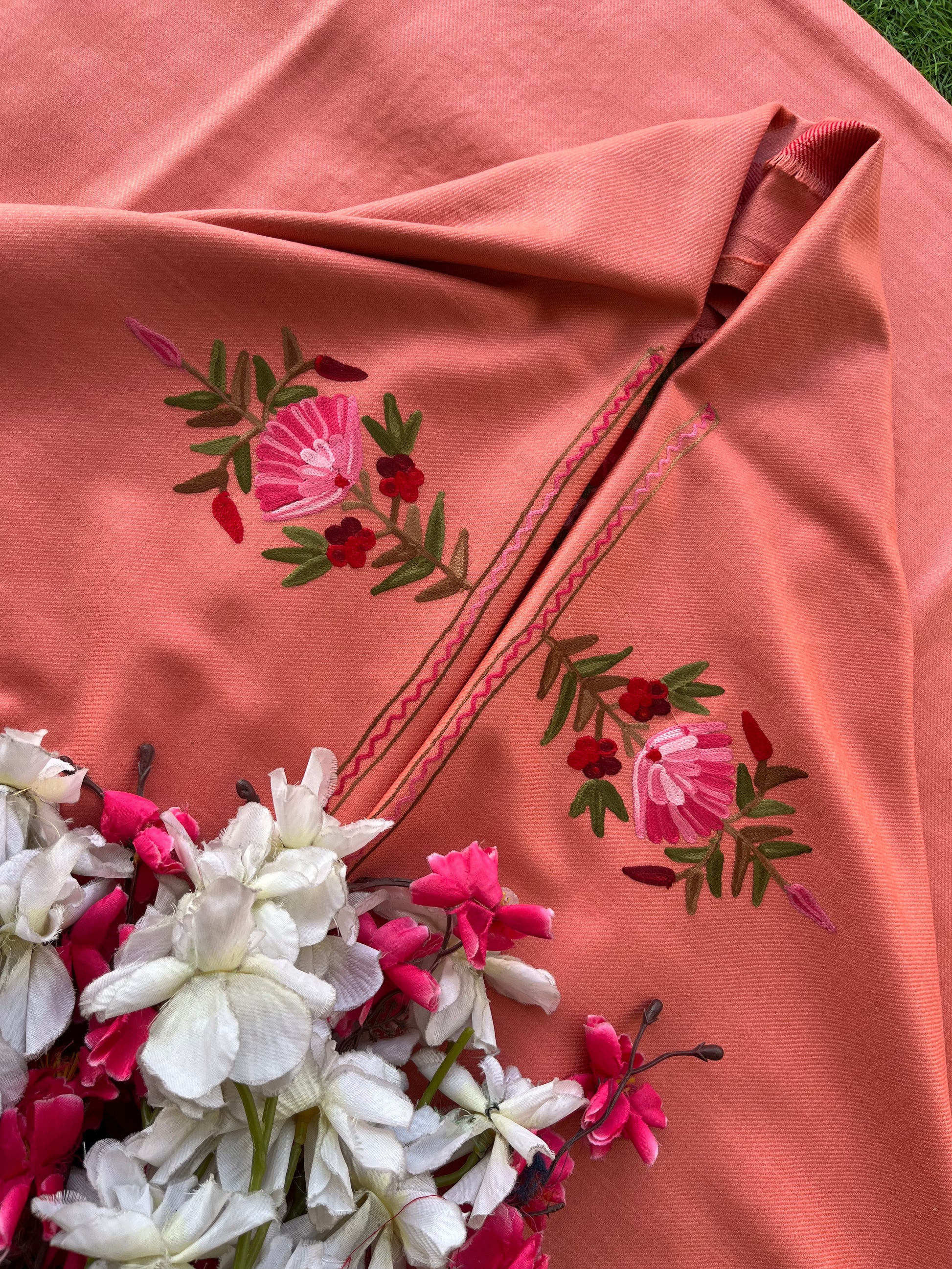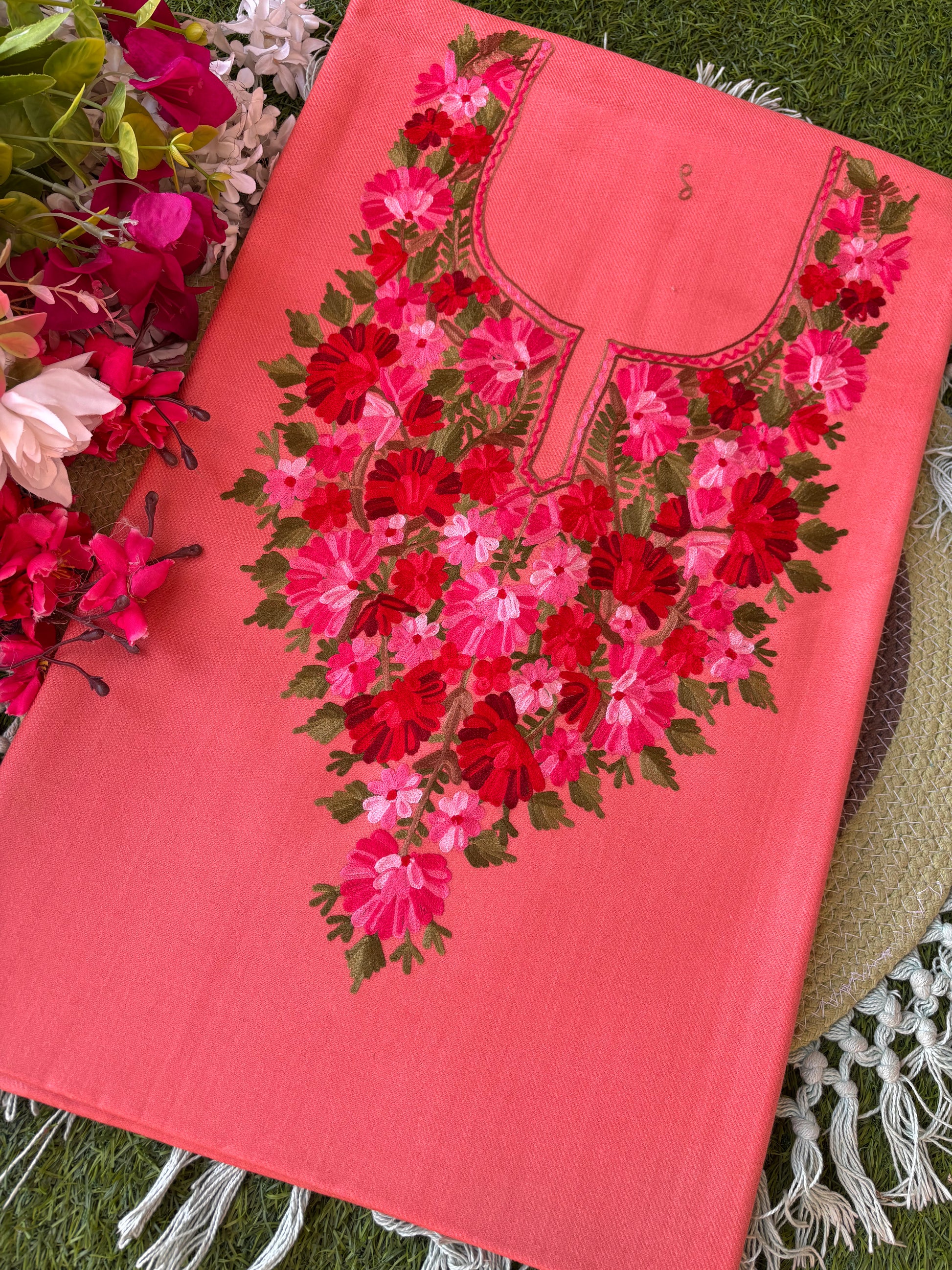 Soft Pink Woollen Aari Embroidered 2pc suit 5mtr