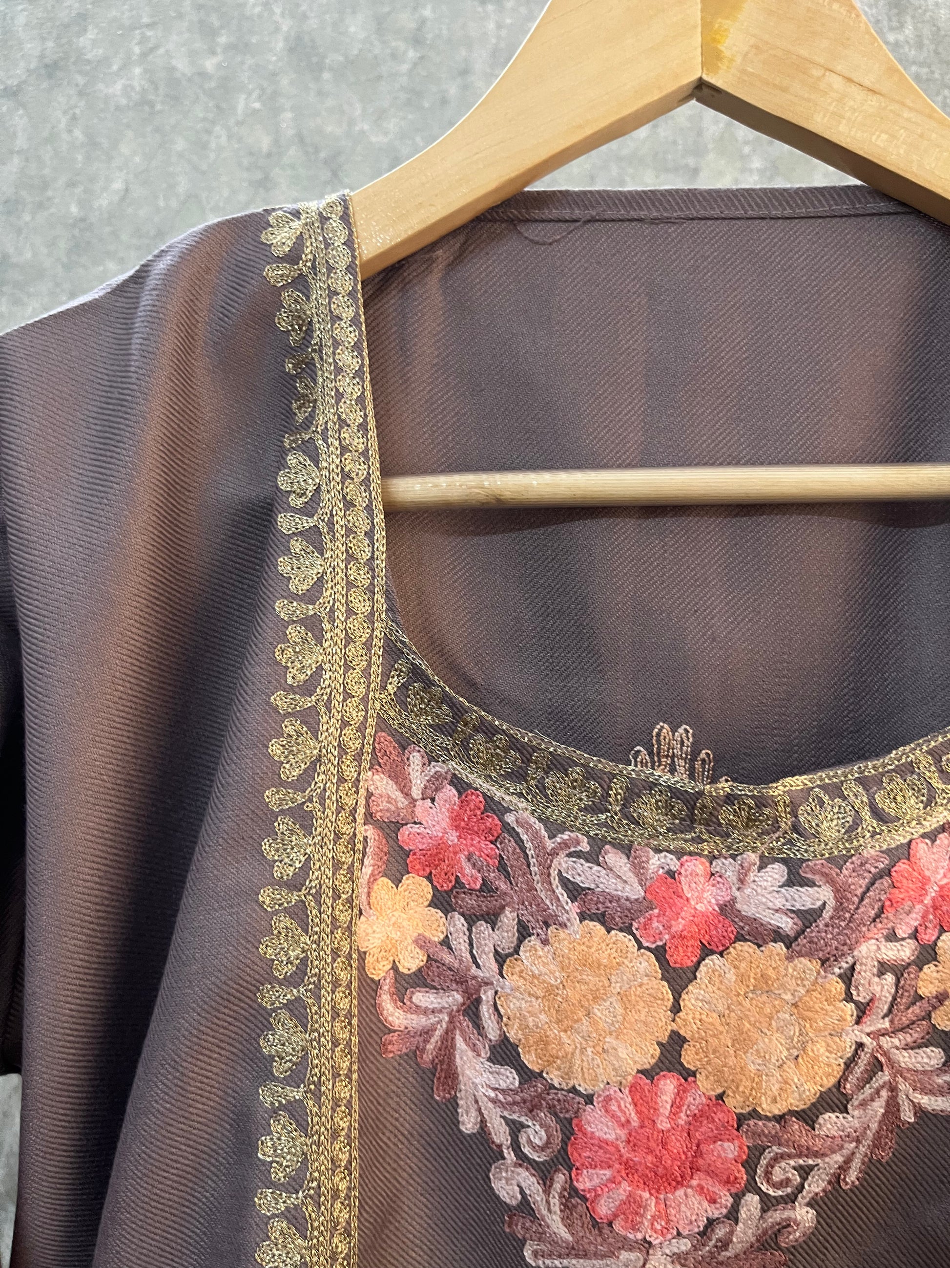 Light Coffee Woollen Kashmiri Co-Ord Set ( Size 40)