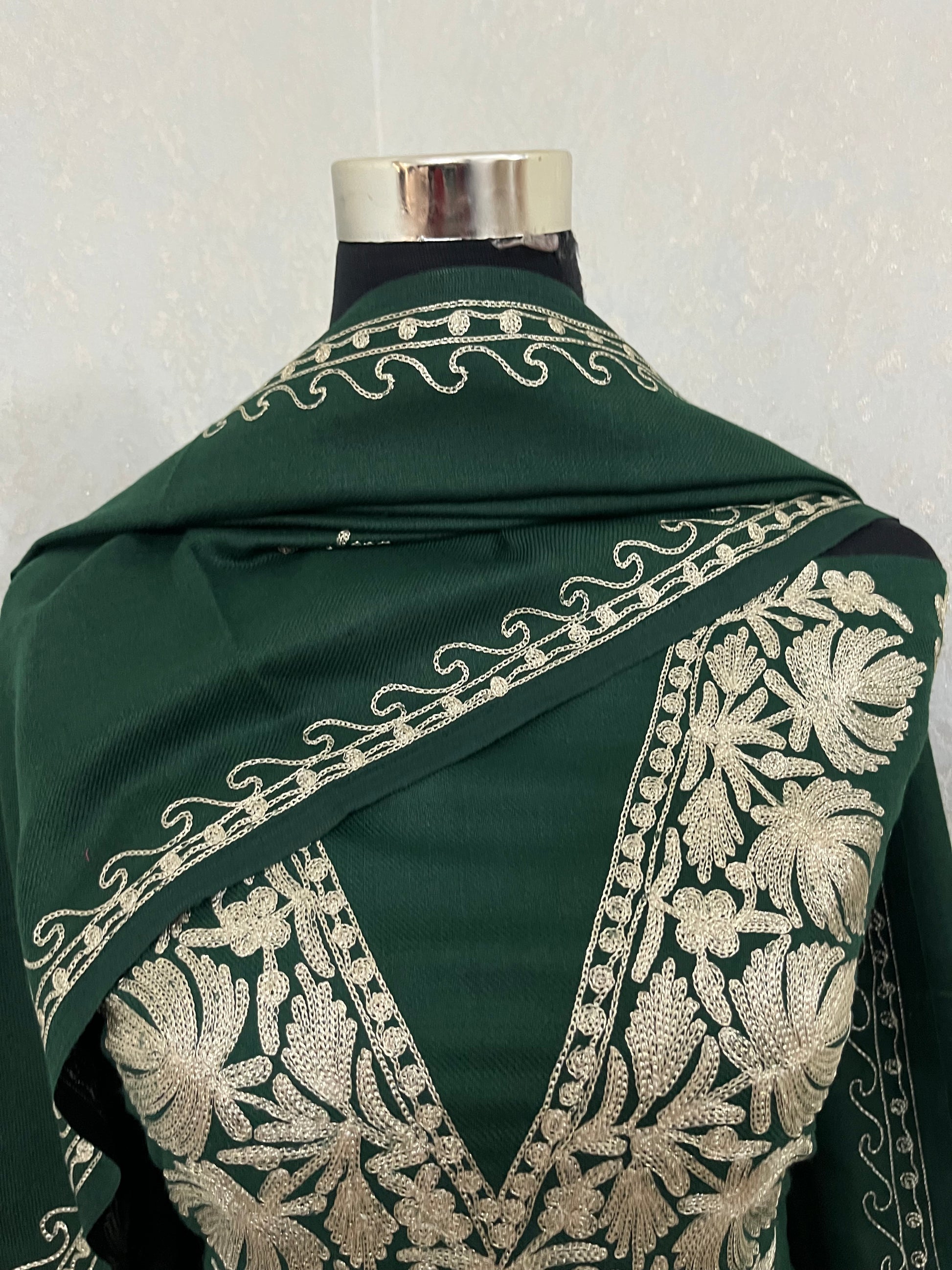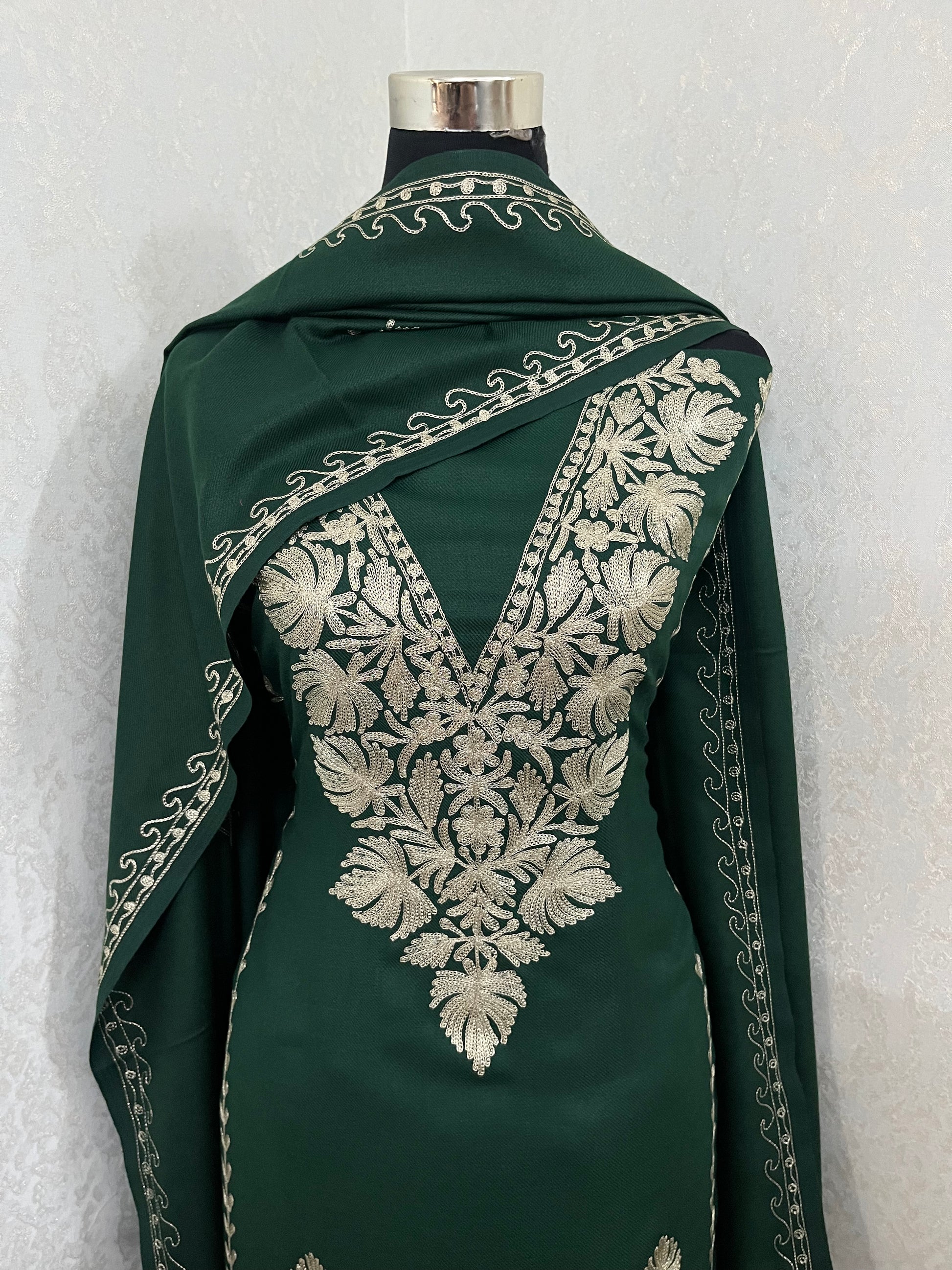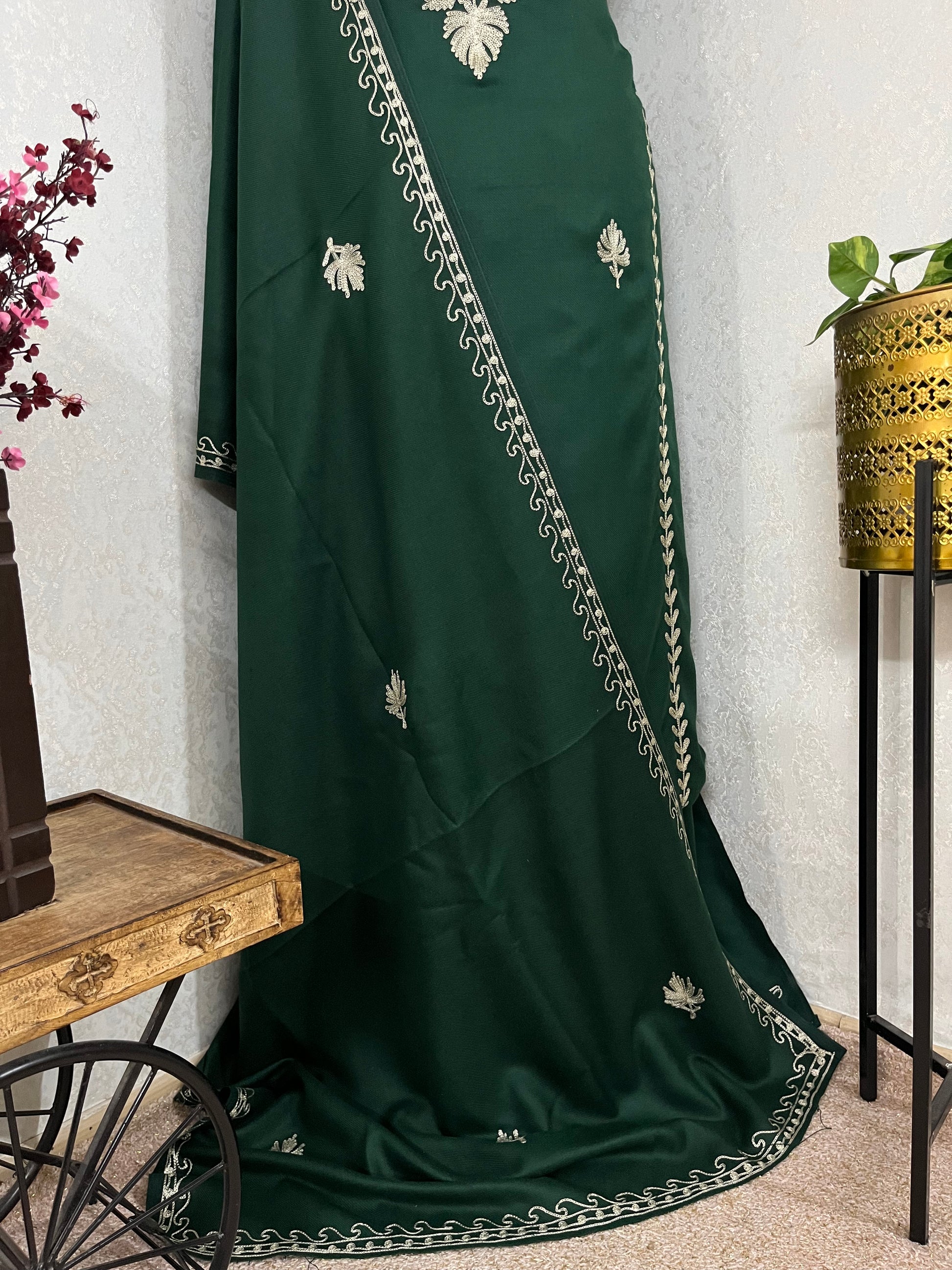 Bottle Green Tilla Embroidered 3pc Suit Stole