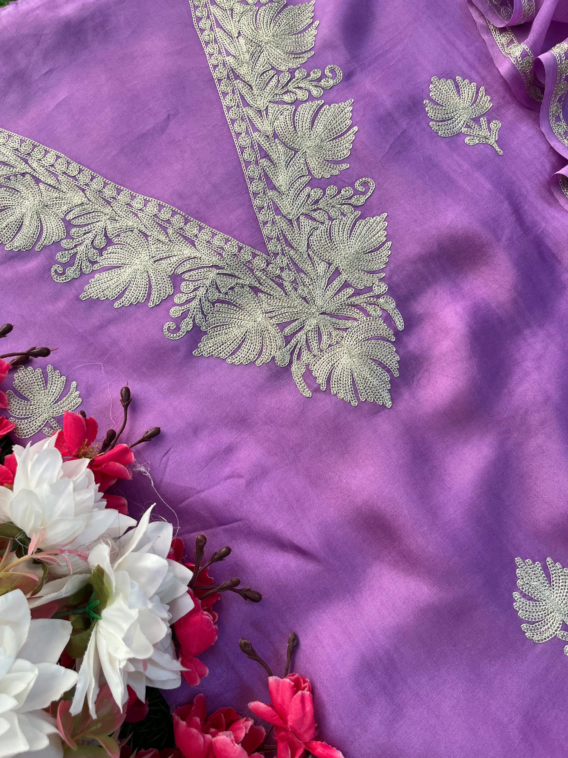 Experience the exquisite artistry of Kashmiri tilla embroidery .Each stitch tells a tale of craftsmanship, tradition, and intricate beauty. Elevate your wardrobe with this timeless treasure.